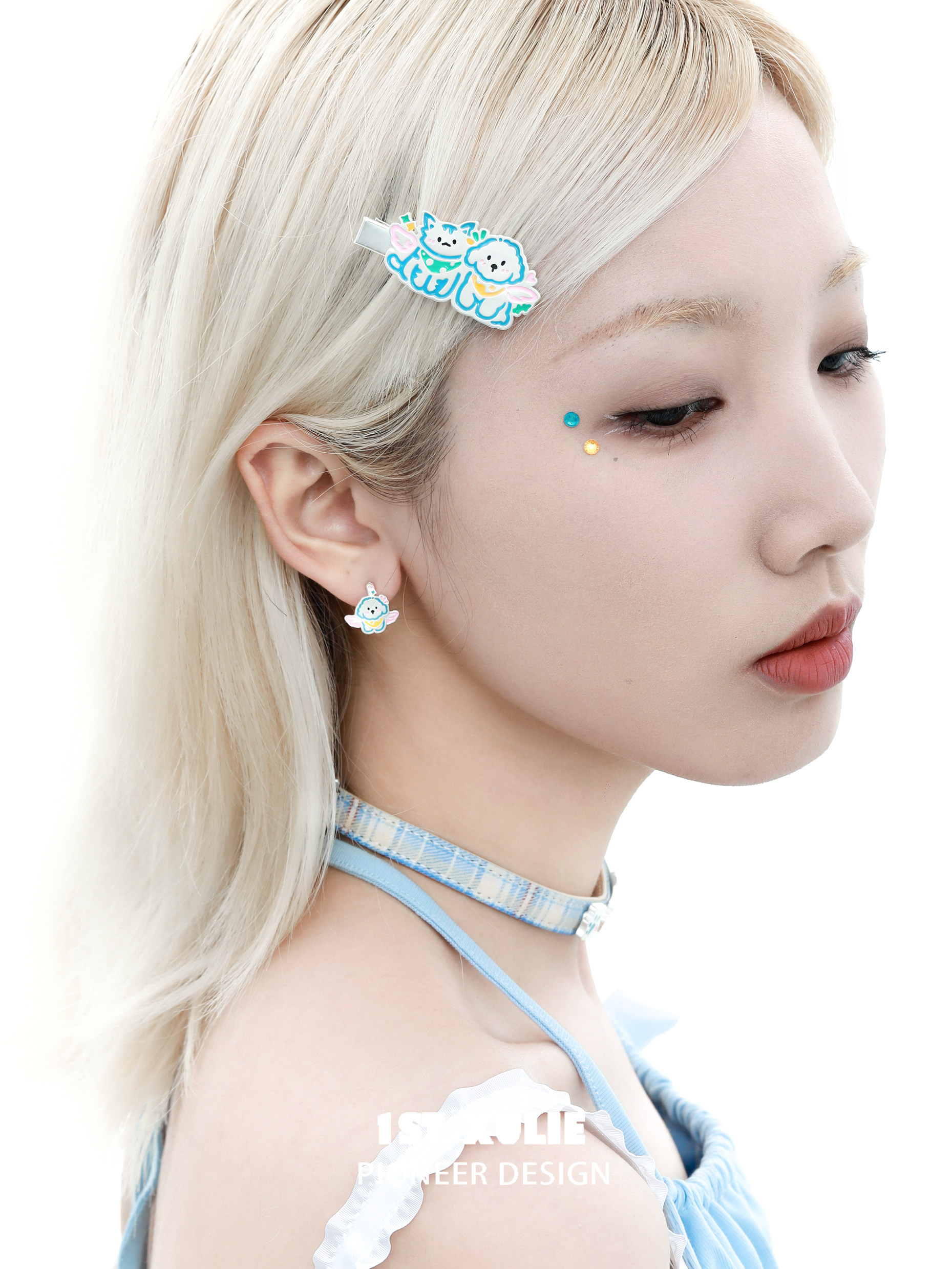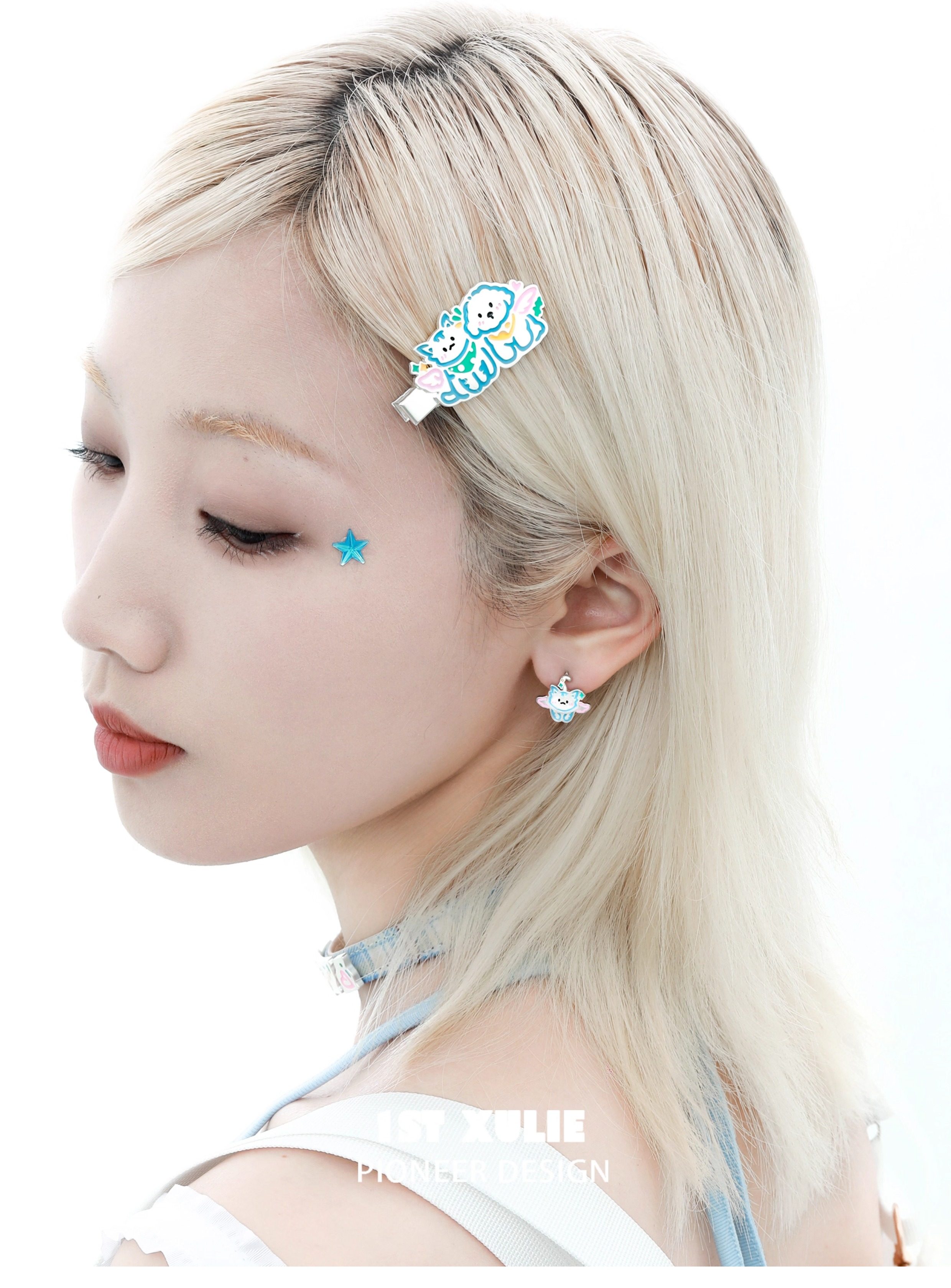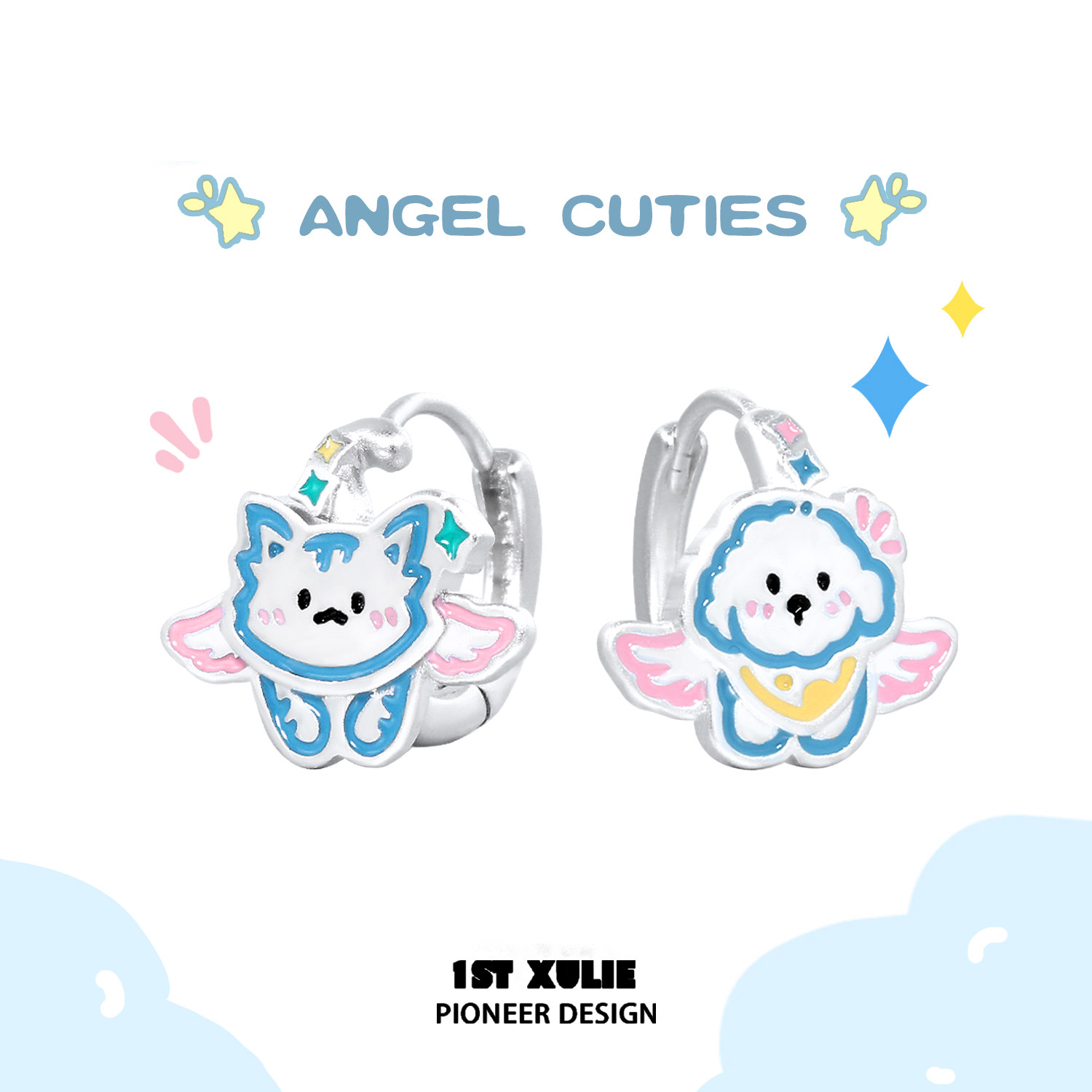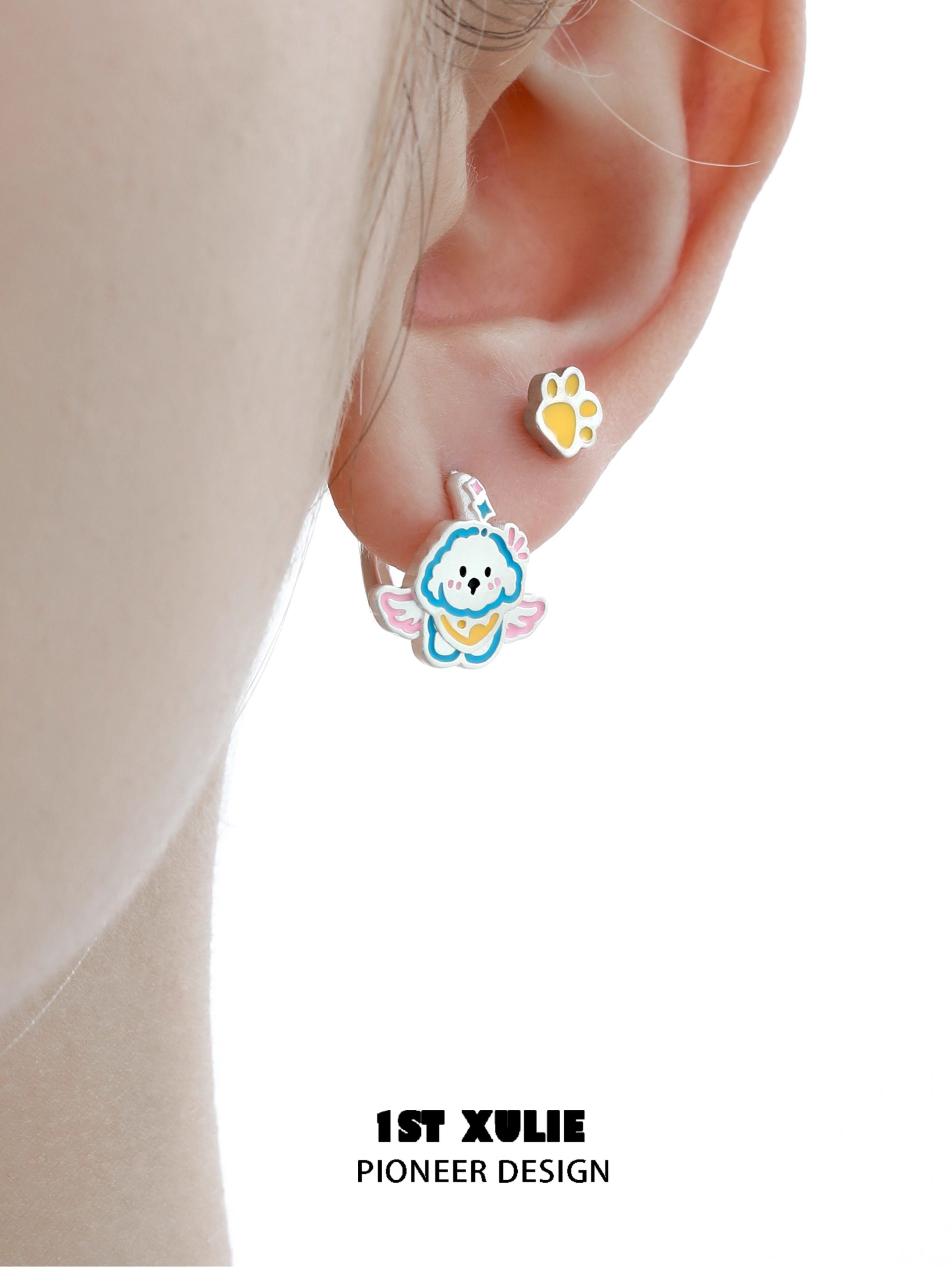 1Stxulie Angel Cat Puppy Ear Clips Original Niche Design Cute Earrings Sweet Cool High-End Ear Accessories