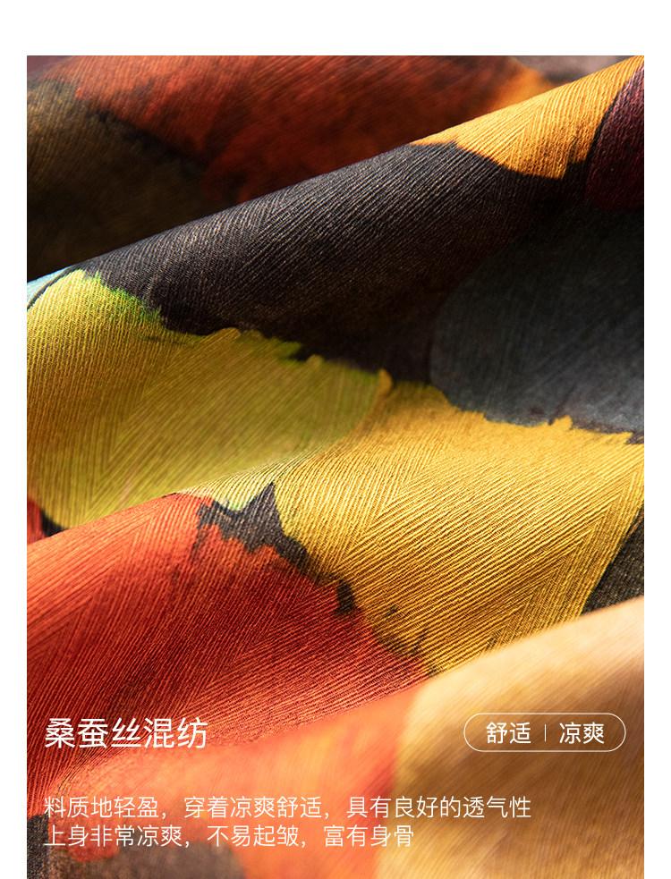 桑蚕丝赋予面料如云朵般亲肤的触感,轻拂肌肤间尽显奢.华