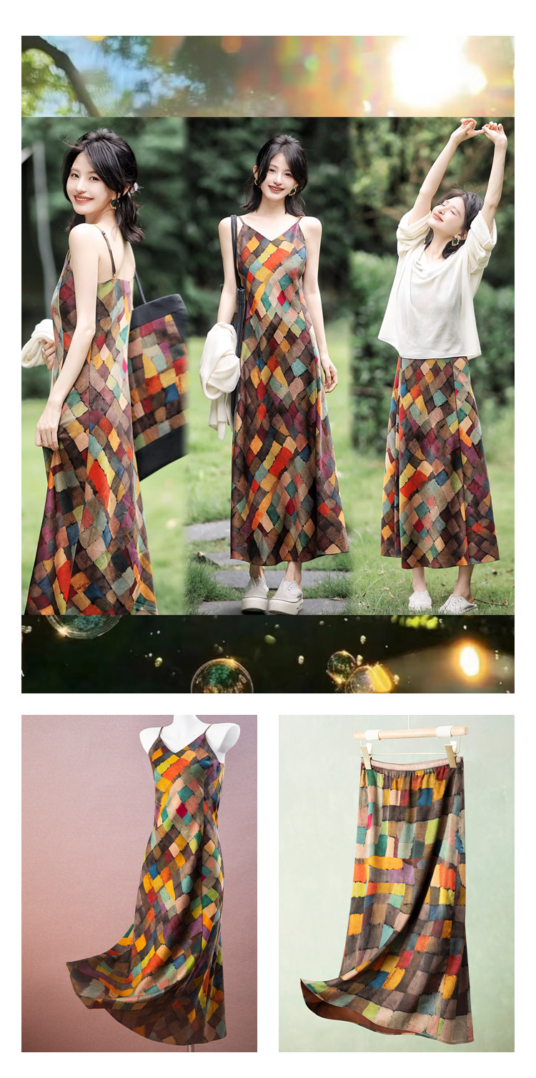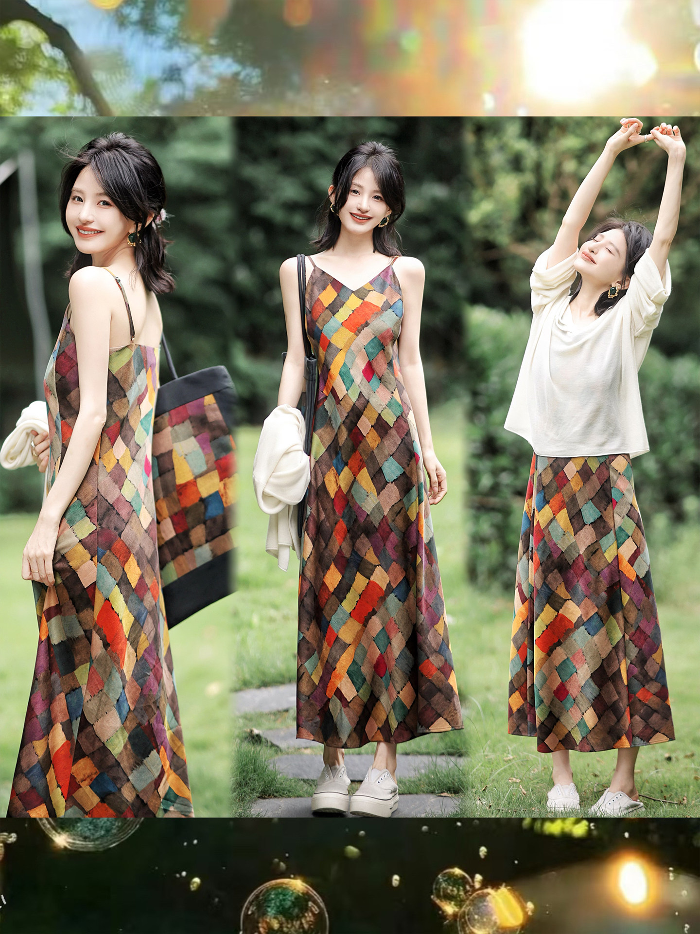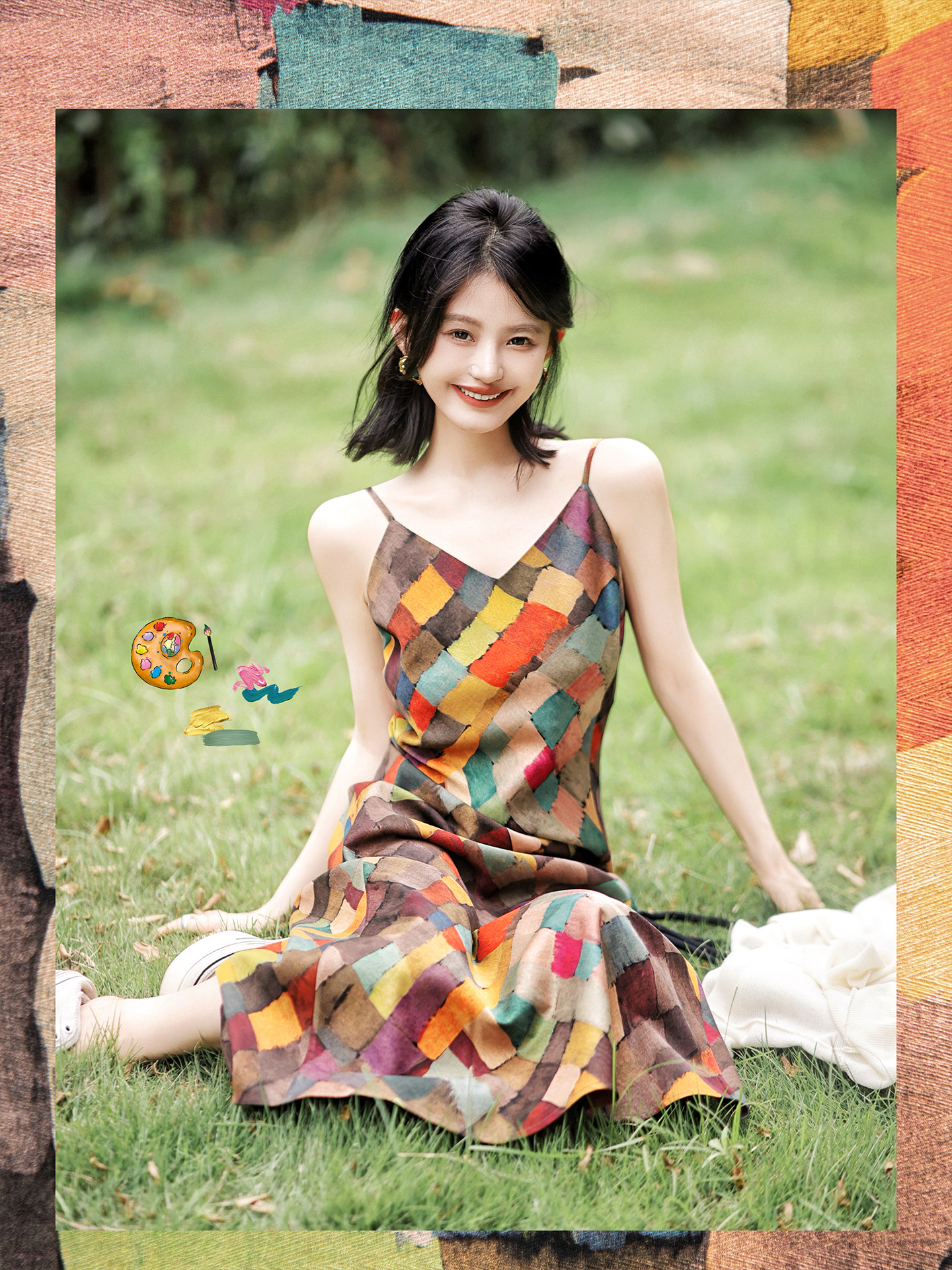 裙子采用大量不规则彩色方块拼接如同把彩虹打碎重组