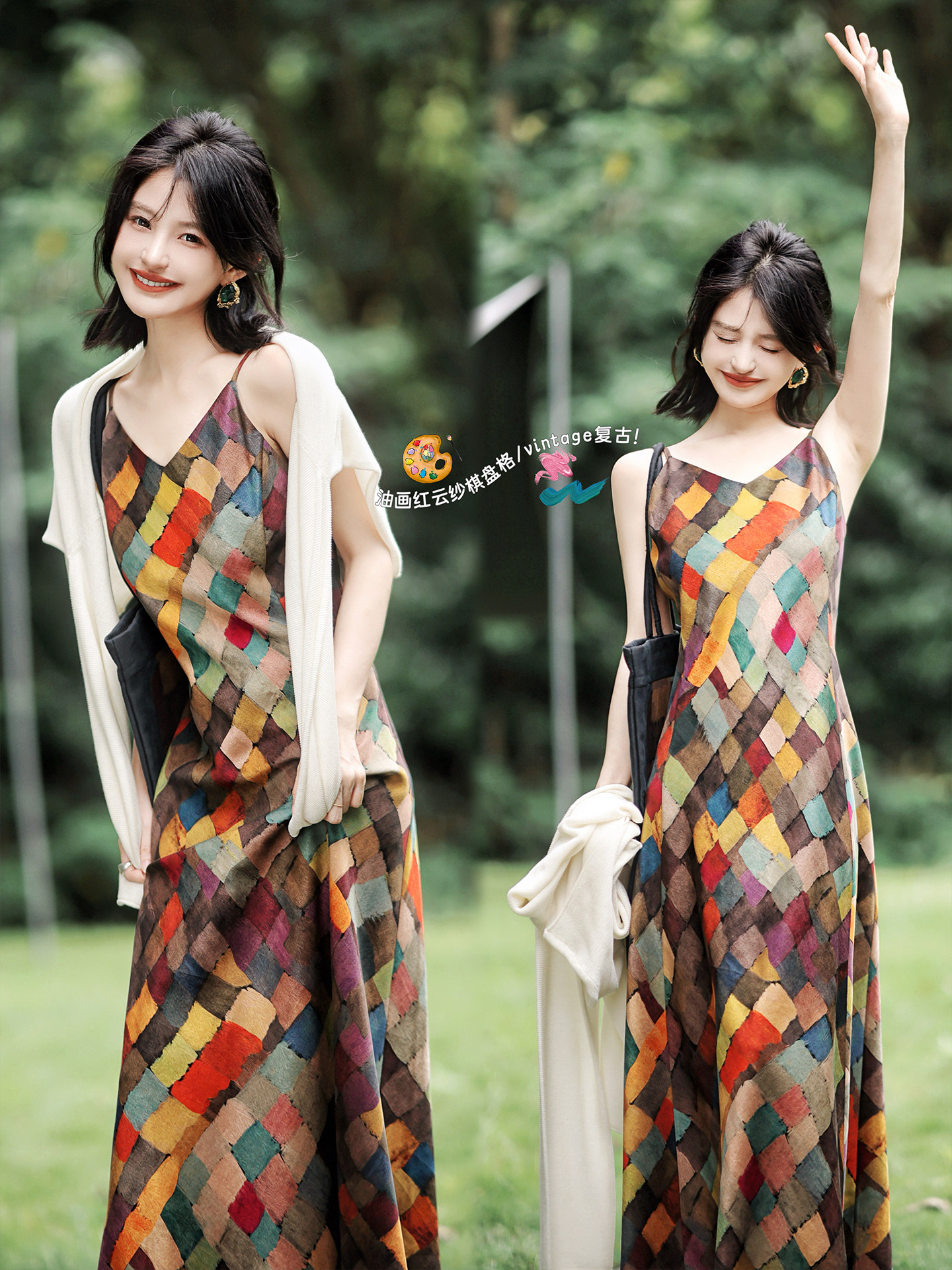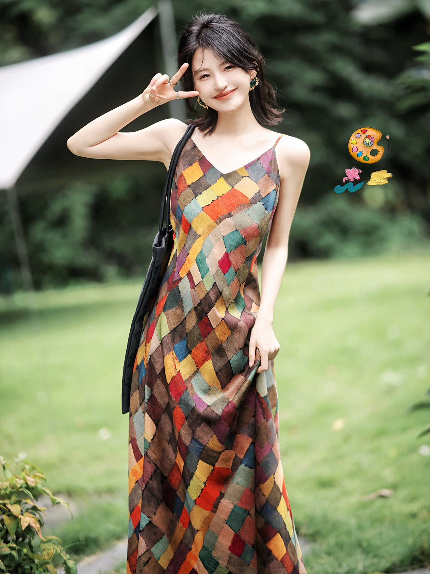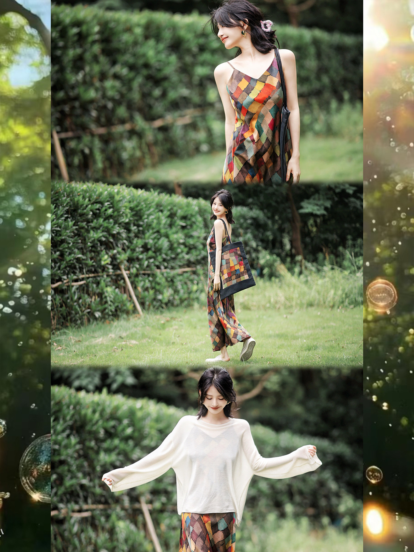 裙子采用大量不规则彩色方块拼接如同把彩虹打碎重组