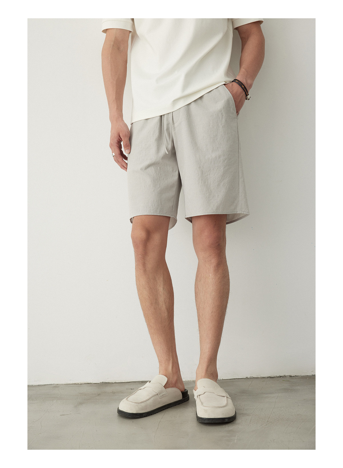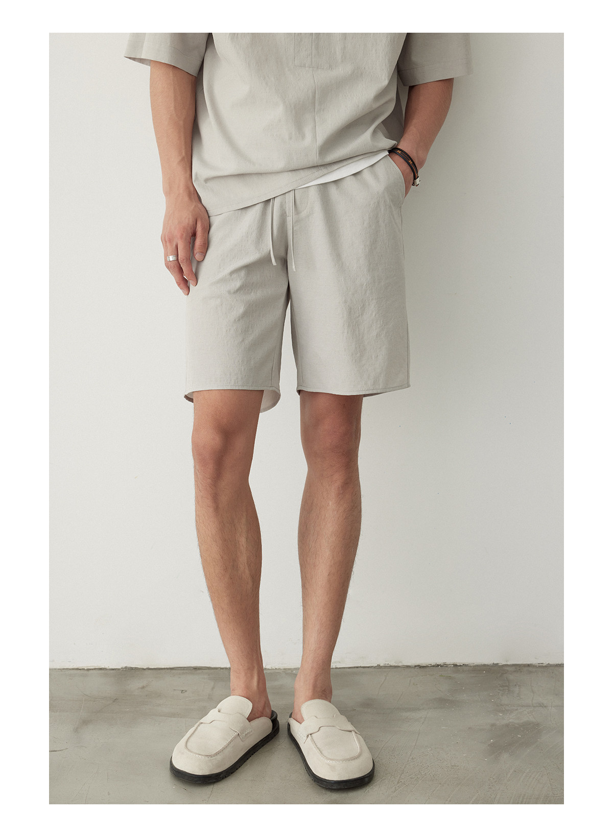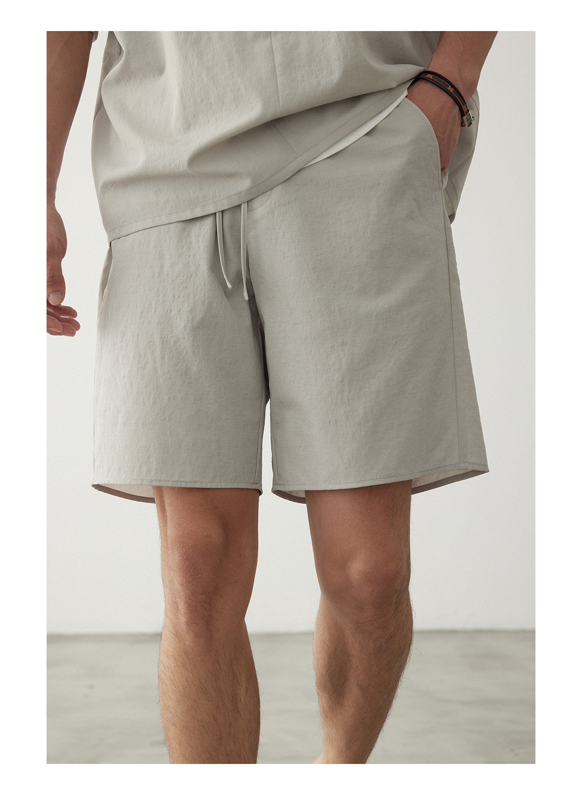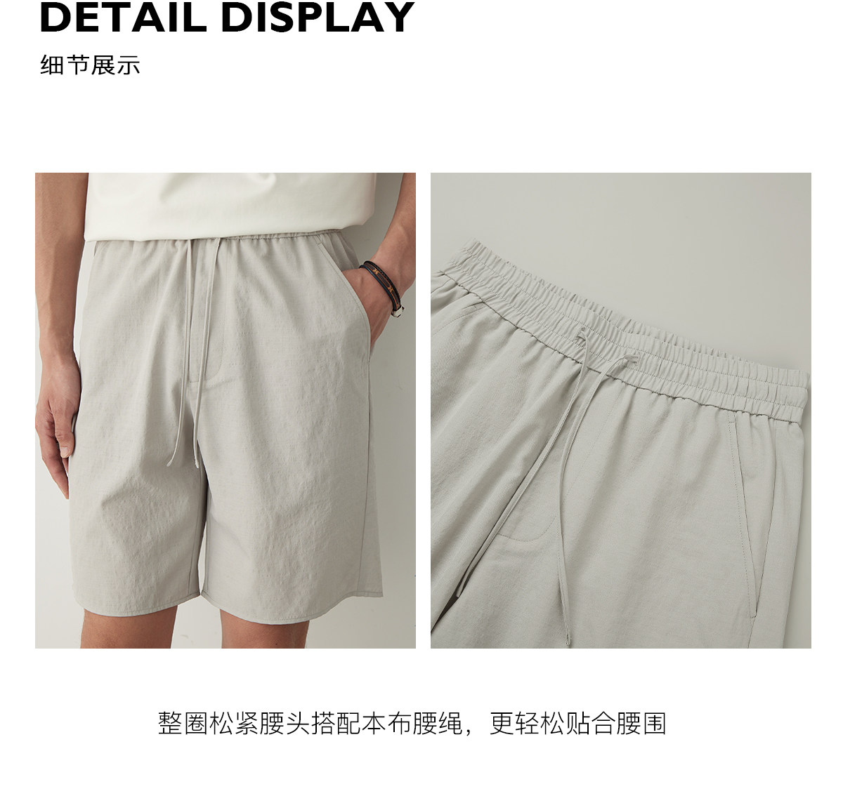 Osens Imitation Linen-Feel Lightweight Woven Twill Drawstring Shorts Casual Straight-Leg Elastic Waist Summer Men's Shorts