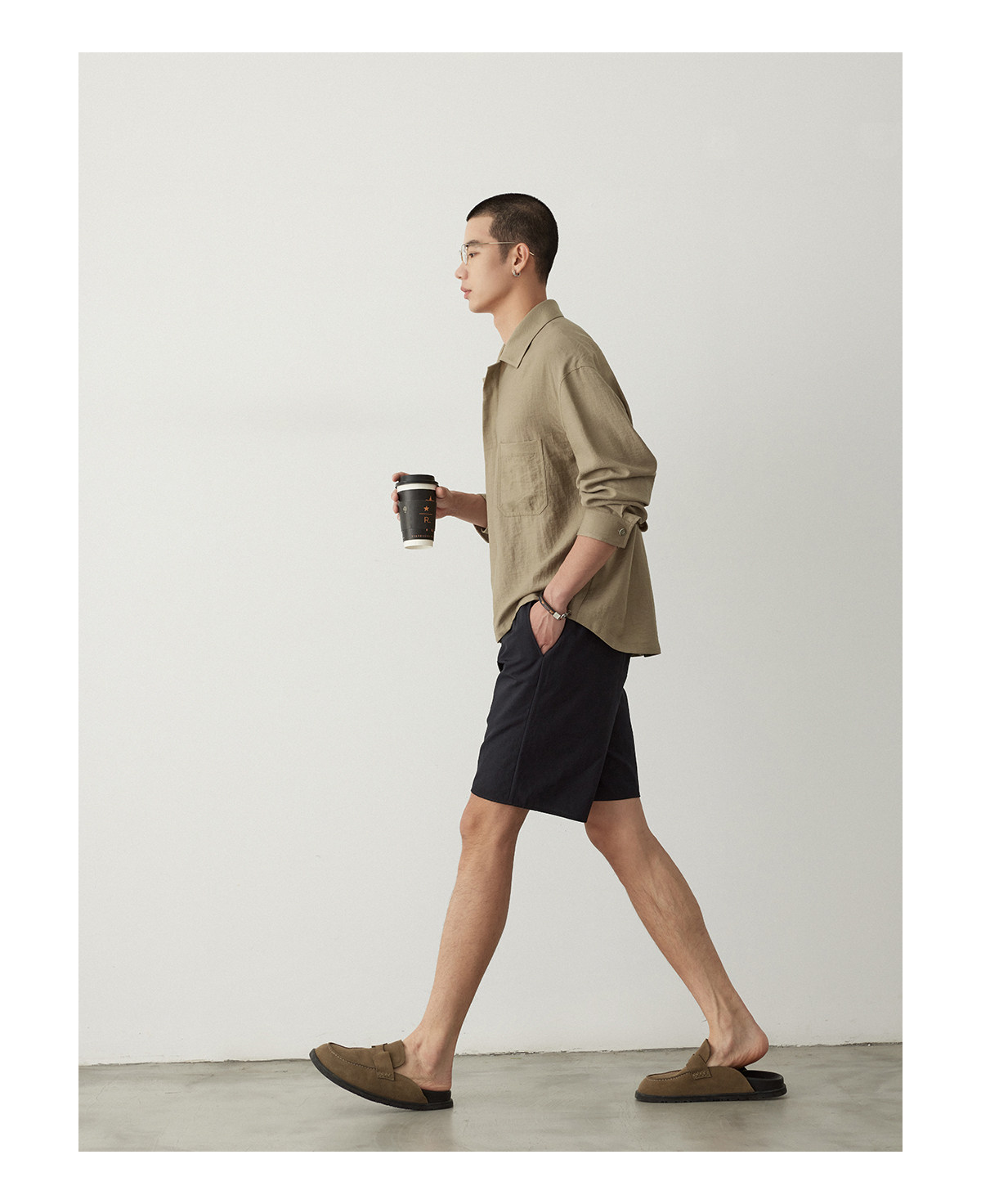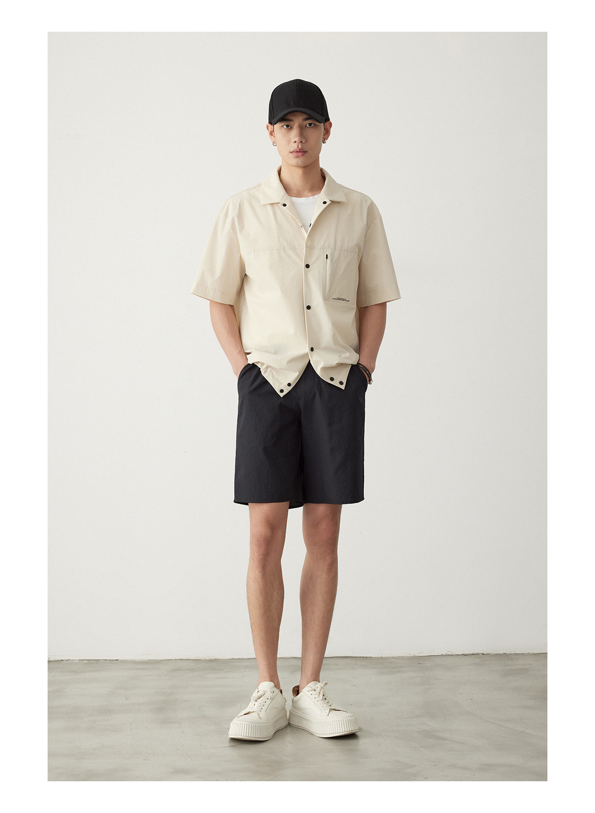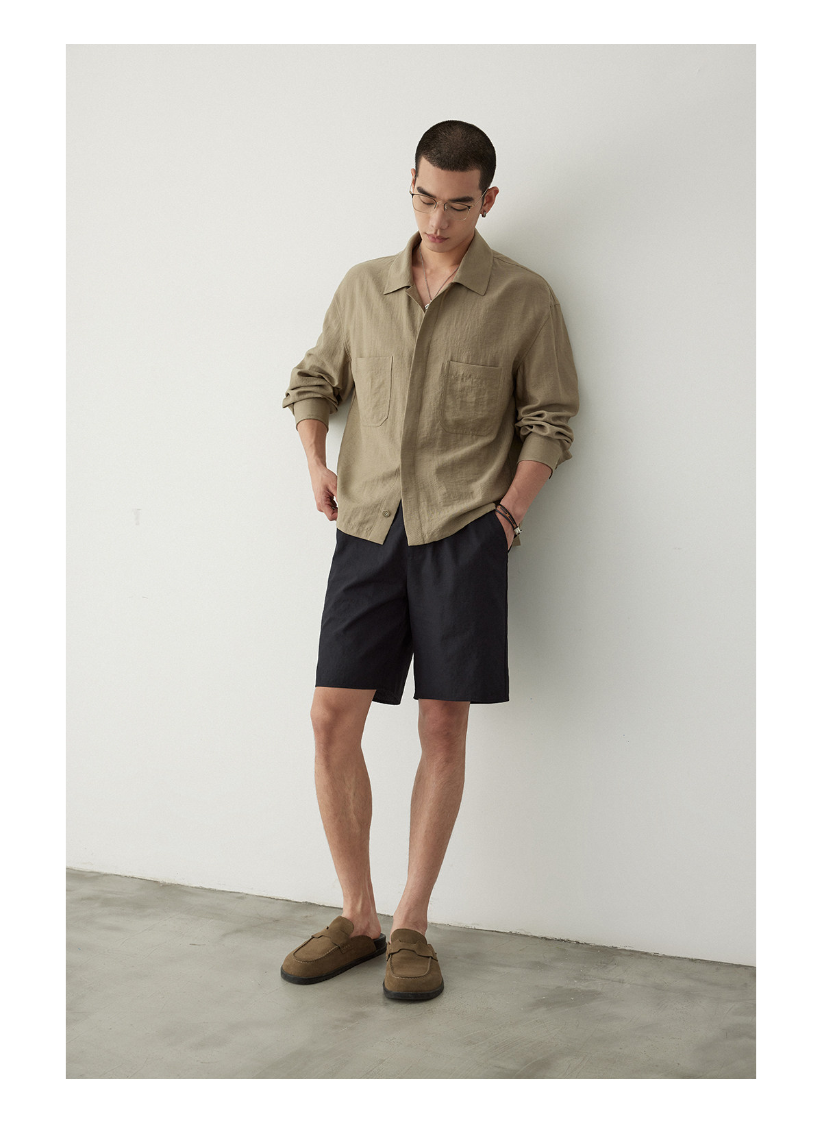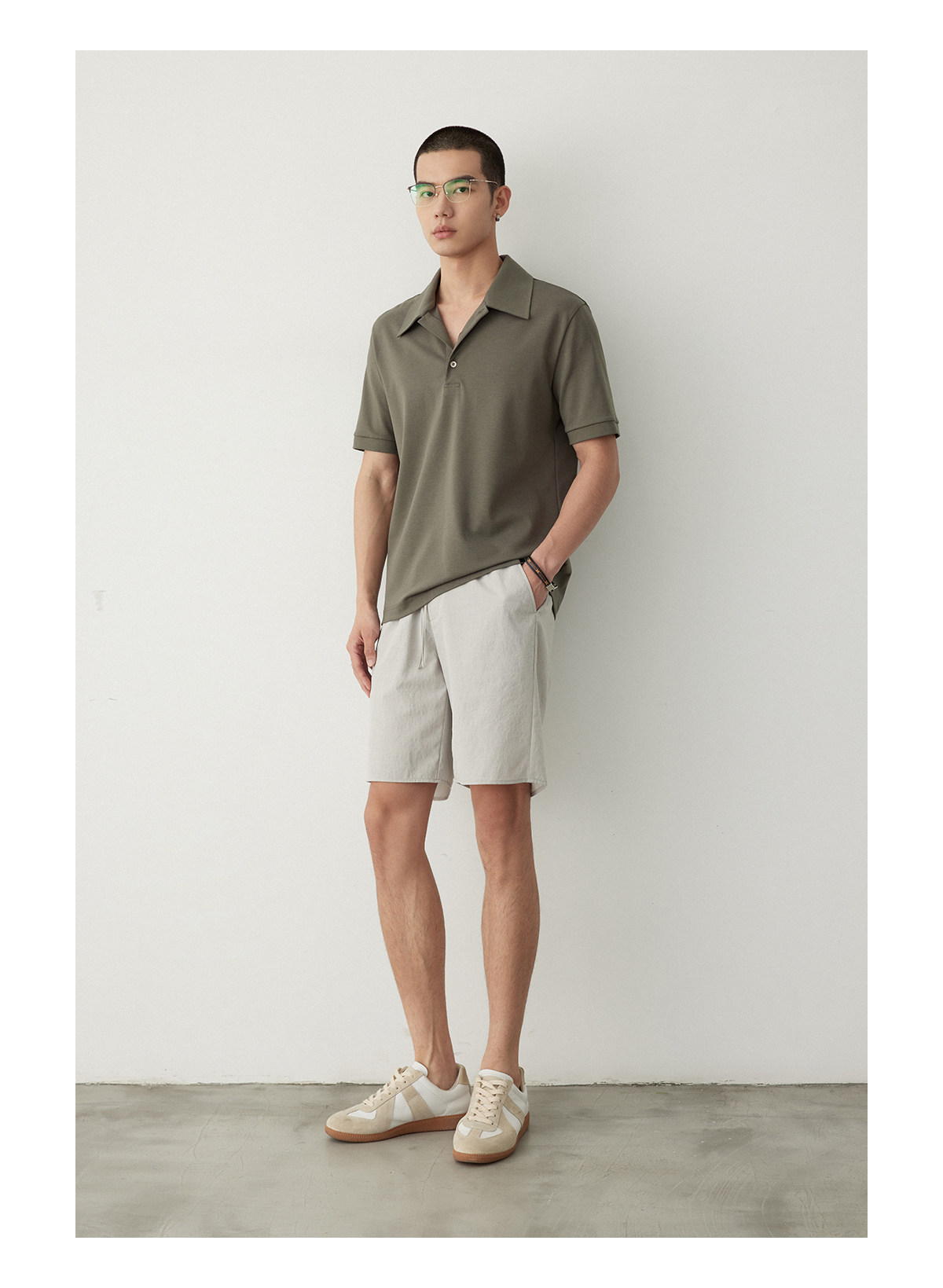 Osens Imitation Linen-Feel Lightweight Woven Twill Drawstring Shorts Casual Straight-Leg Elastic Waist Summer Men's Shorts
