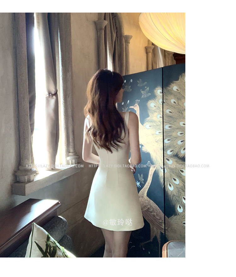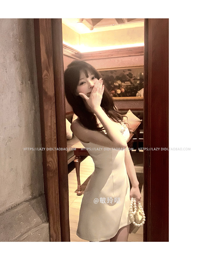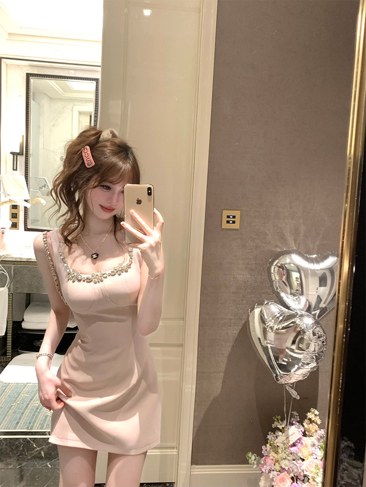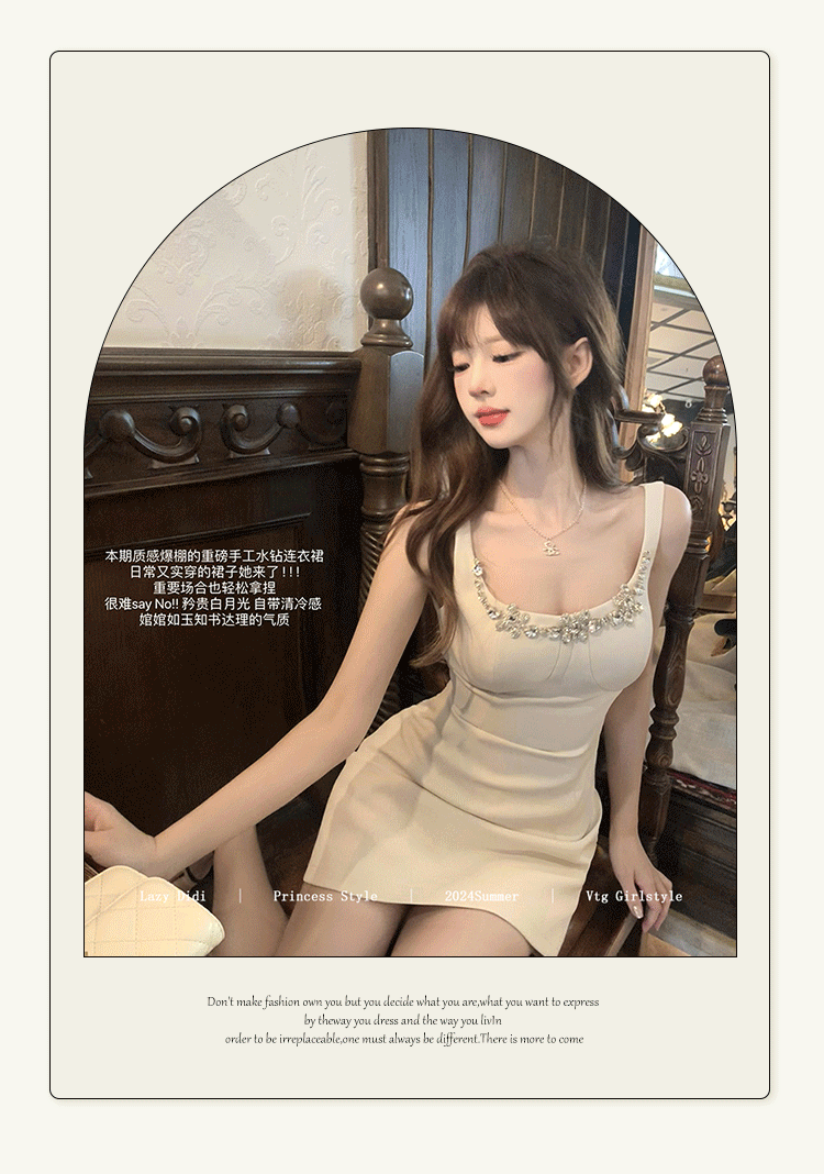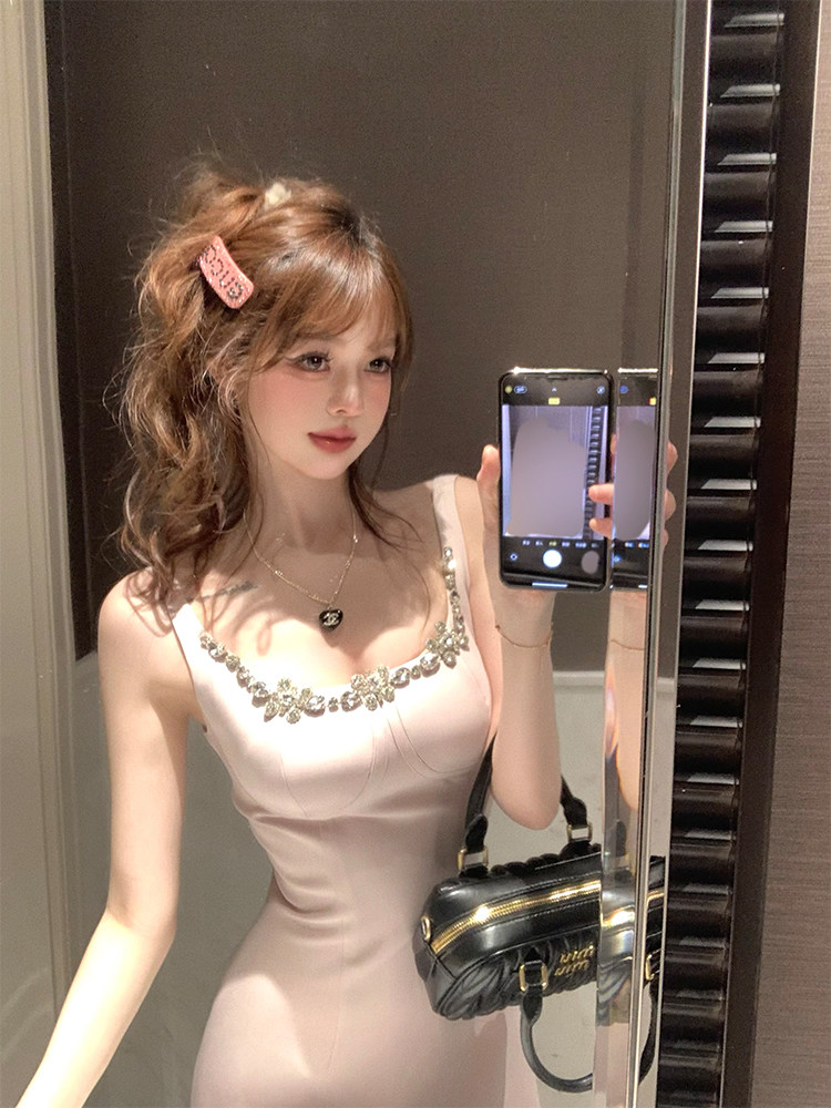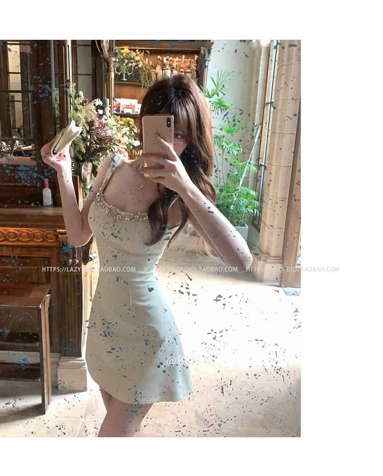 Lazy Didi, as Smooth as Jade, Sparkling Diamond A-Line Dress with Rhinestones, Sweet and Elegant Waist-Cinching Spaghetti Strap Dress