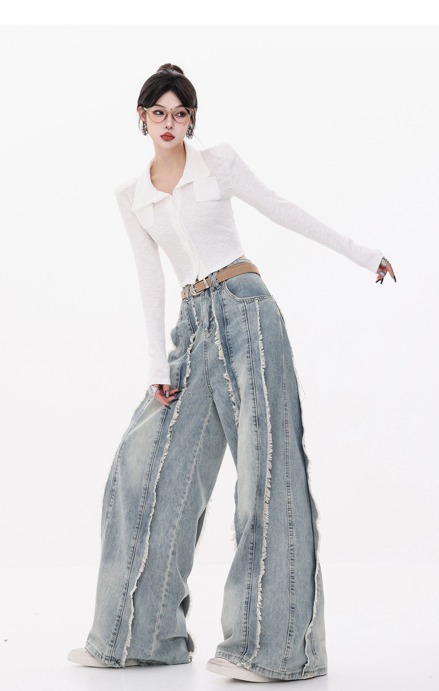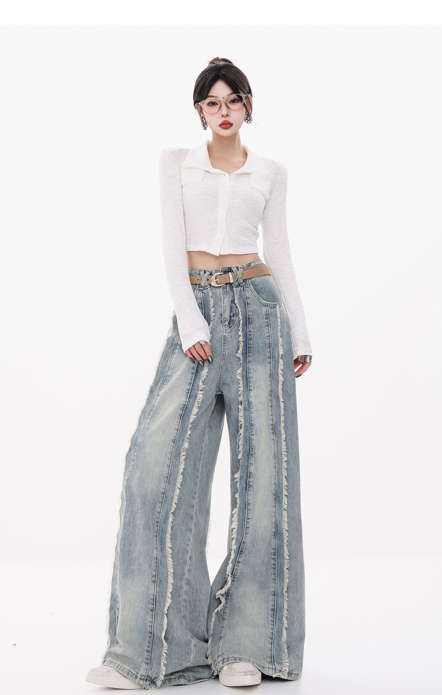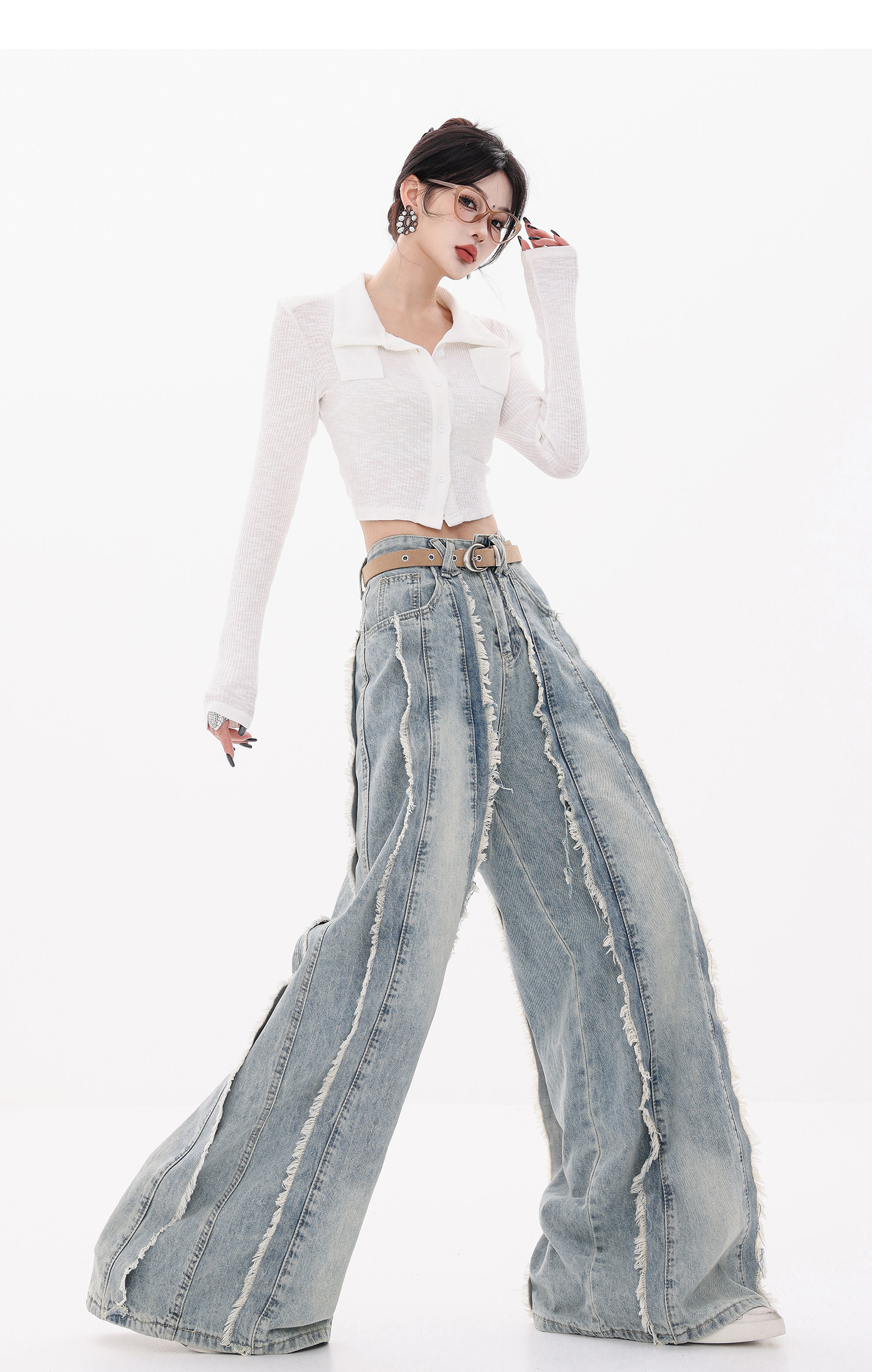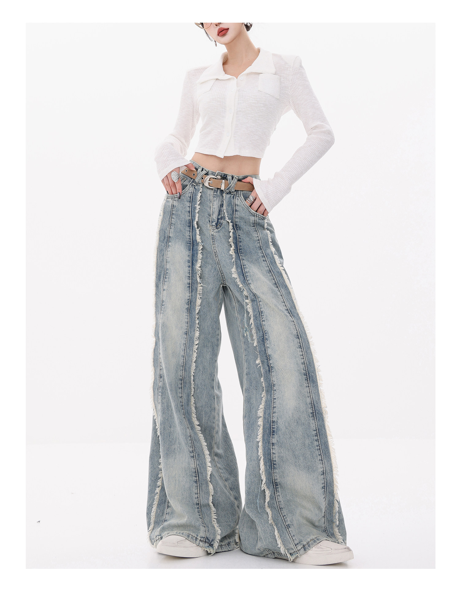 Abwear Vine Autumn - Original Early Spring Frayed Design Wide-Leg Jeans for Women, Loose Straight-Leg Floor-Length Pants
