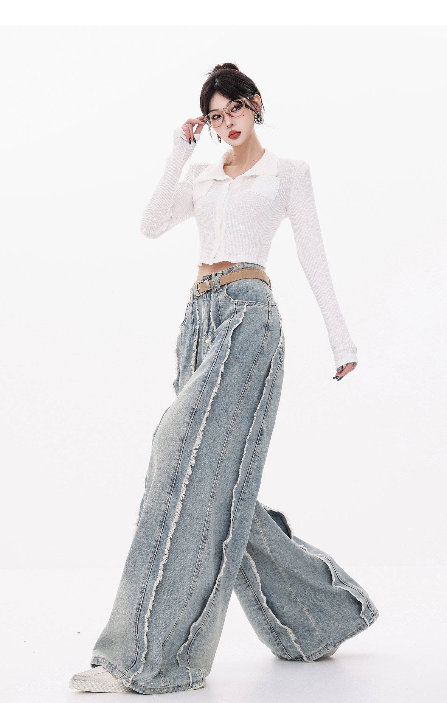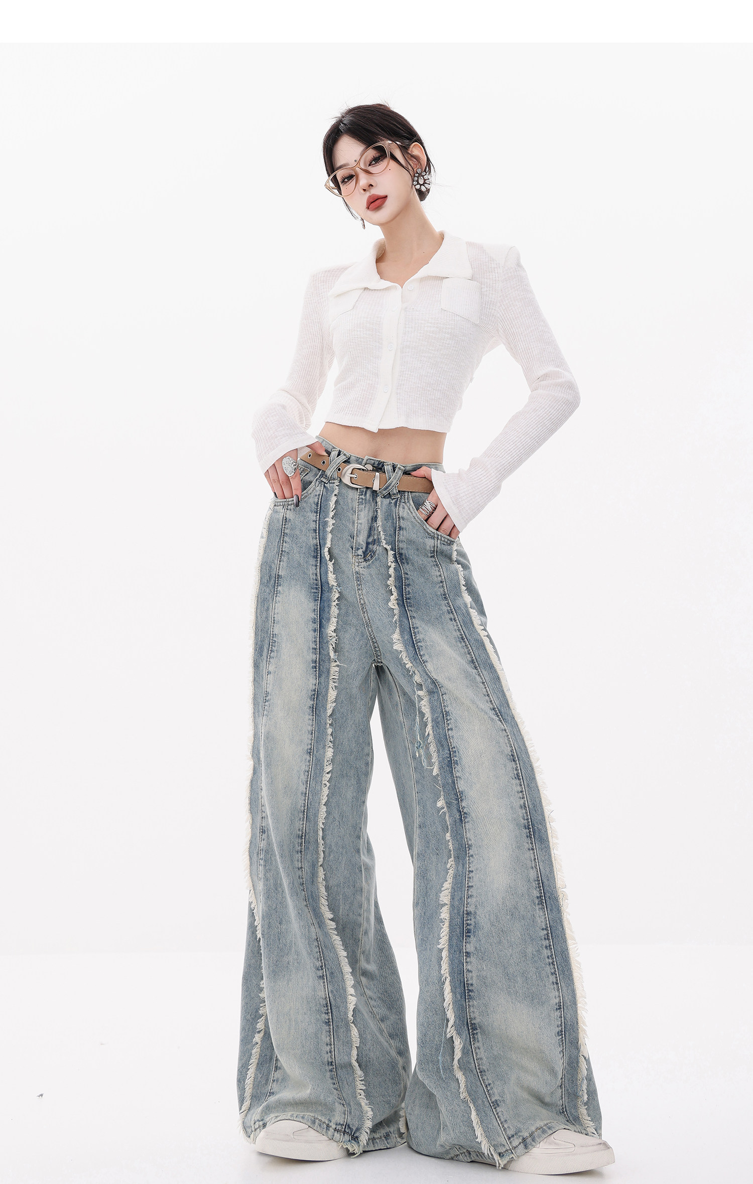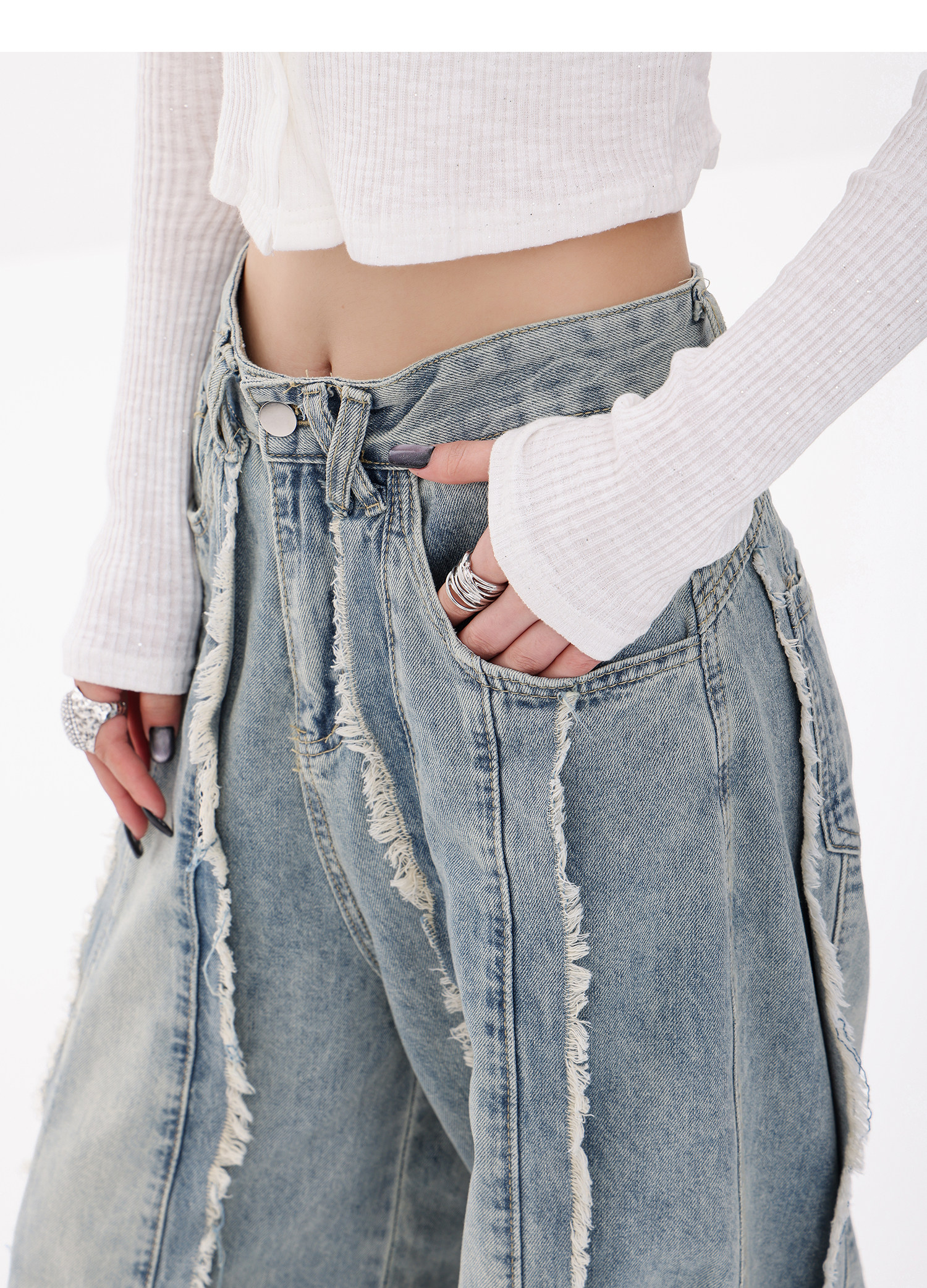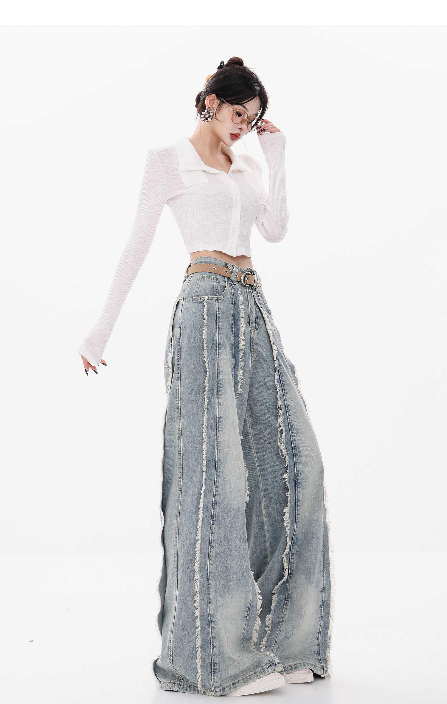Abwear Vine Autumn - Original Early Spring Frayed Design Wide-Leg Jeans for Women, Loose Straight-Leg Floor-Length Pants