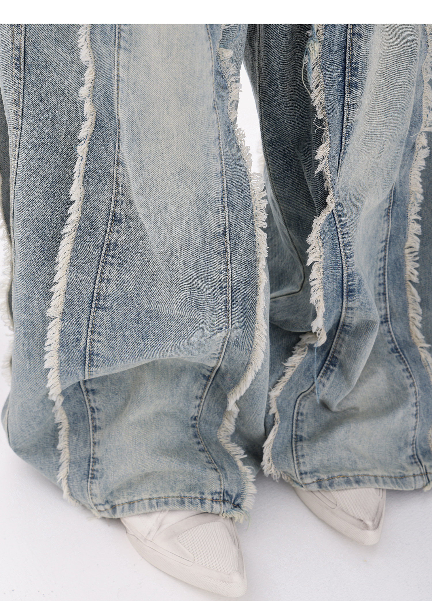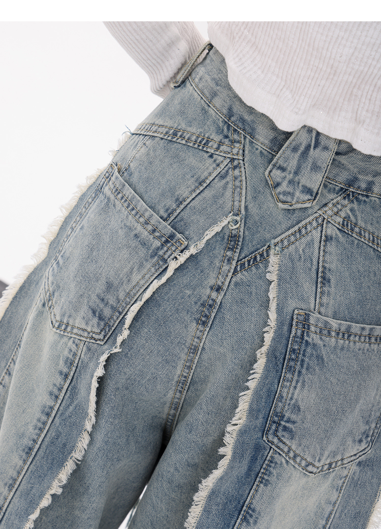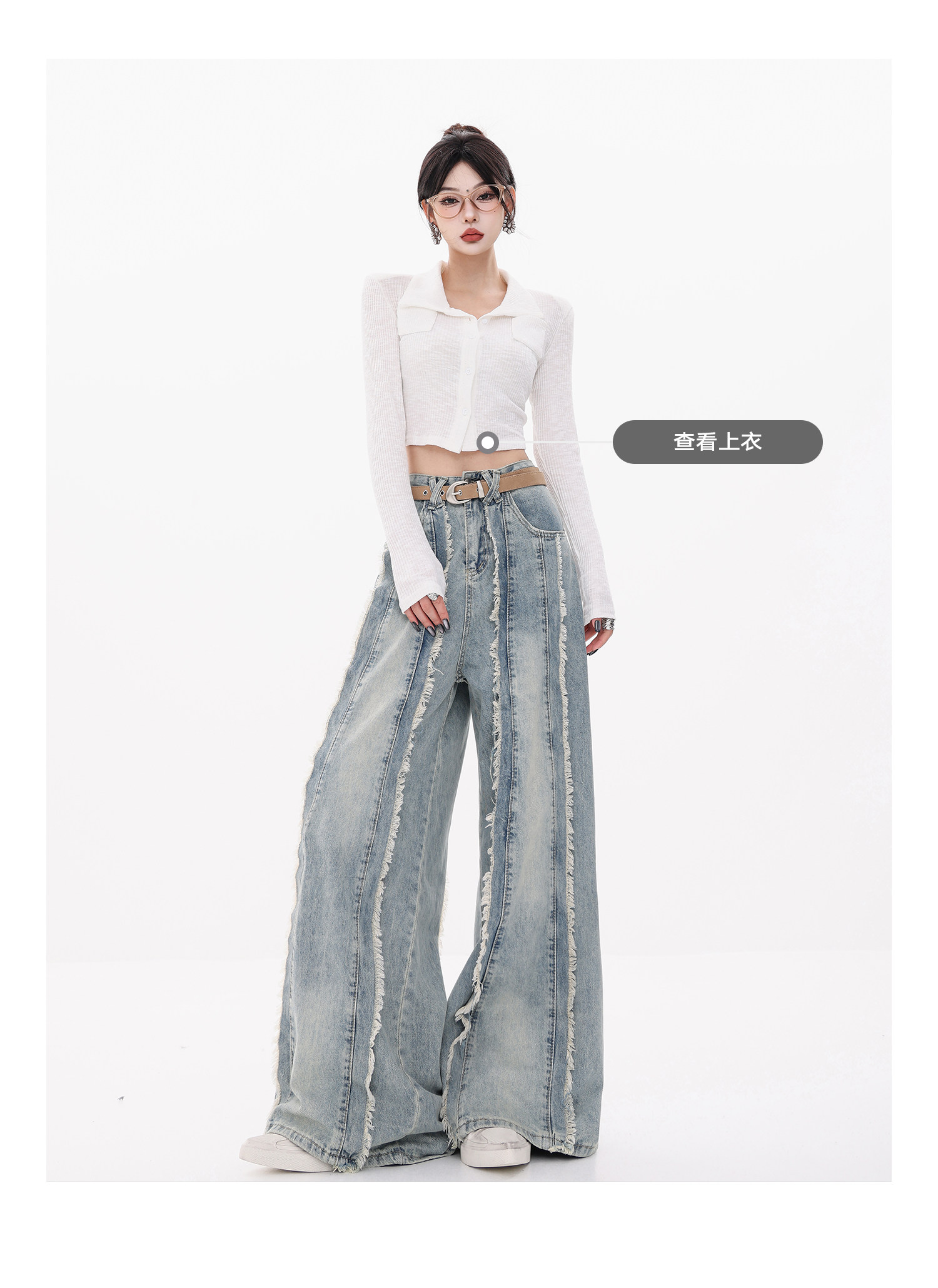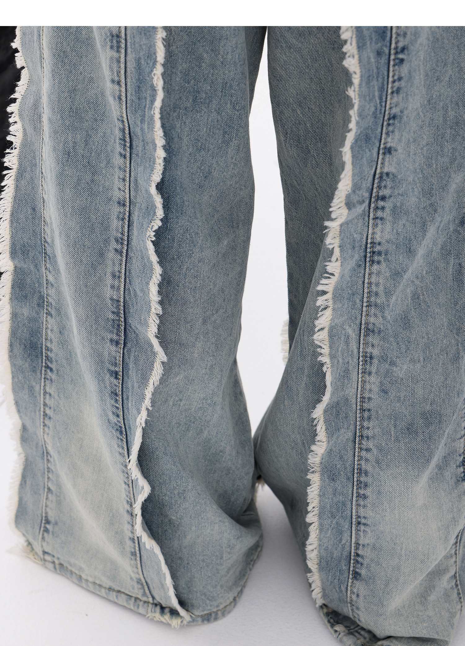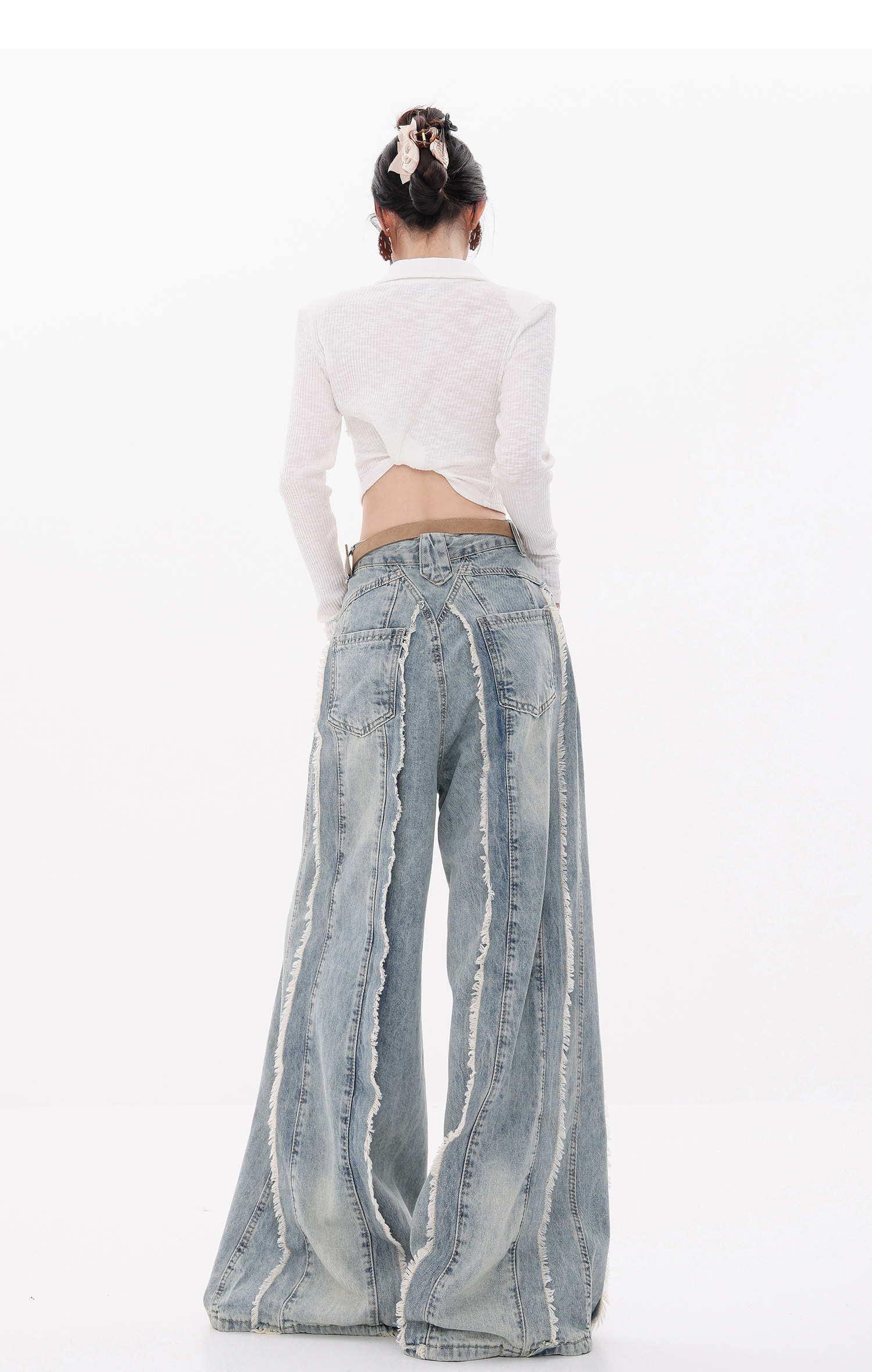 Abwear Vine Autumn - Original Early Spring Frayed Design Wide-Leg Jeans for Women, Loose Straight-Leg Floor-Length Pants