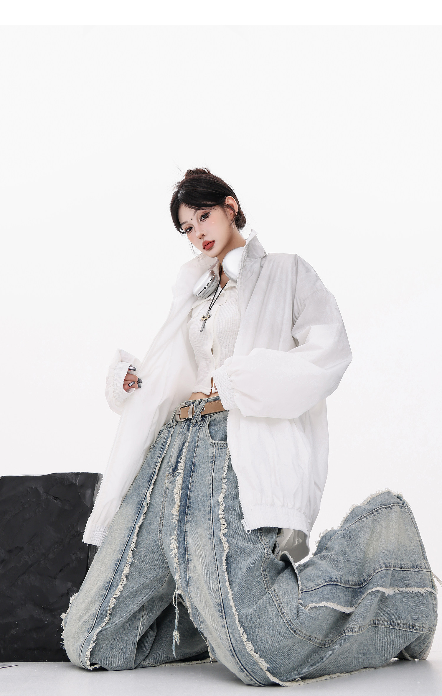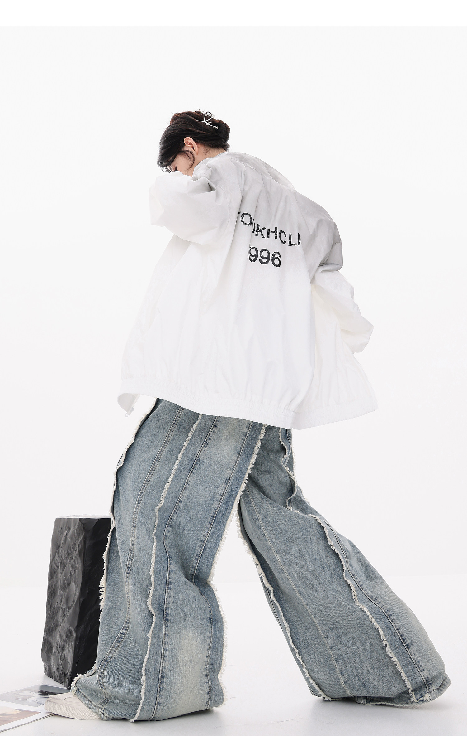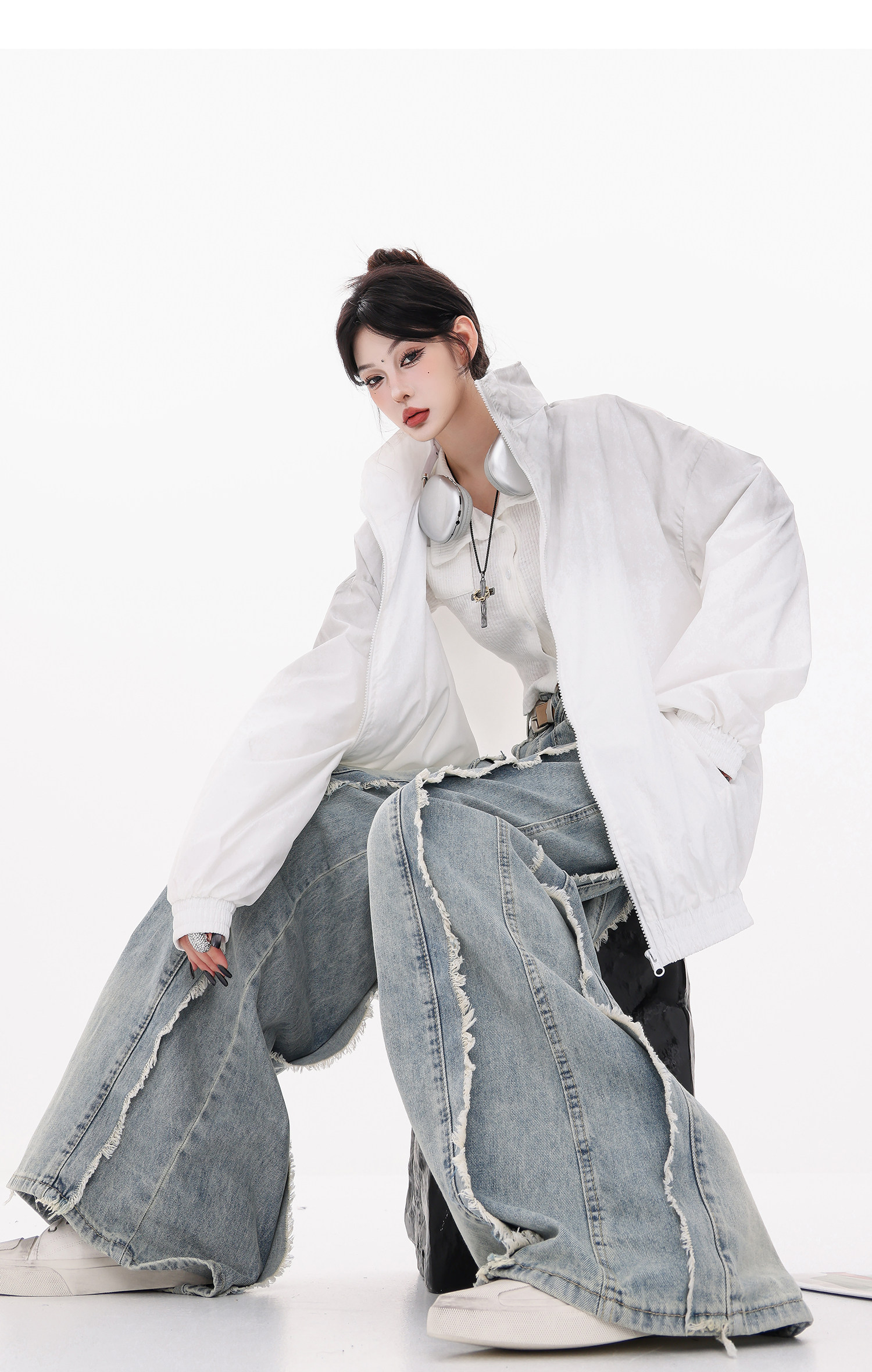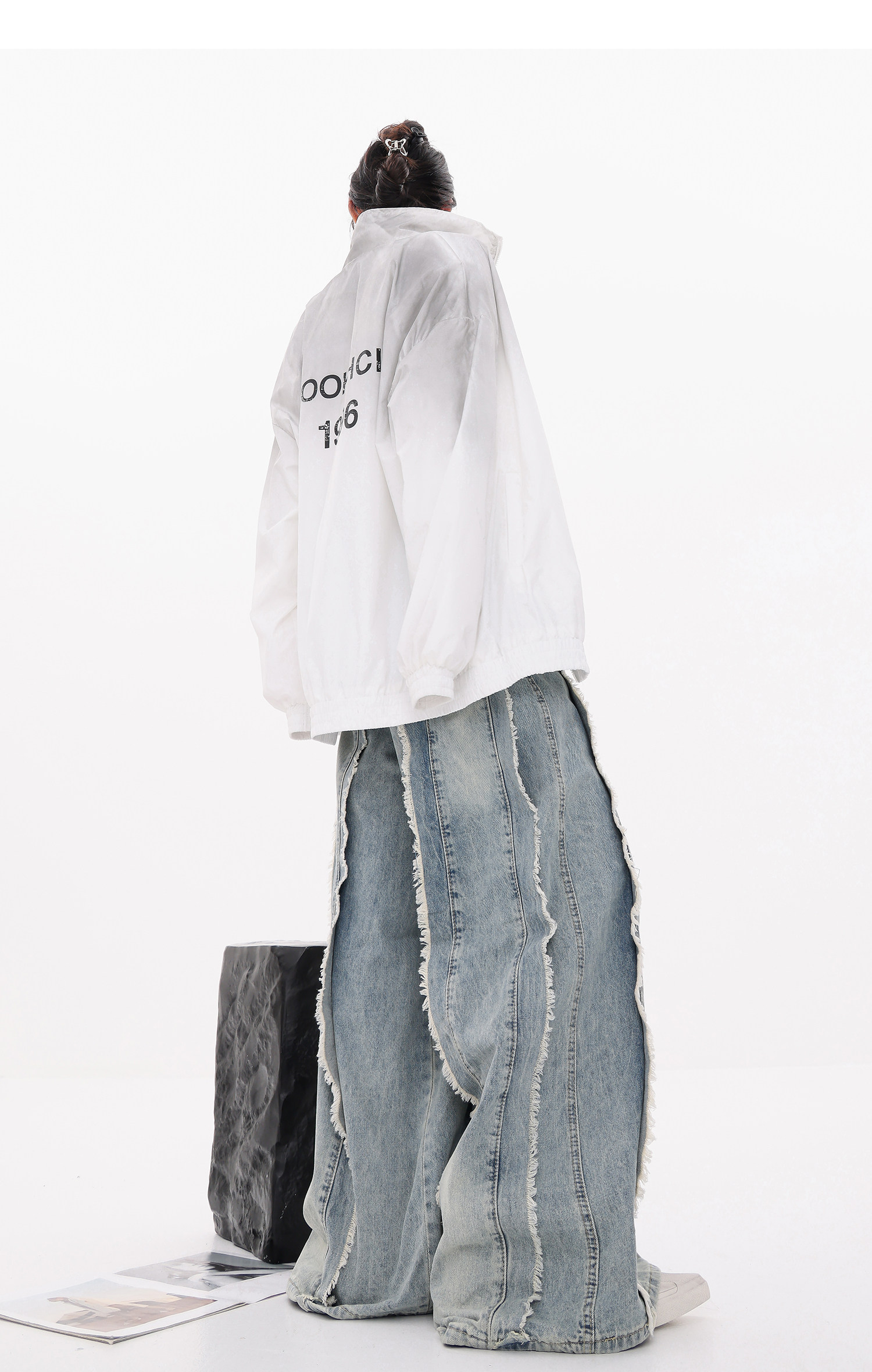 Abwear Vine Autumn - Original Early Spring Frayed Design Wide-Leg Jeans for Women, Loose Straight-Leg Floor-Length Pants