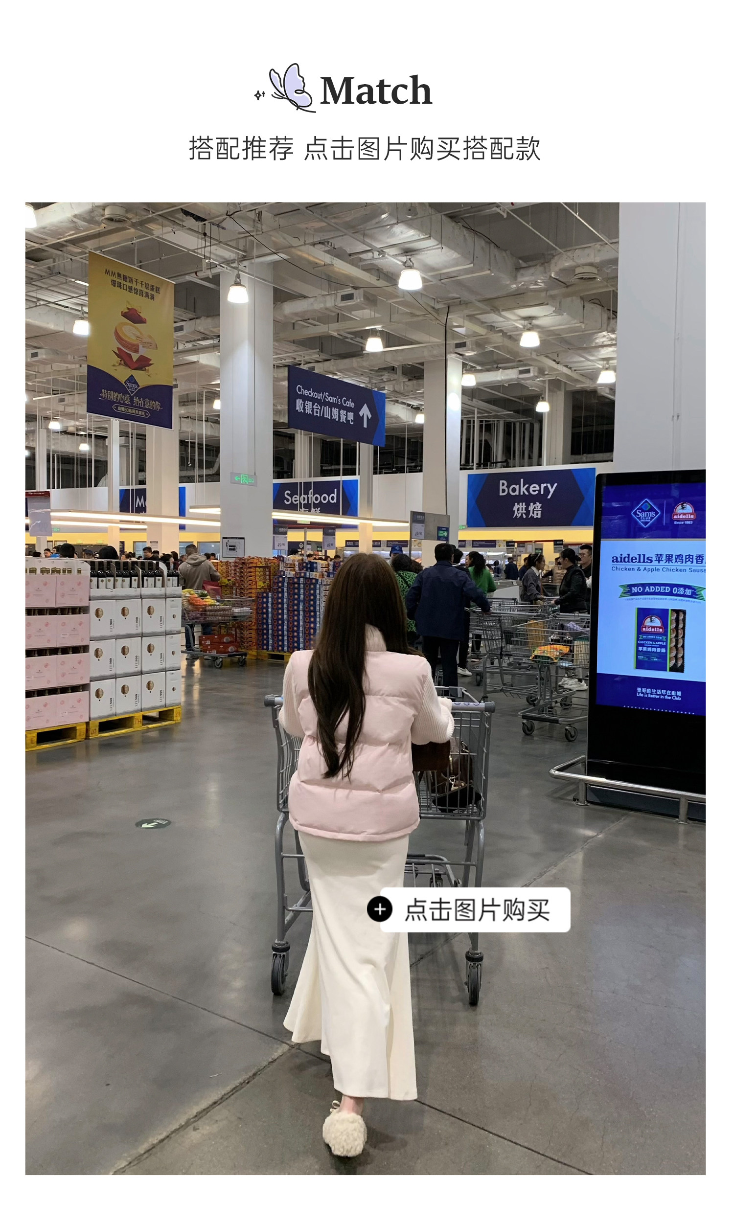 Lukira【Cotton Cloud Soft】Pink Stand Collar Puffer down Cotton Jacket for Women Winter Patchwork Knitted Top