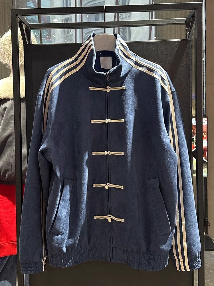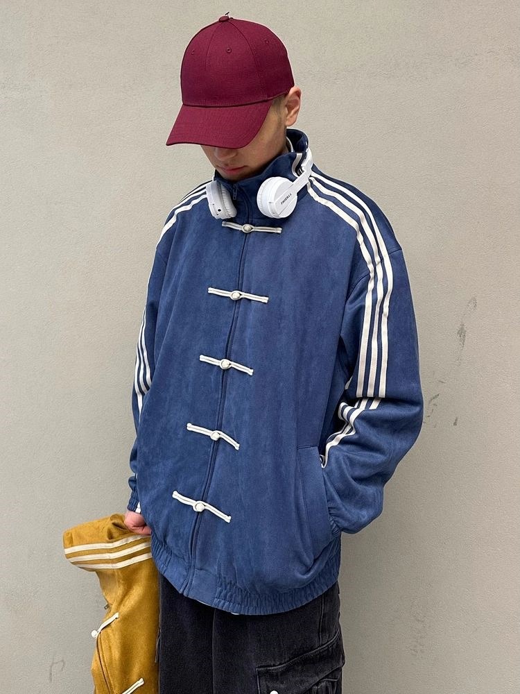 Wang Anyu's Same Style Year of the Snake Limited Edition New Chinese-Style Buckle Stand-Up Collar Suede Jacket for Men and Women, Couple's Tang Suit Jacket, Trendy