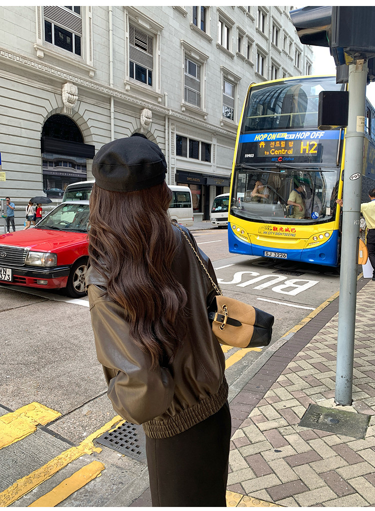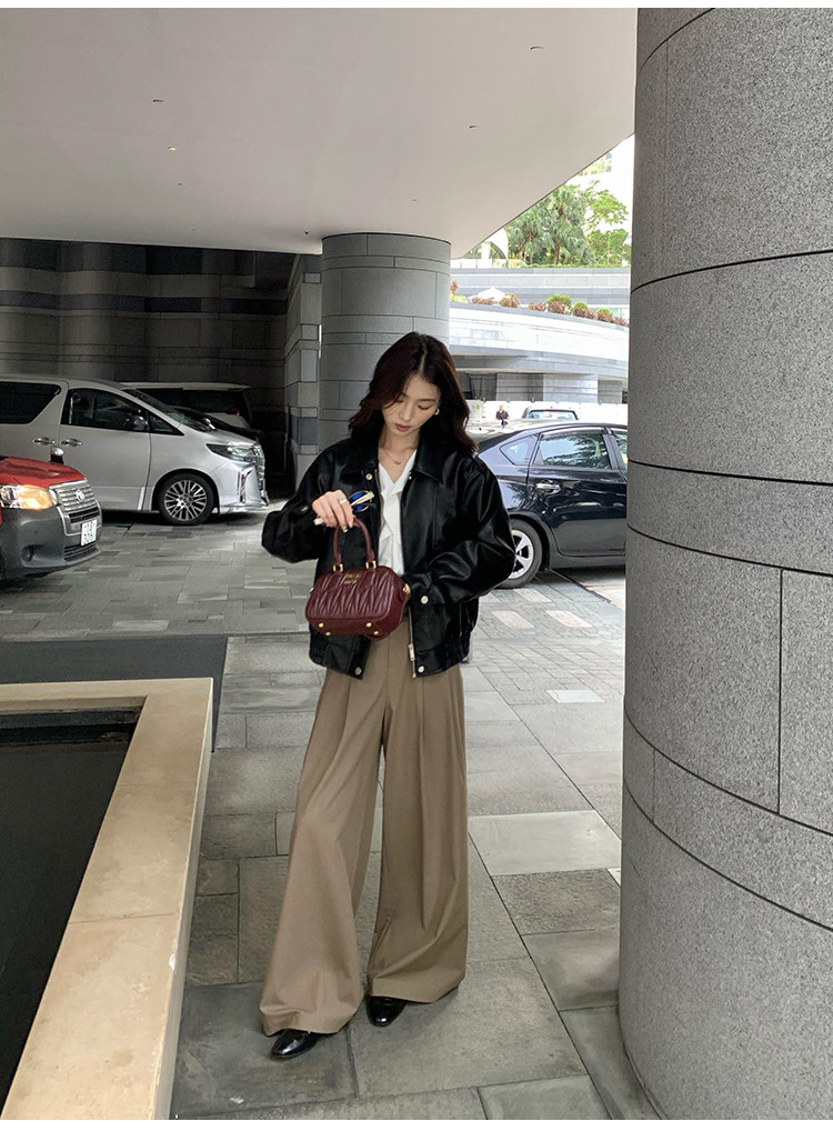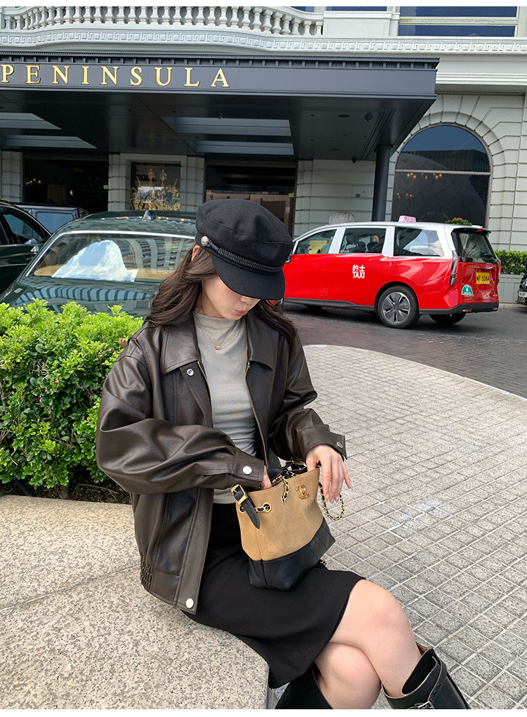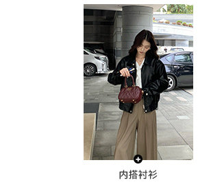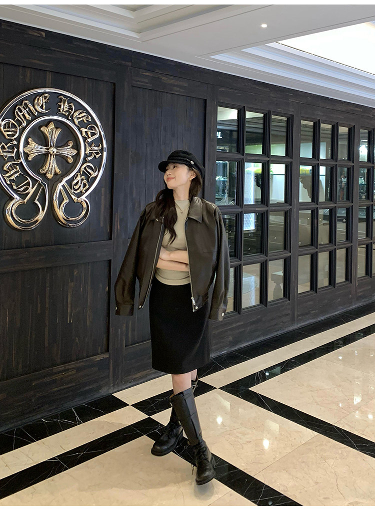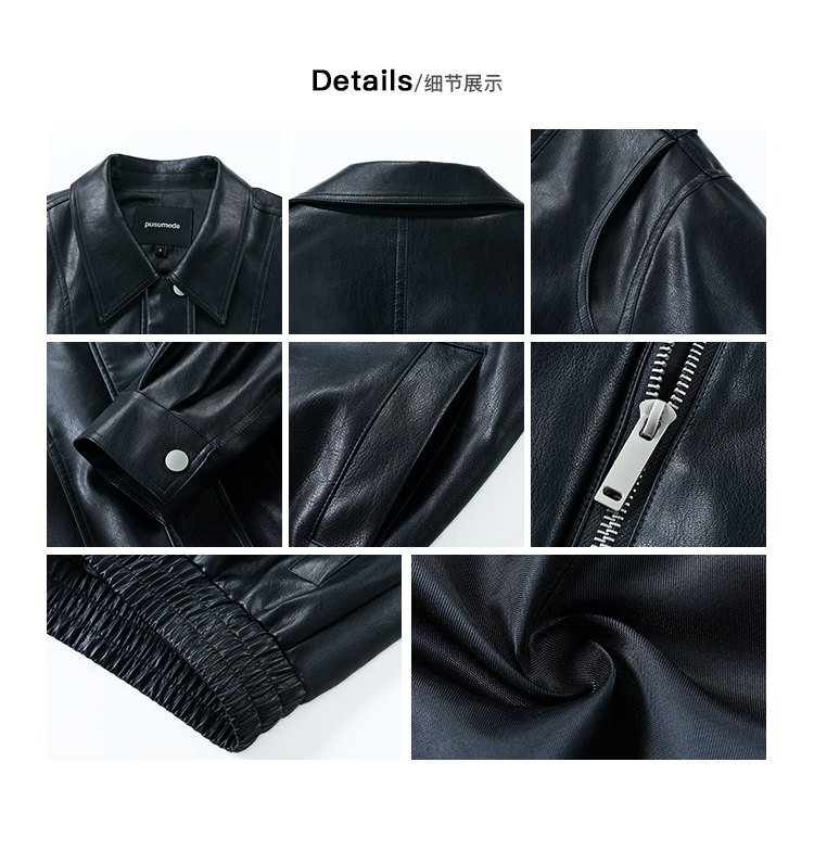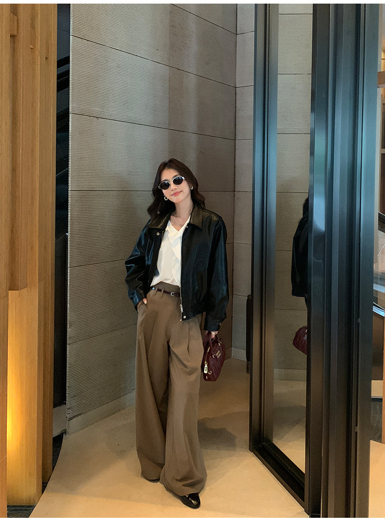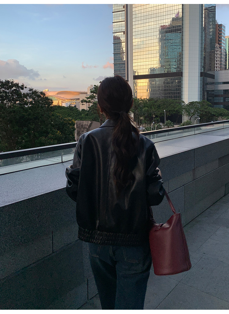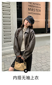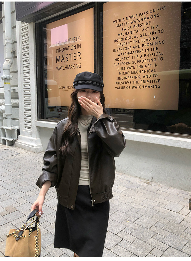 Pusumede Niche Player Retro Lapel Short Pu Leather Jacket for Women, Loose and High-End Silhouette Coat