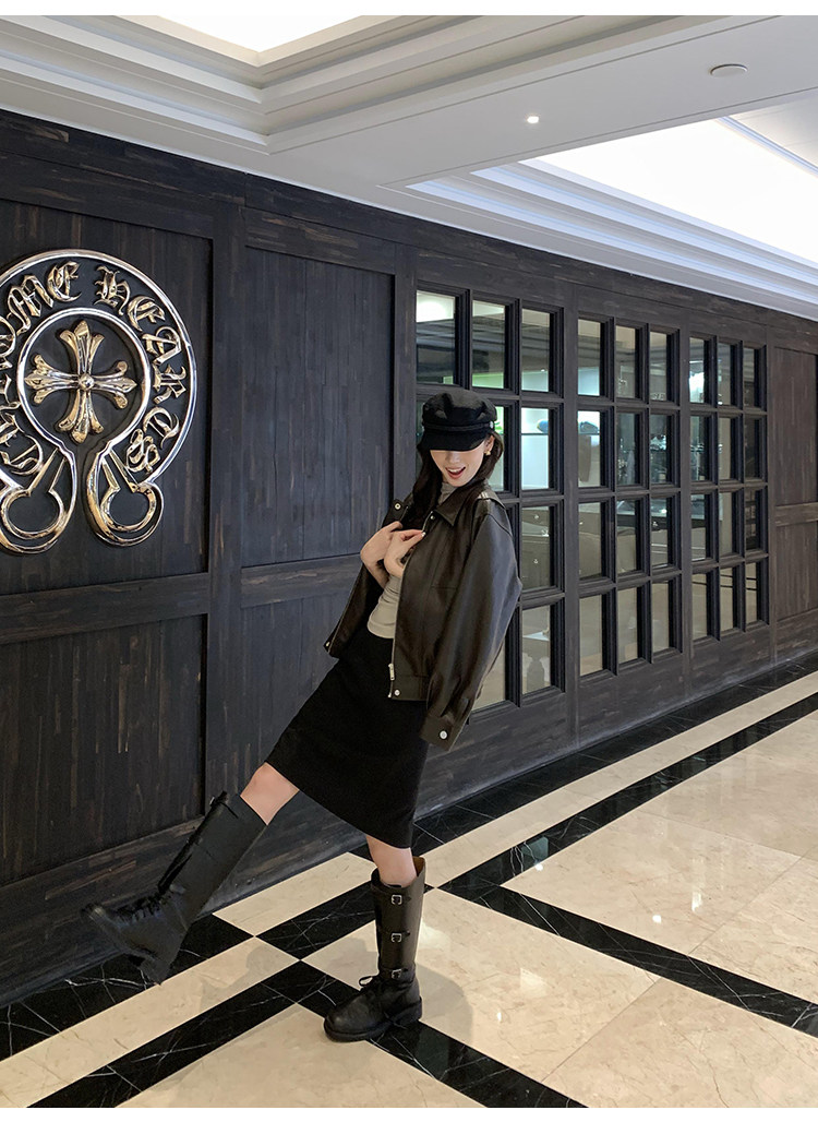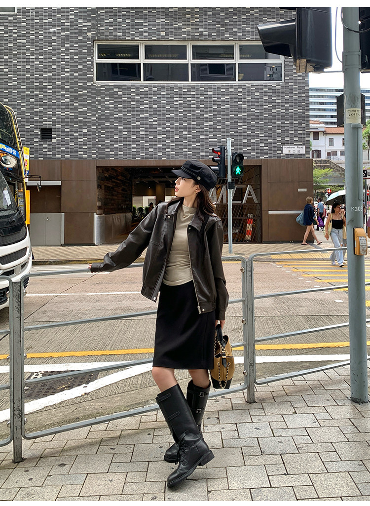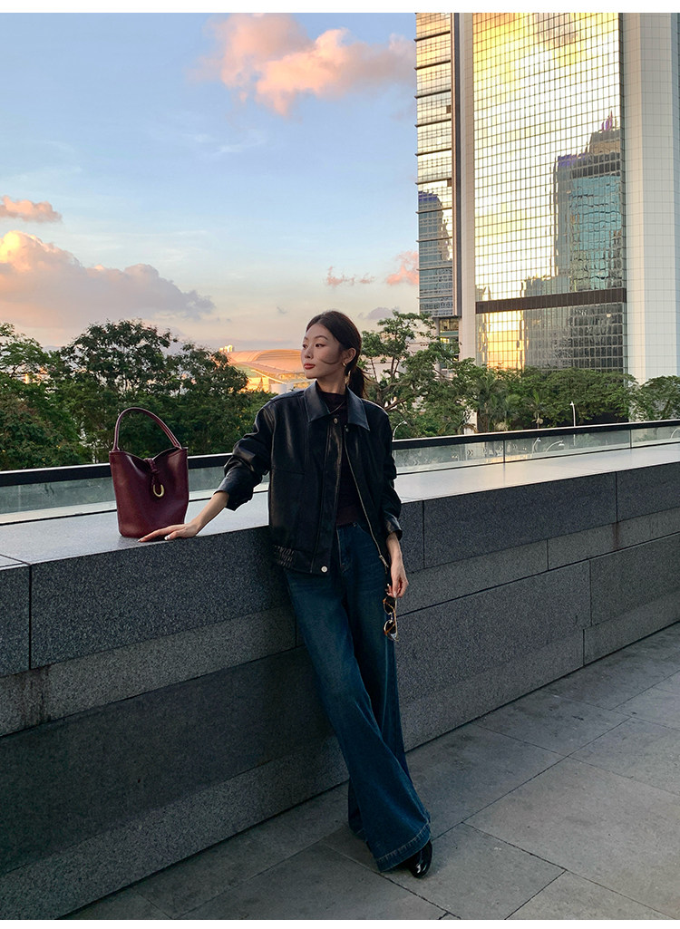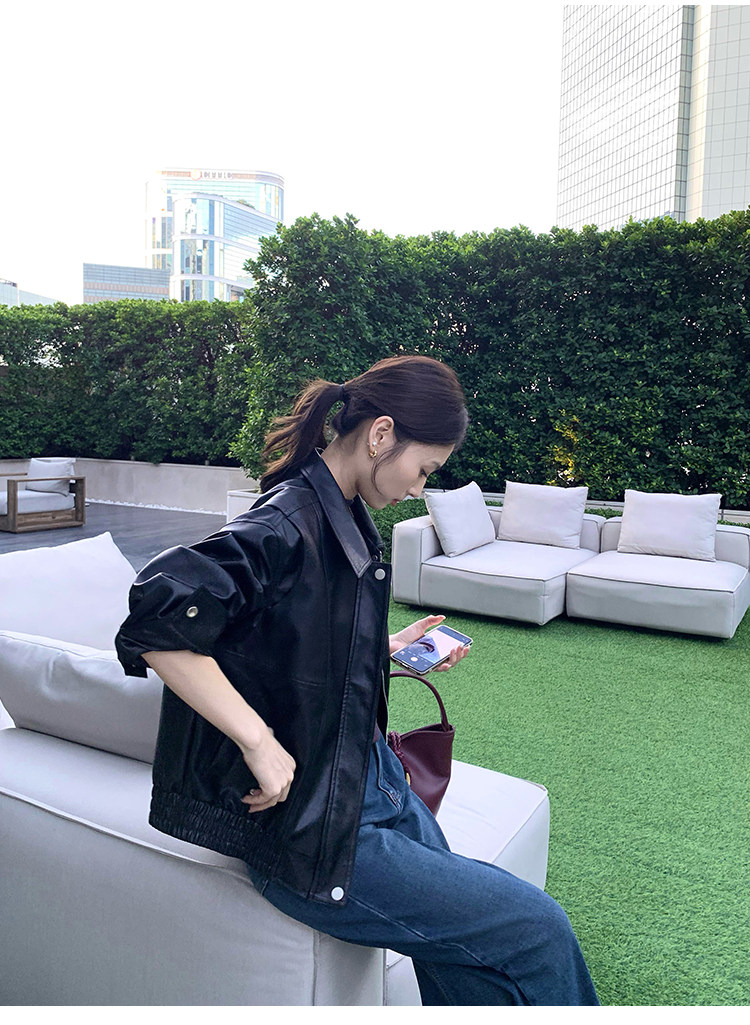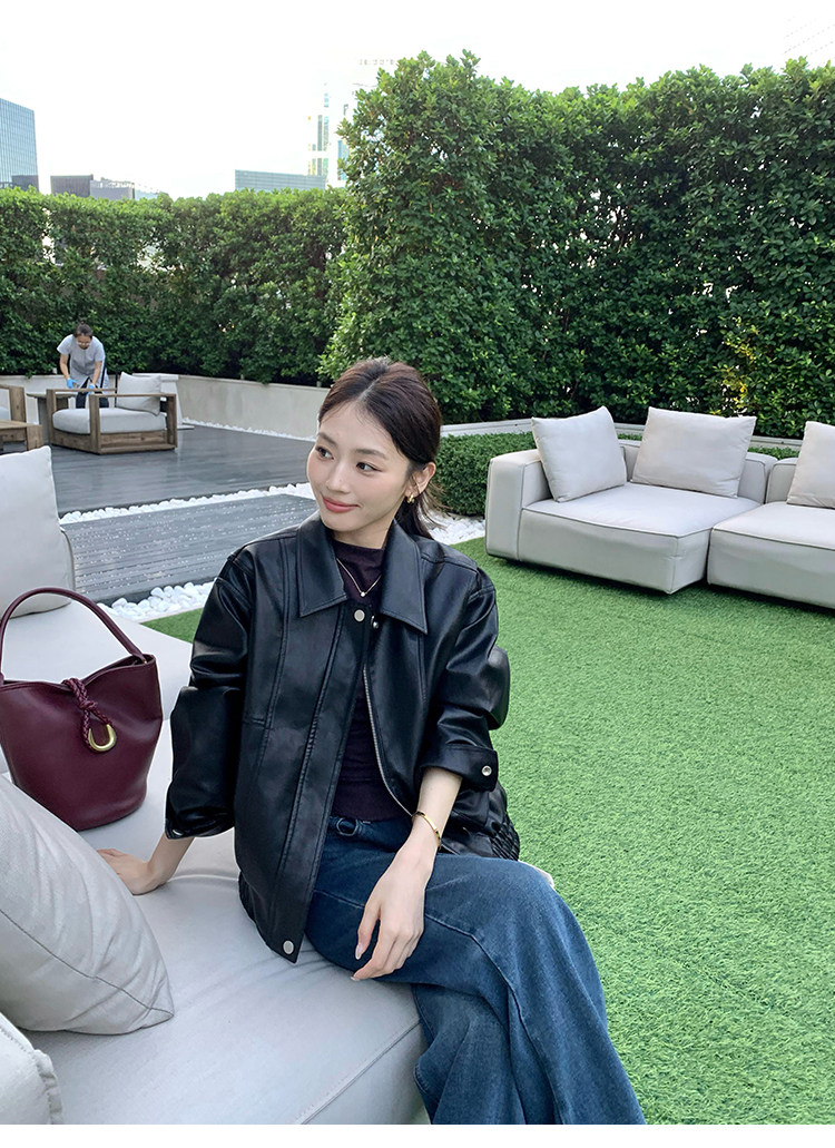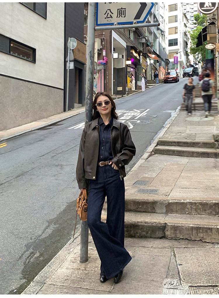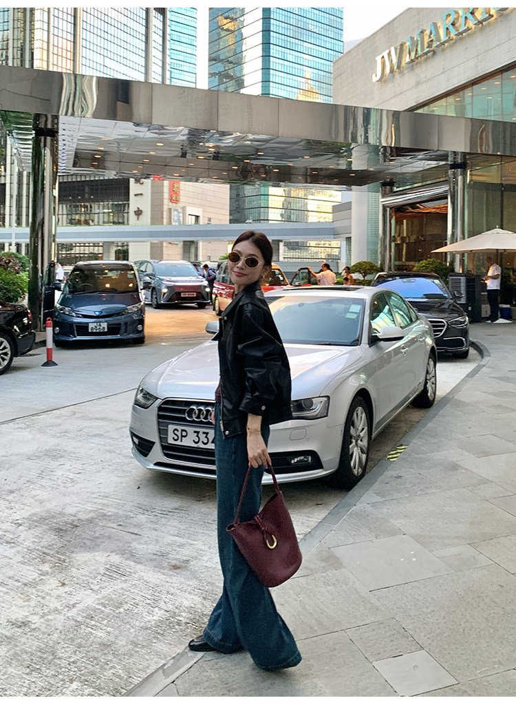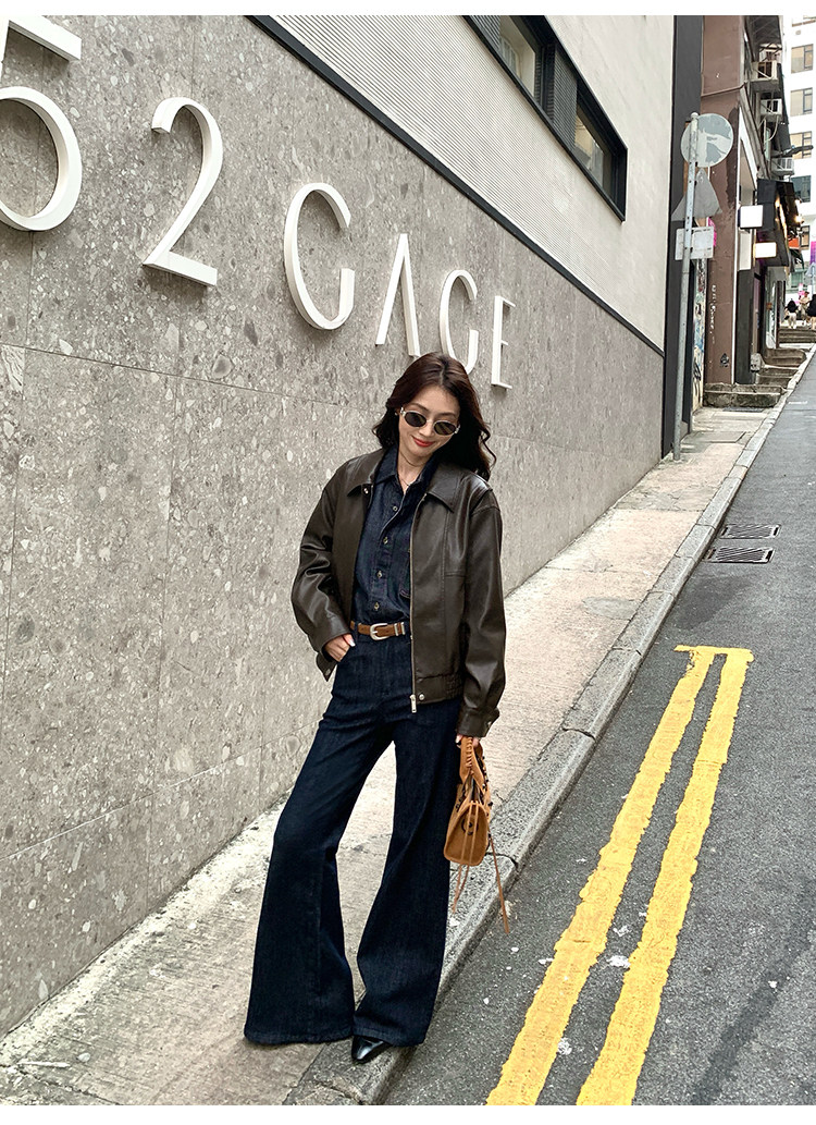 Pusumede Niche Player Retro Lapel Short Pu Leather Jacket for Women, Loose and High-End Silhouette Coat