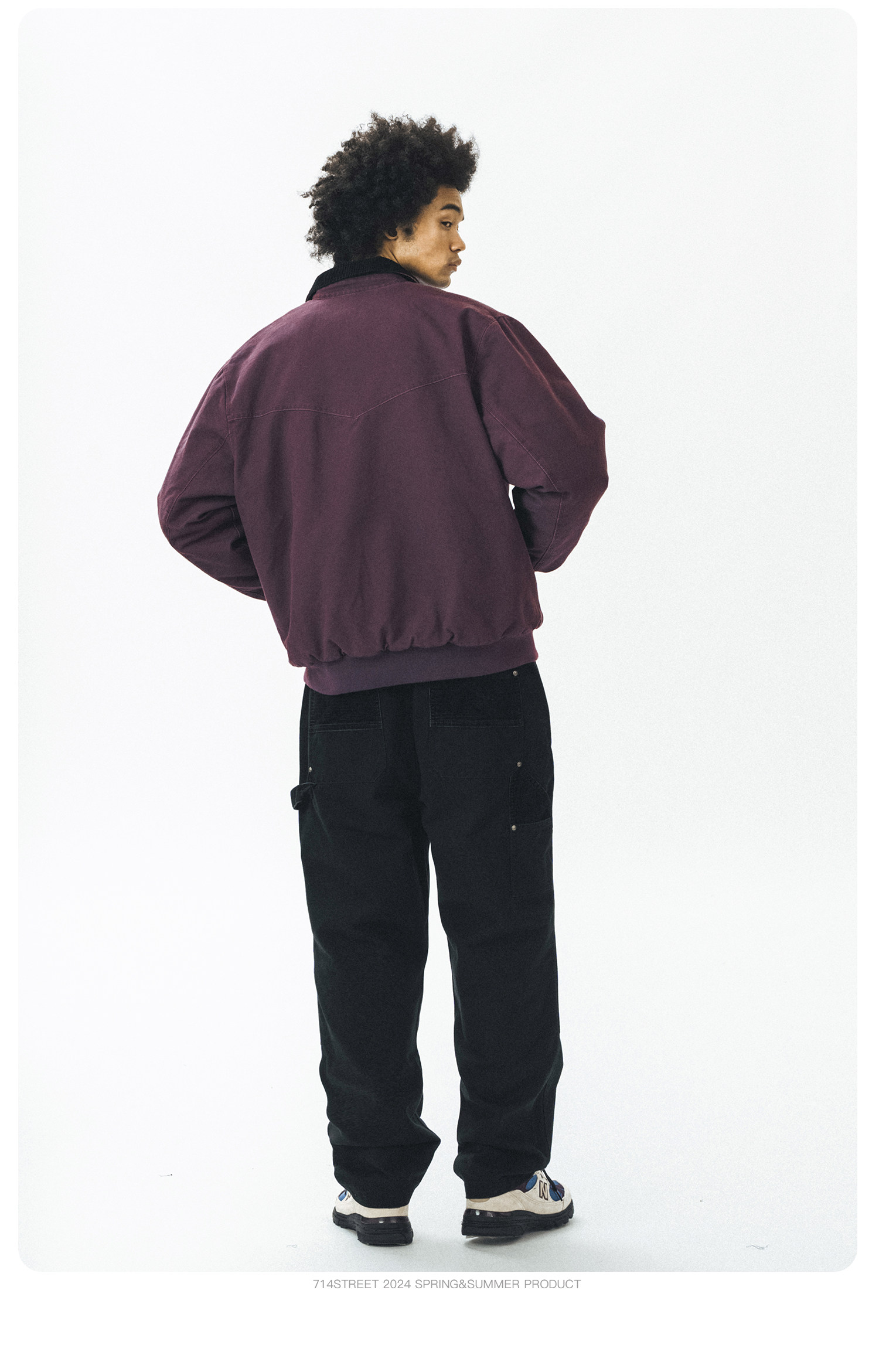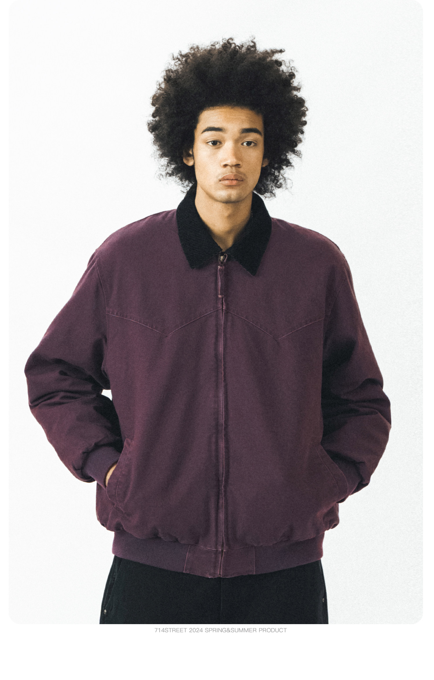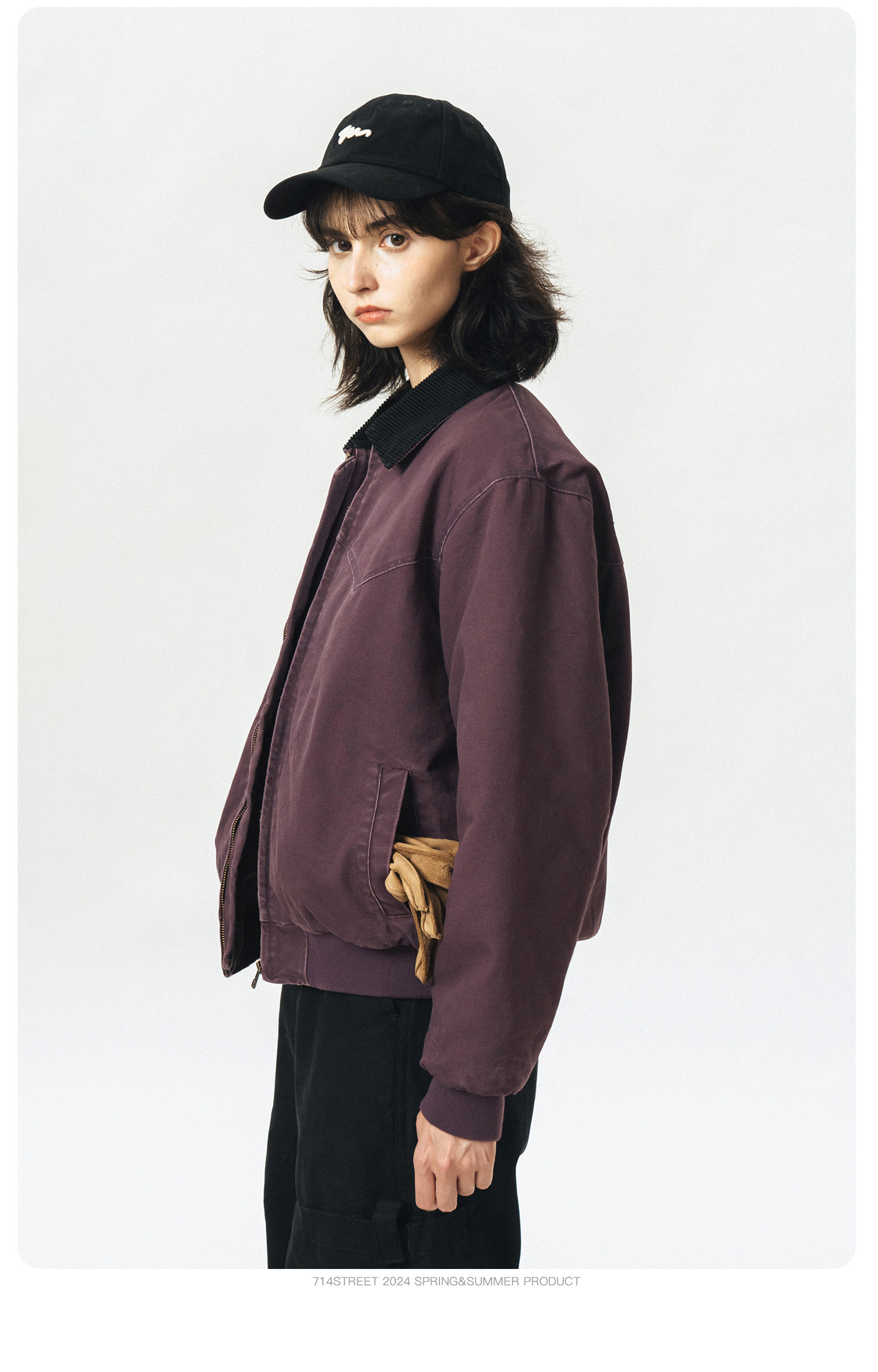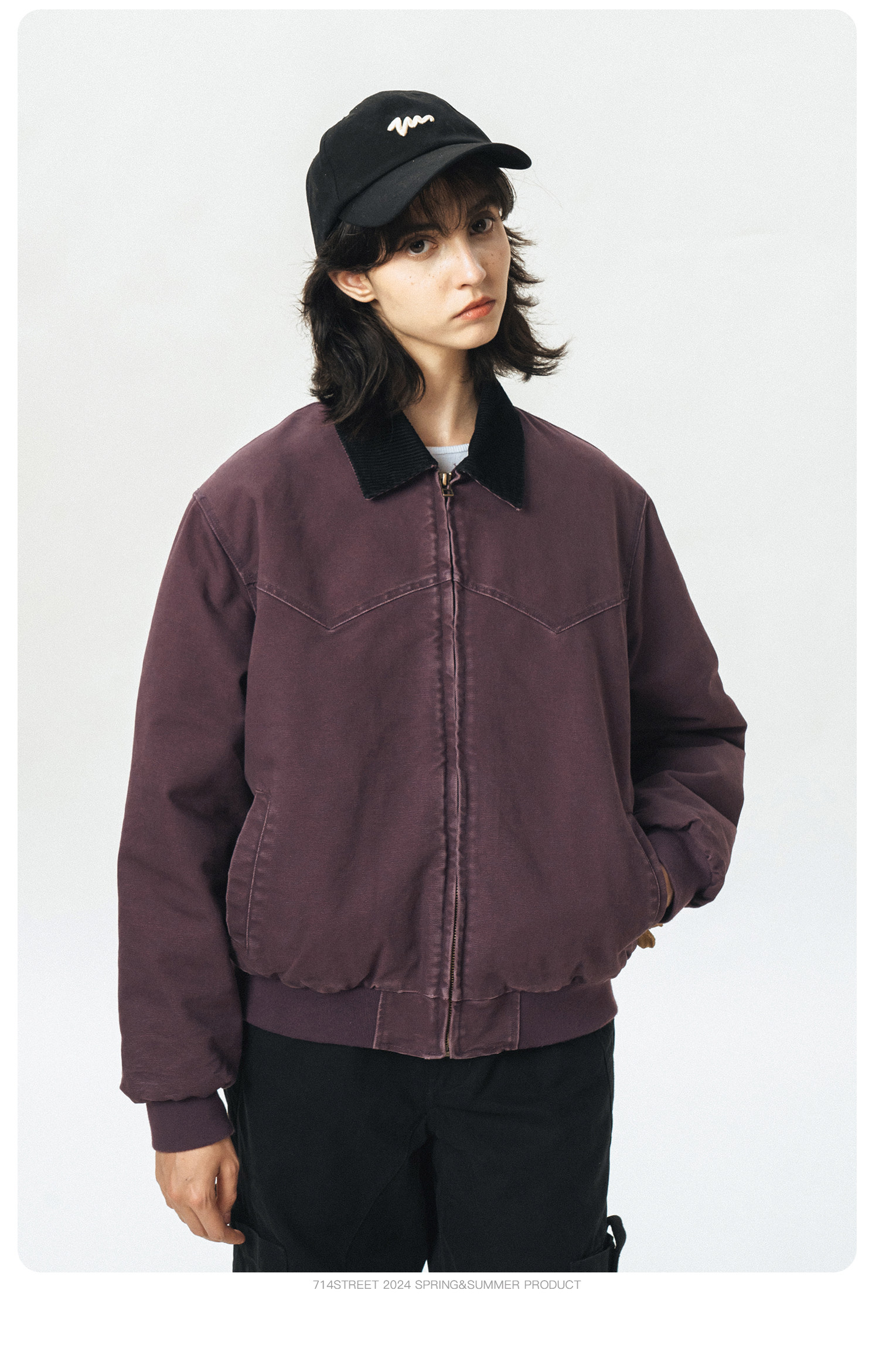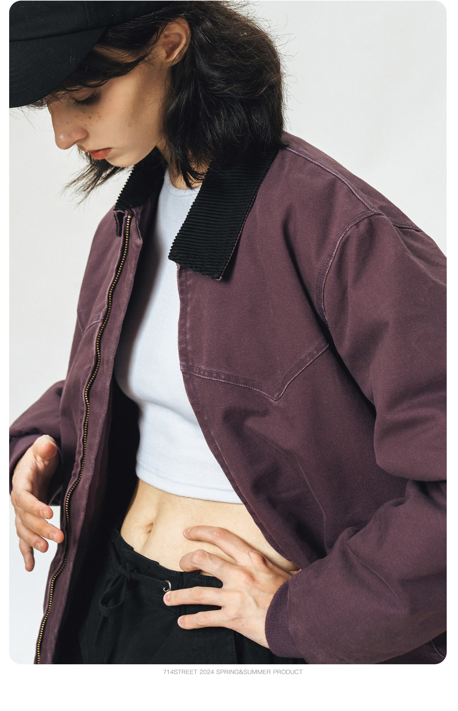714Street American Workwear Short Jacket for Men and Women, National Trendy Brand, Autumn and Winter Purple Cotton Jacket, Retro Detroit Jacket
