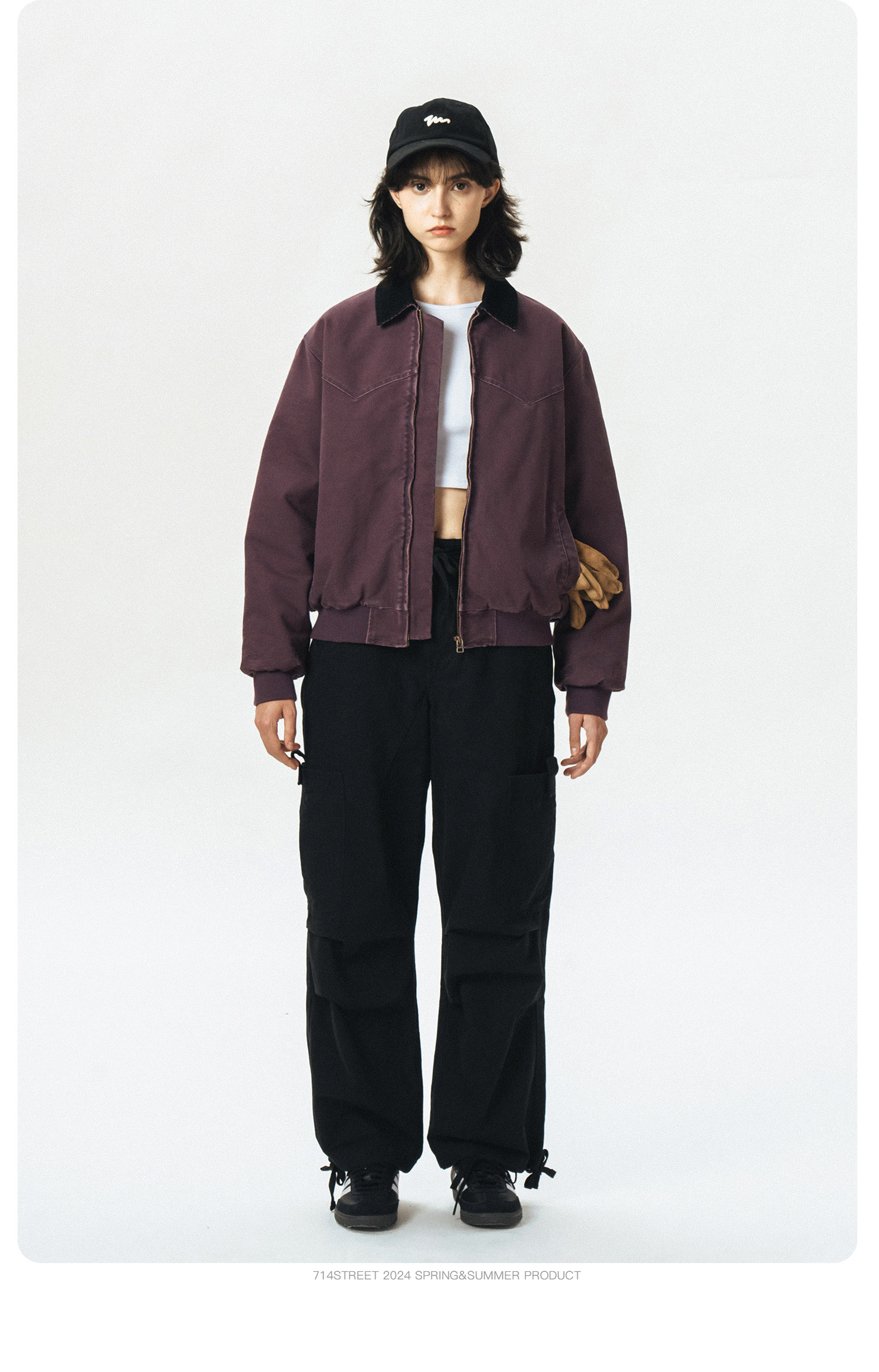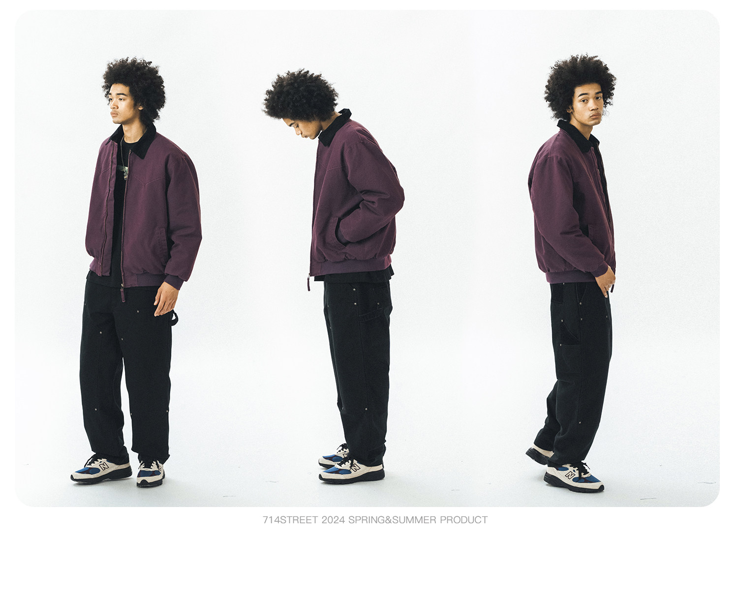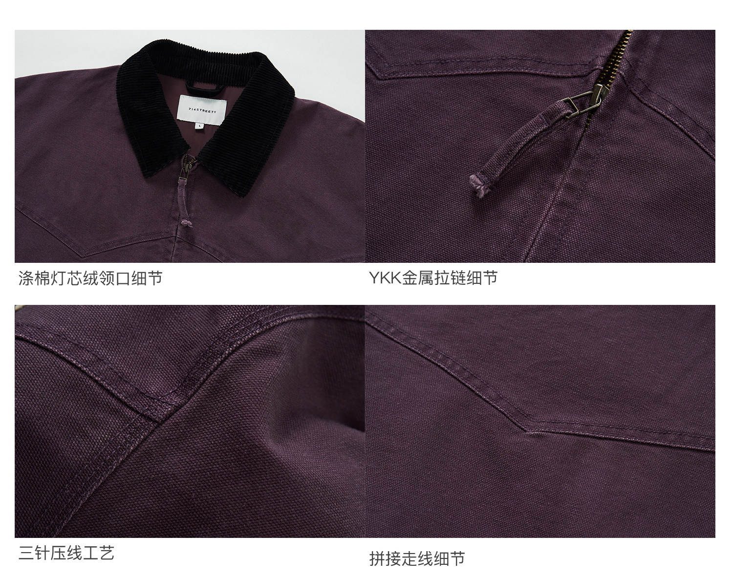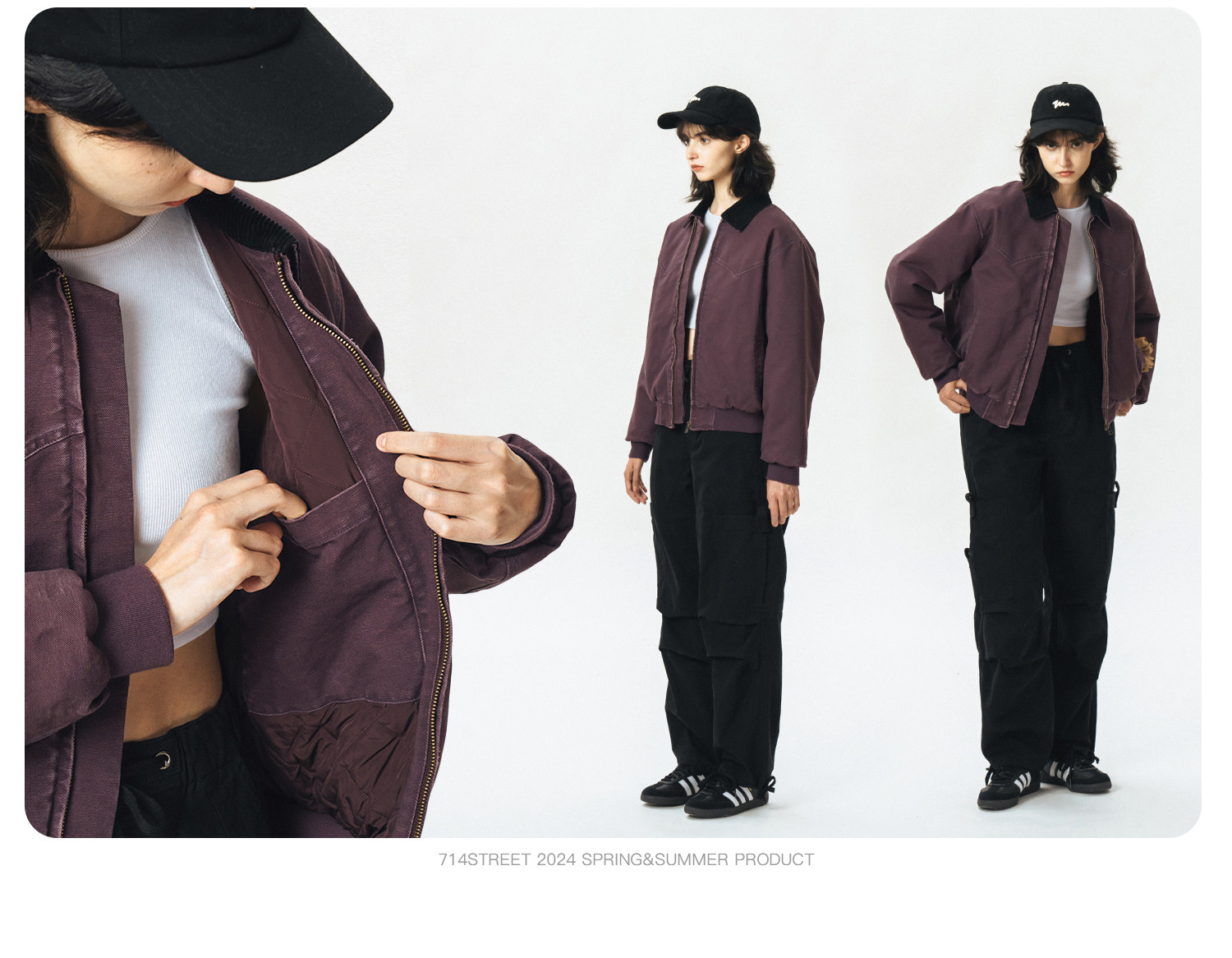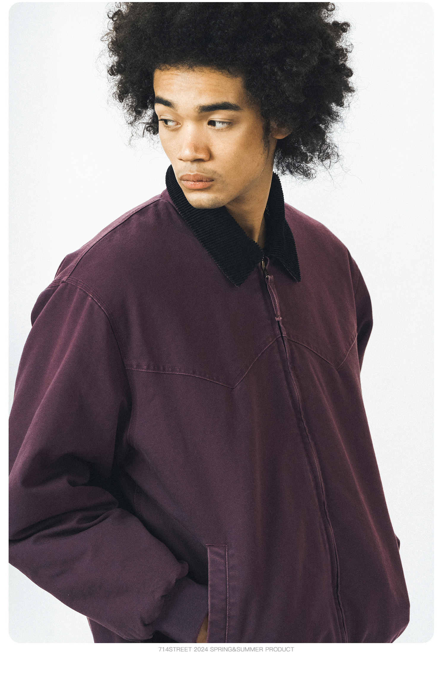 714Street American Workwear Short Jacket for Men and Women, National Trendy Brand, Autumn and Winter Purple Cotton Jacket, Retro Detroit Jacket