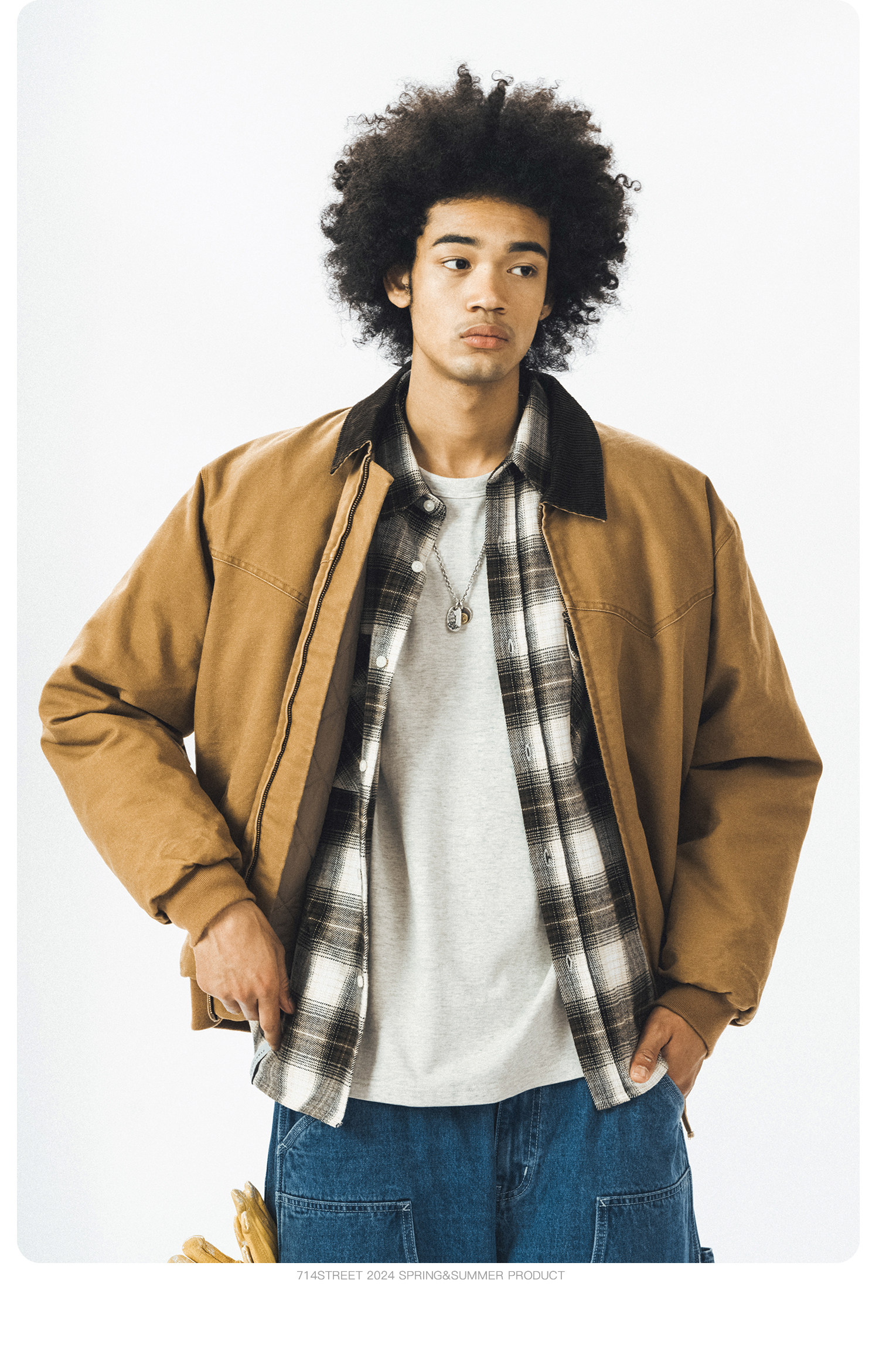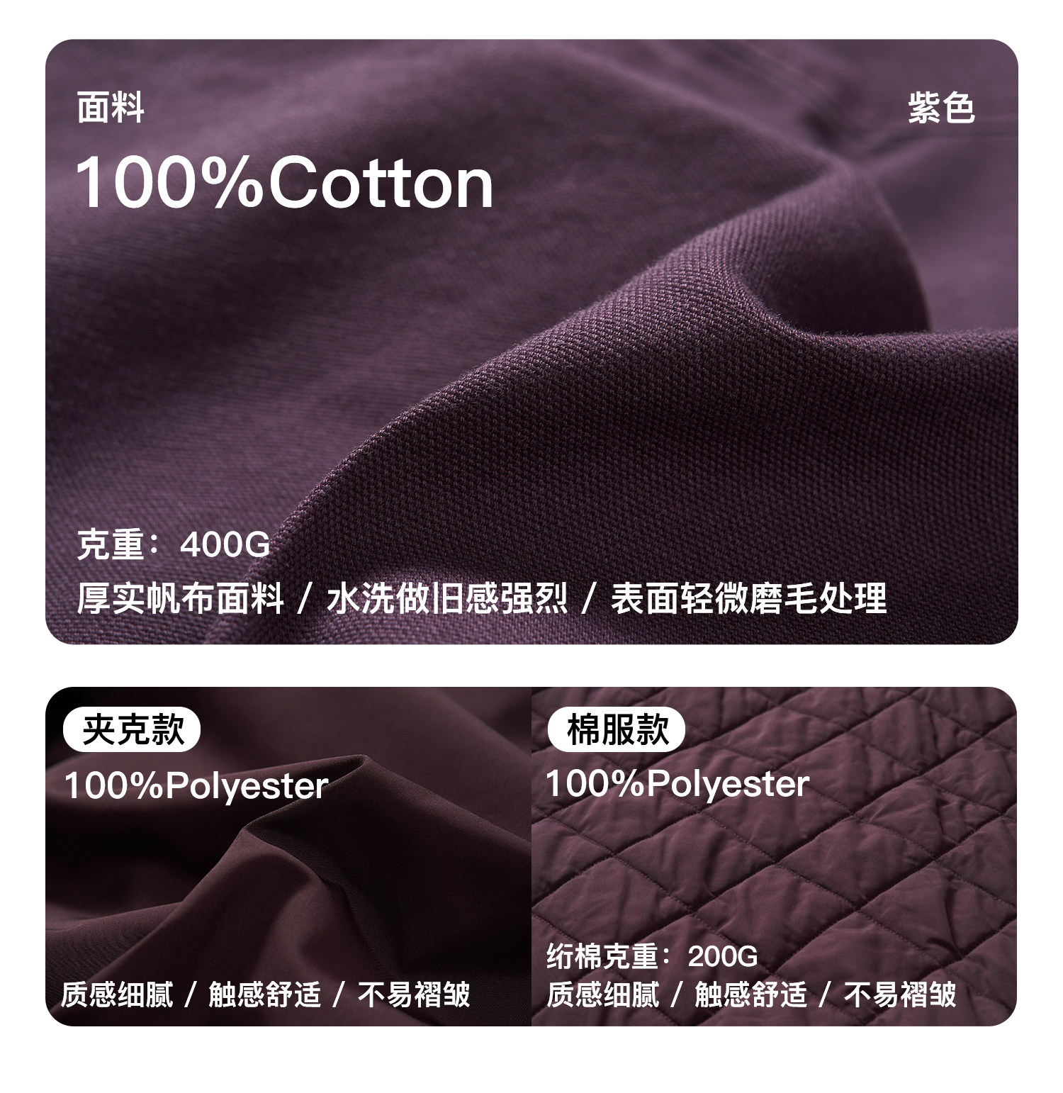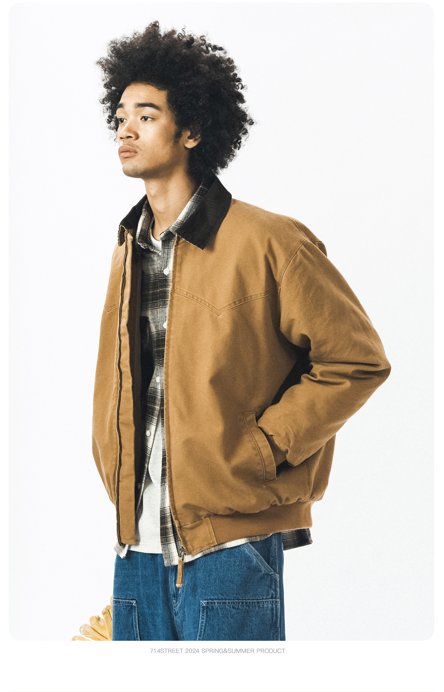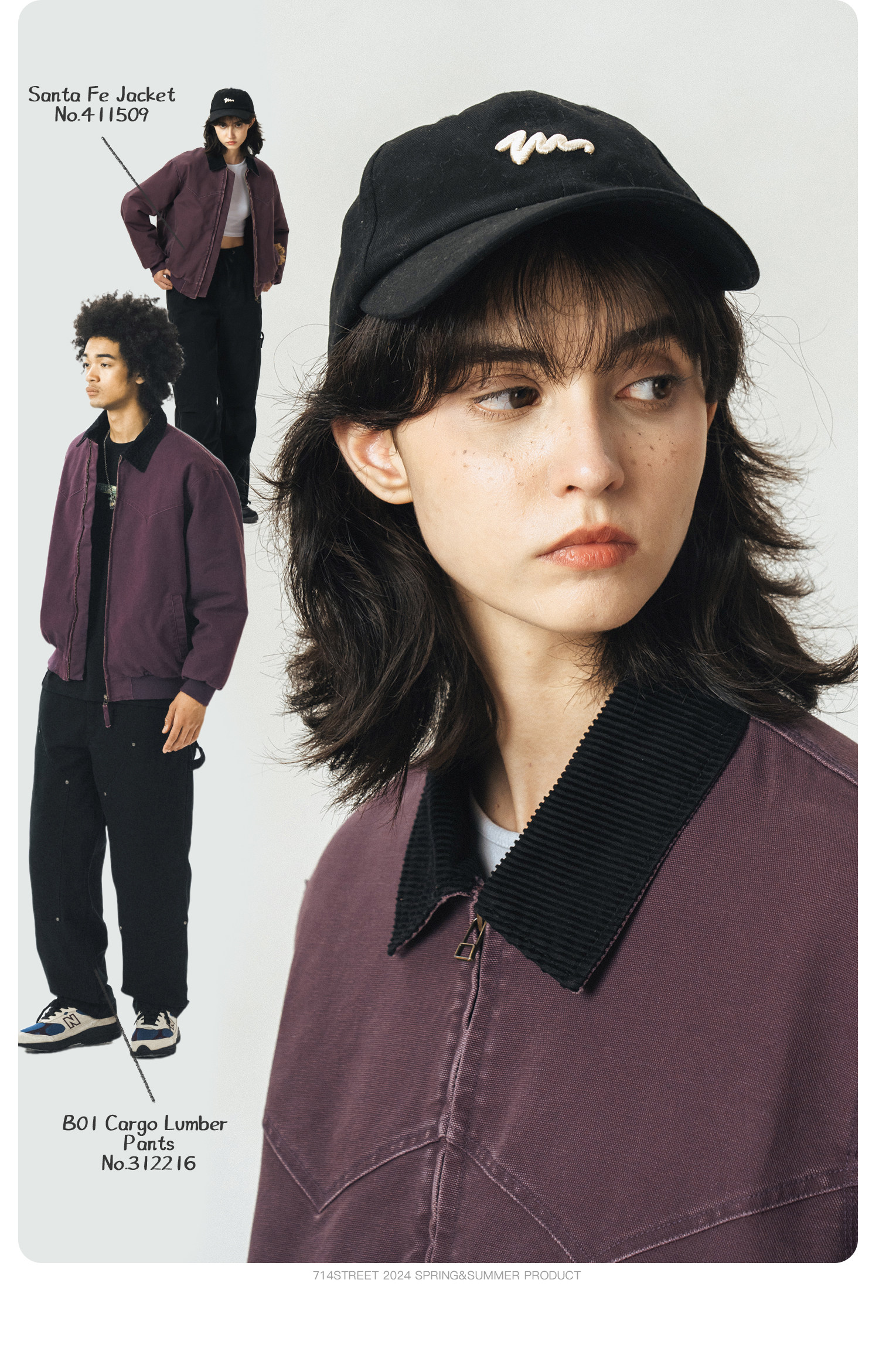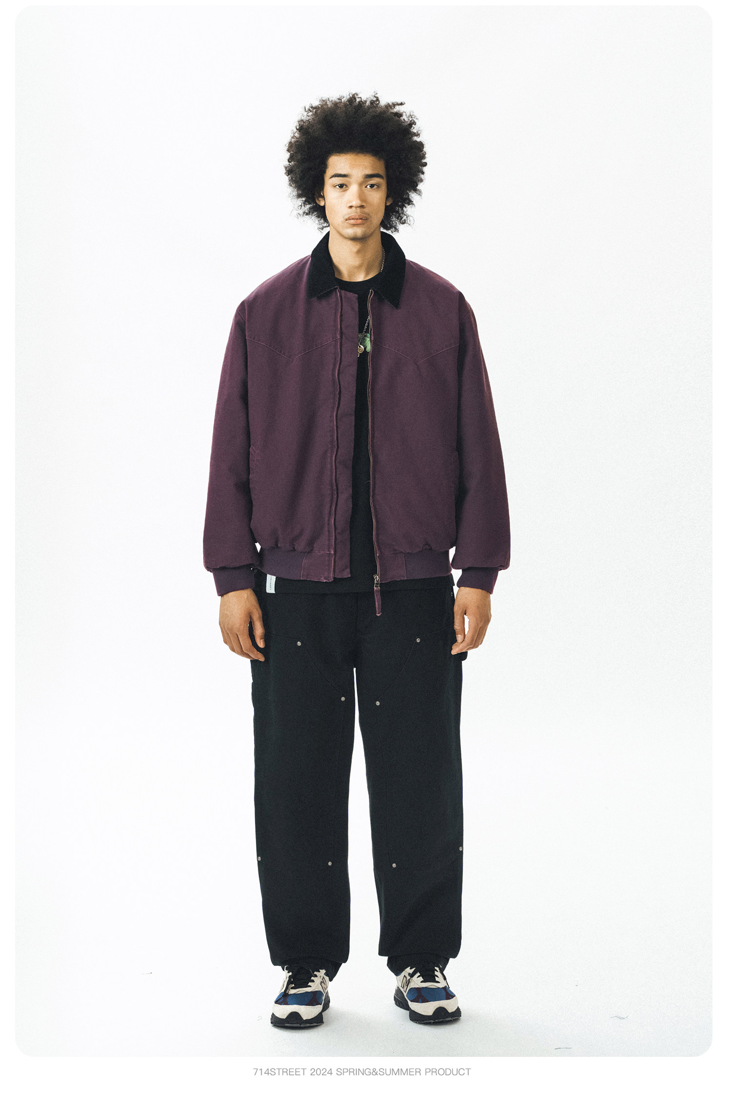 714Street American Workwear Short Jacket for Men and Women, National Trendy Brand, Autumn and Winter Purple Cotton Jacket, Retro Detroit Jacket