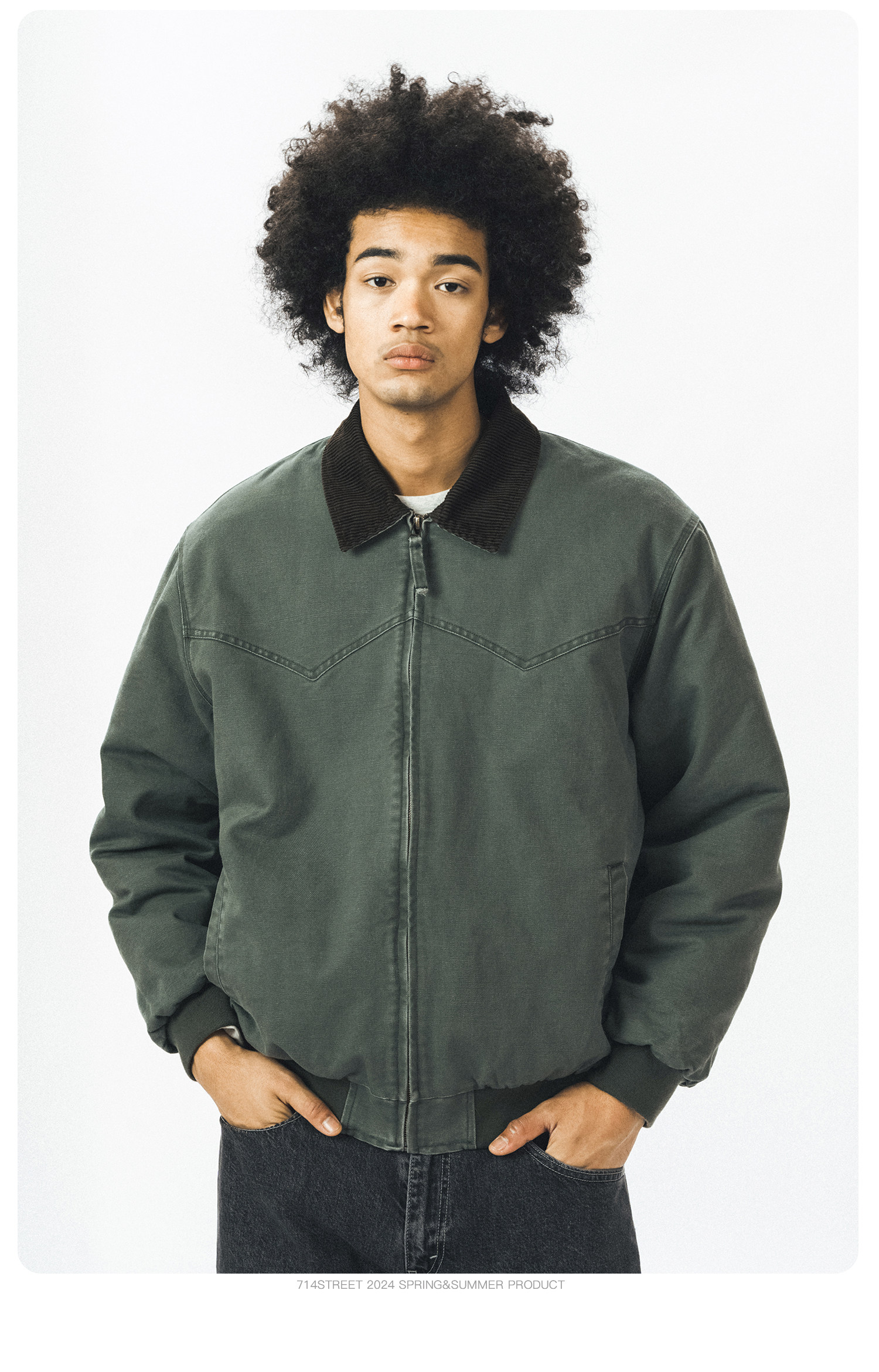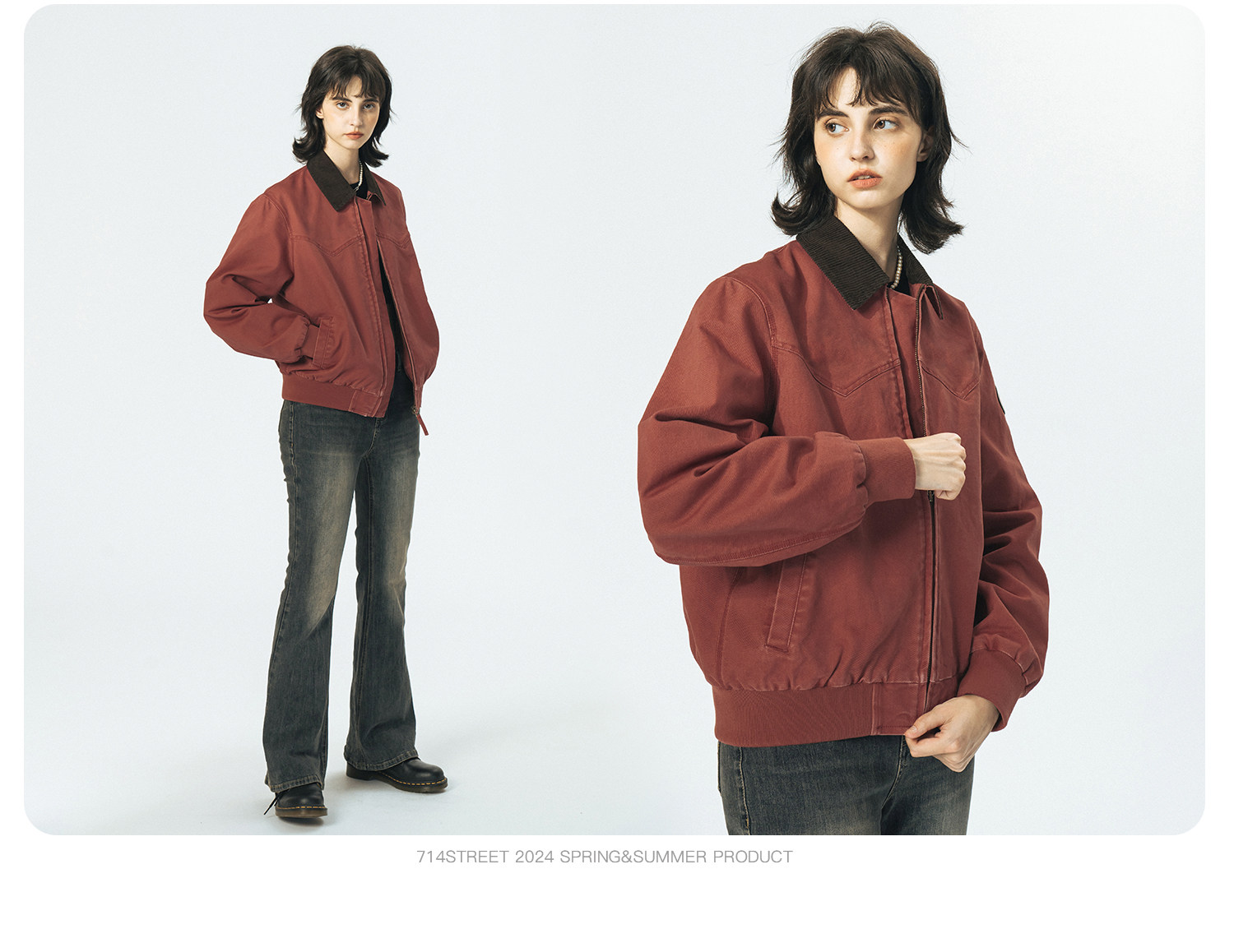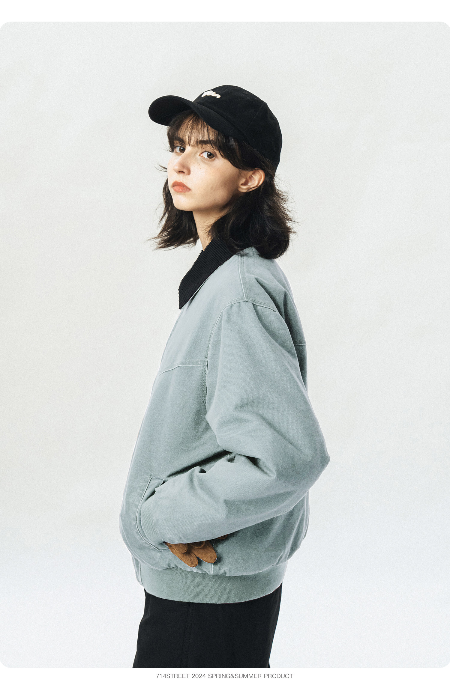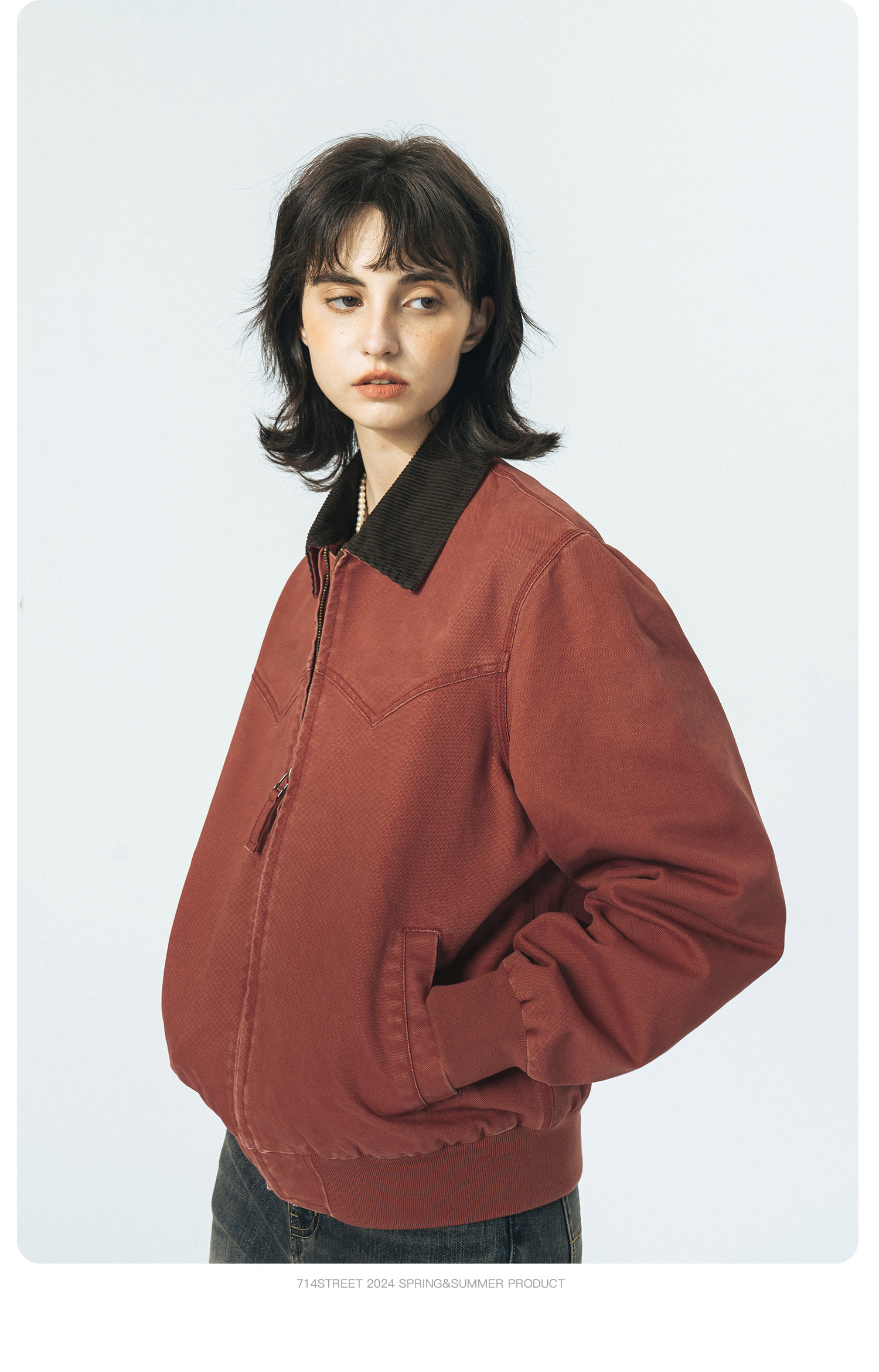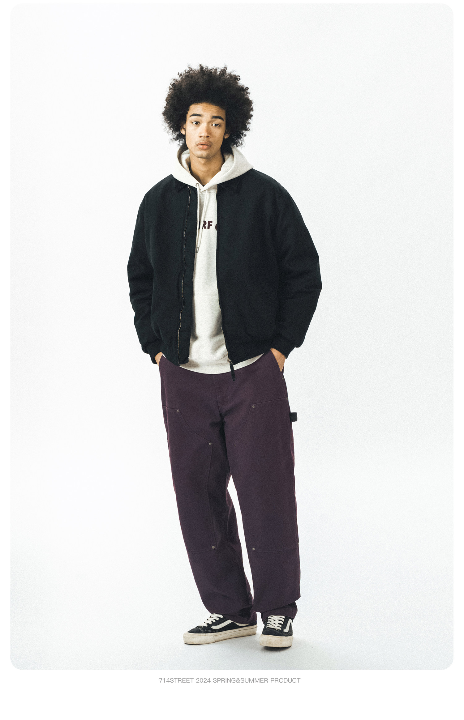 714Street American Workwear Short Jacket for Men and Women, National Trendy Brand, Autumn and Winter Purple Cotton Jacket, Retro Detroit Jacket