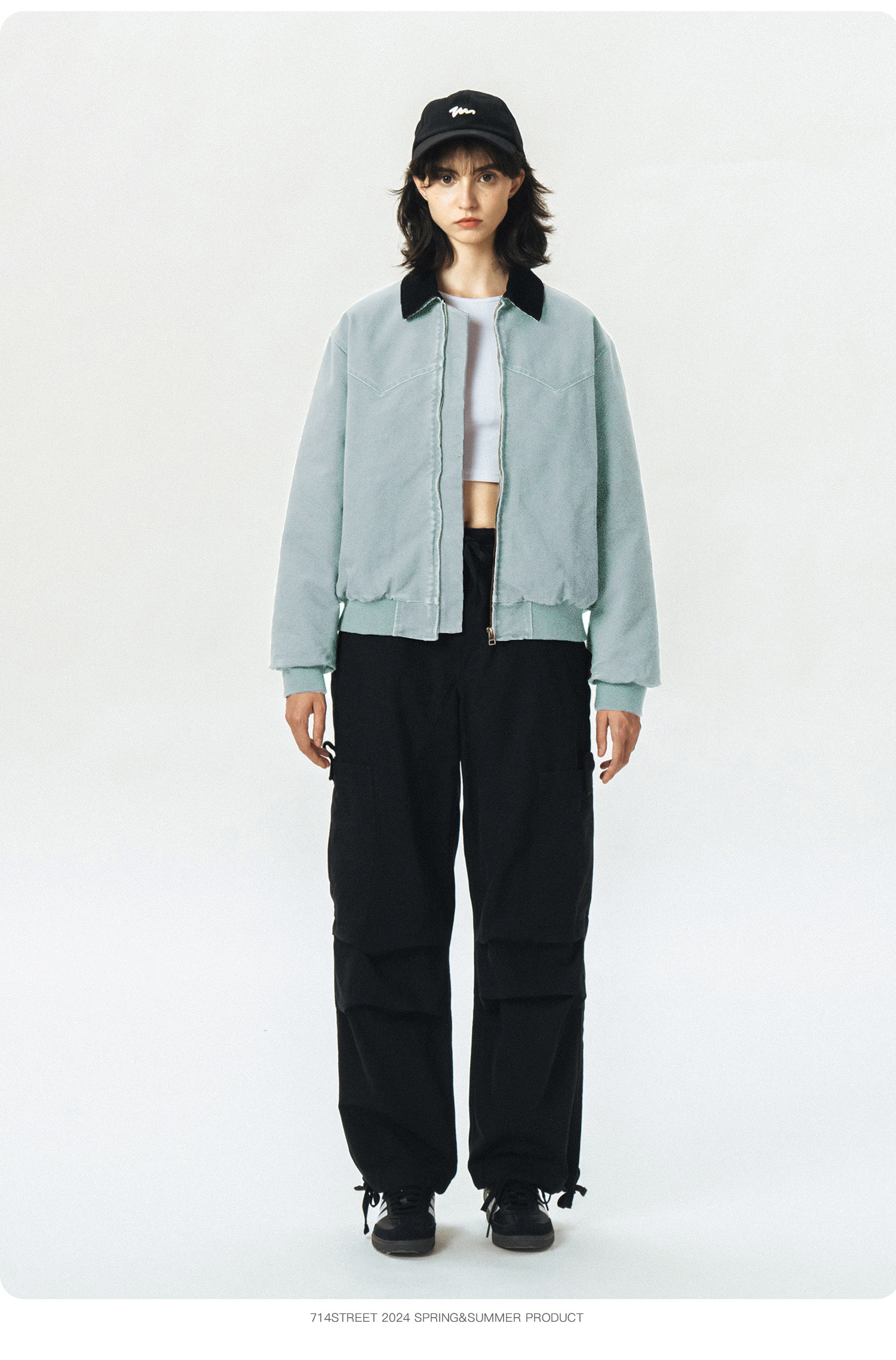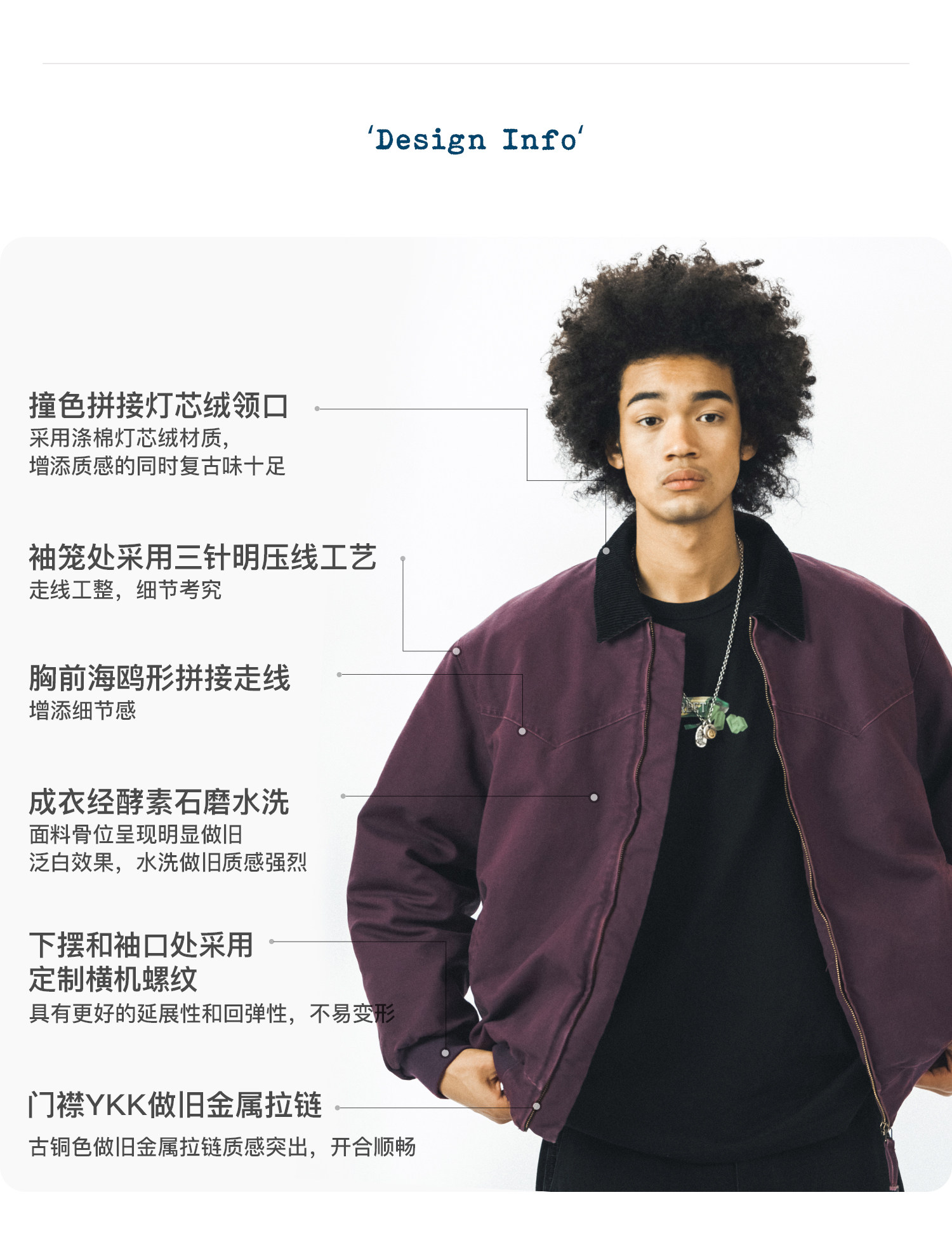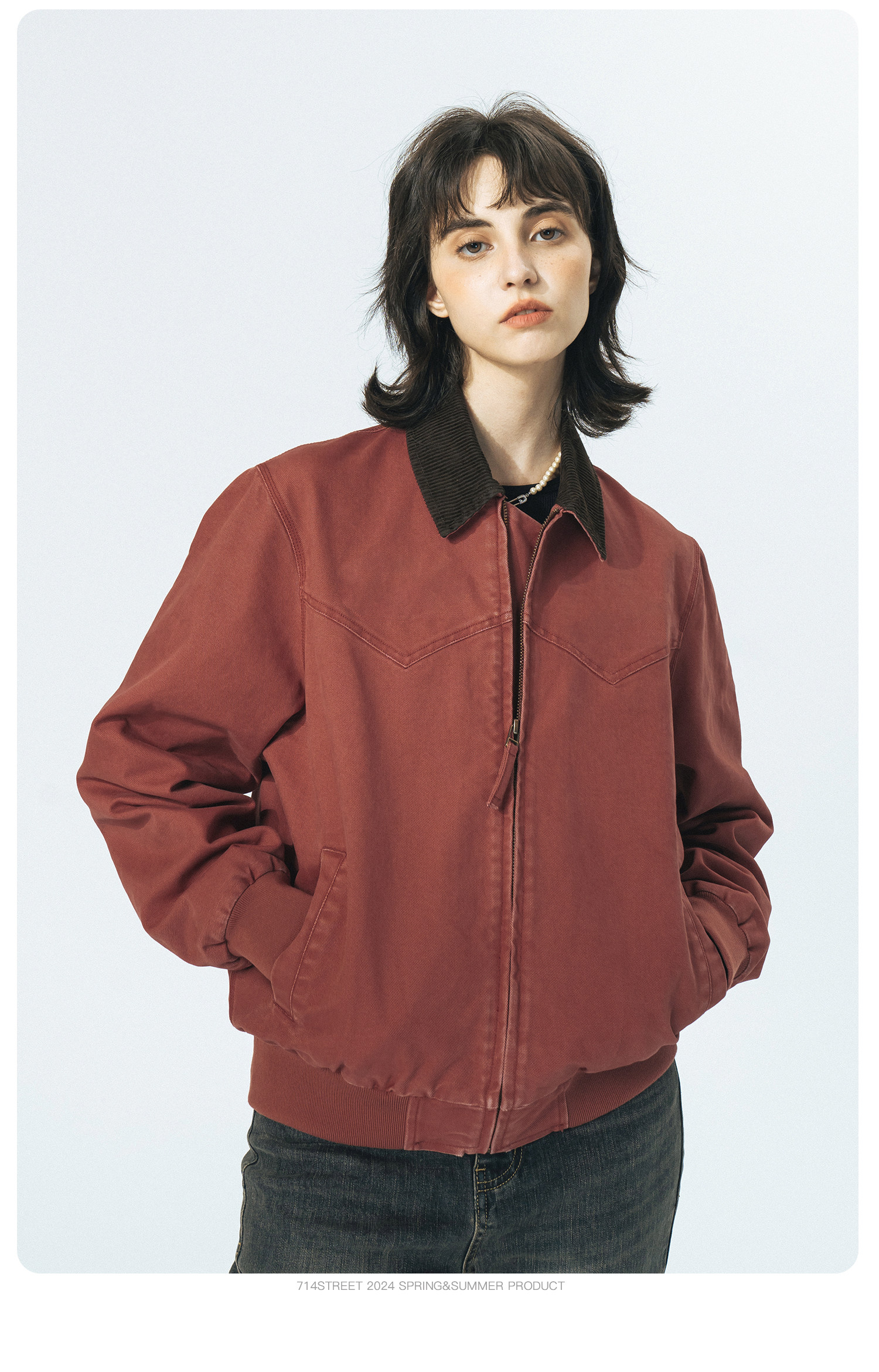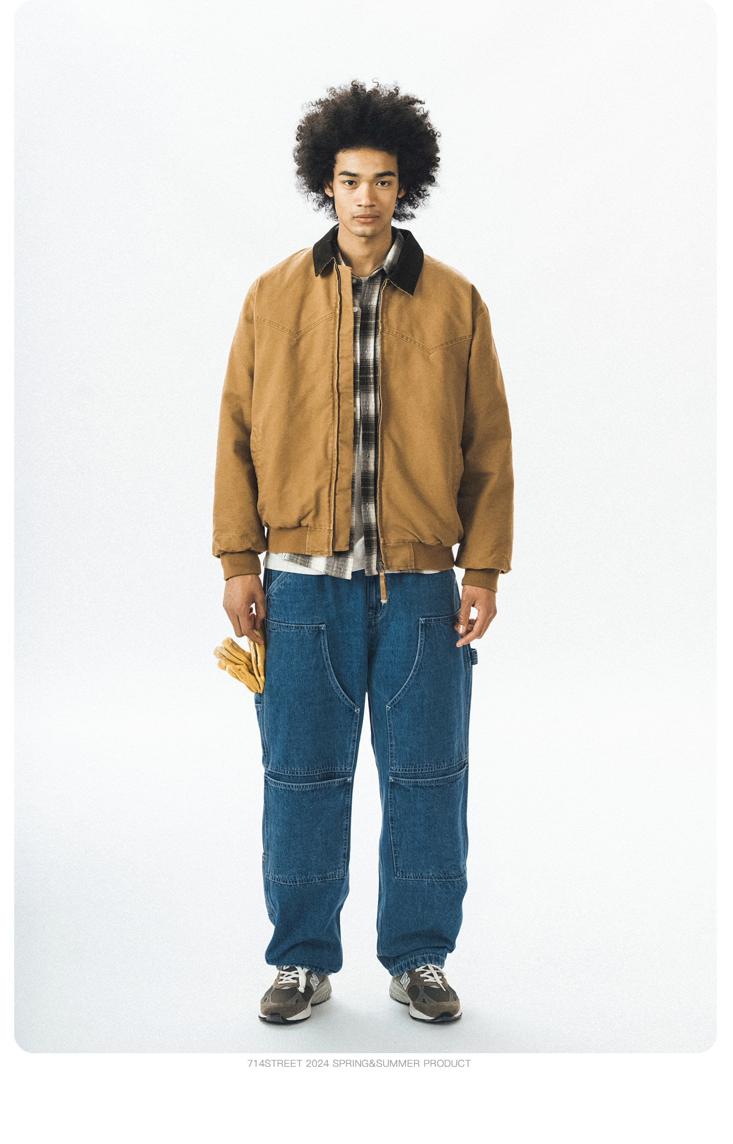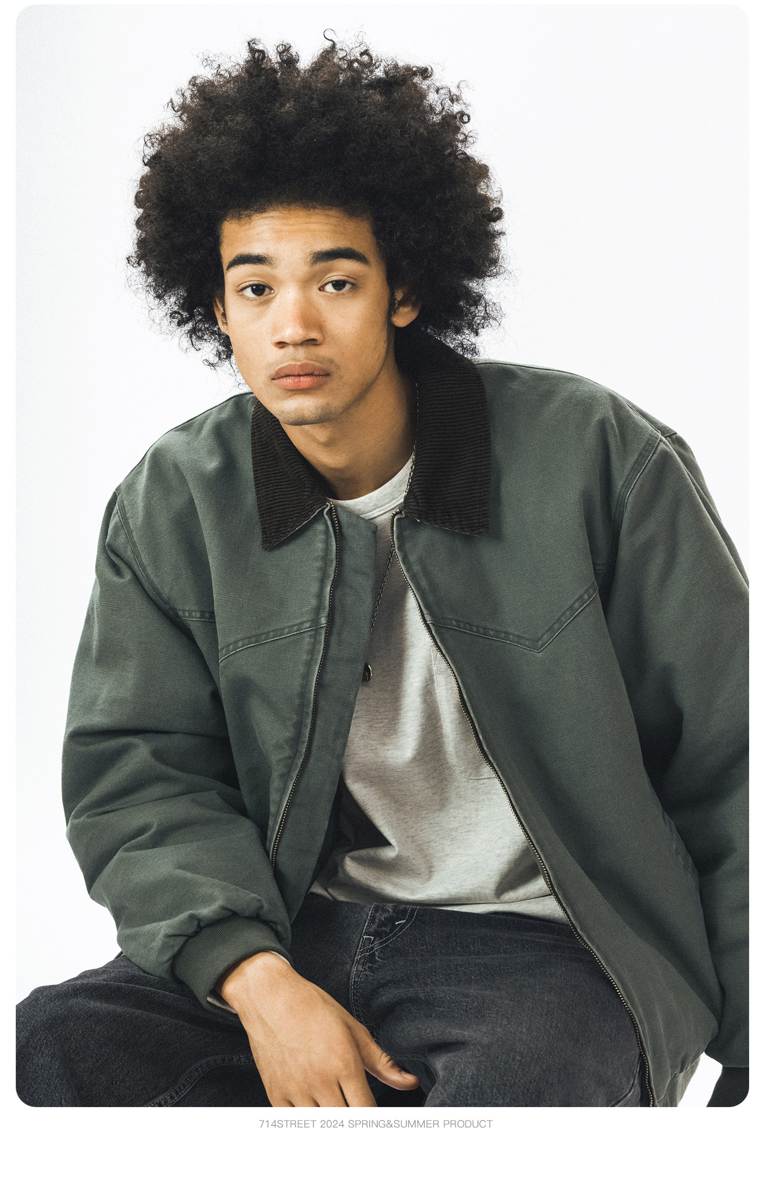 714Street American Workwear Short Jacket for Men and Women, National Trendy Brand, Autumn and Winter Purple Cotton Jacket, Retro Detroit Jacket