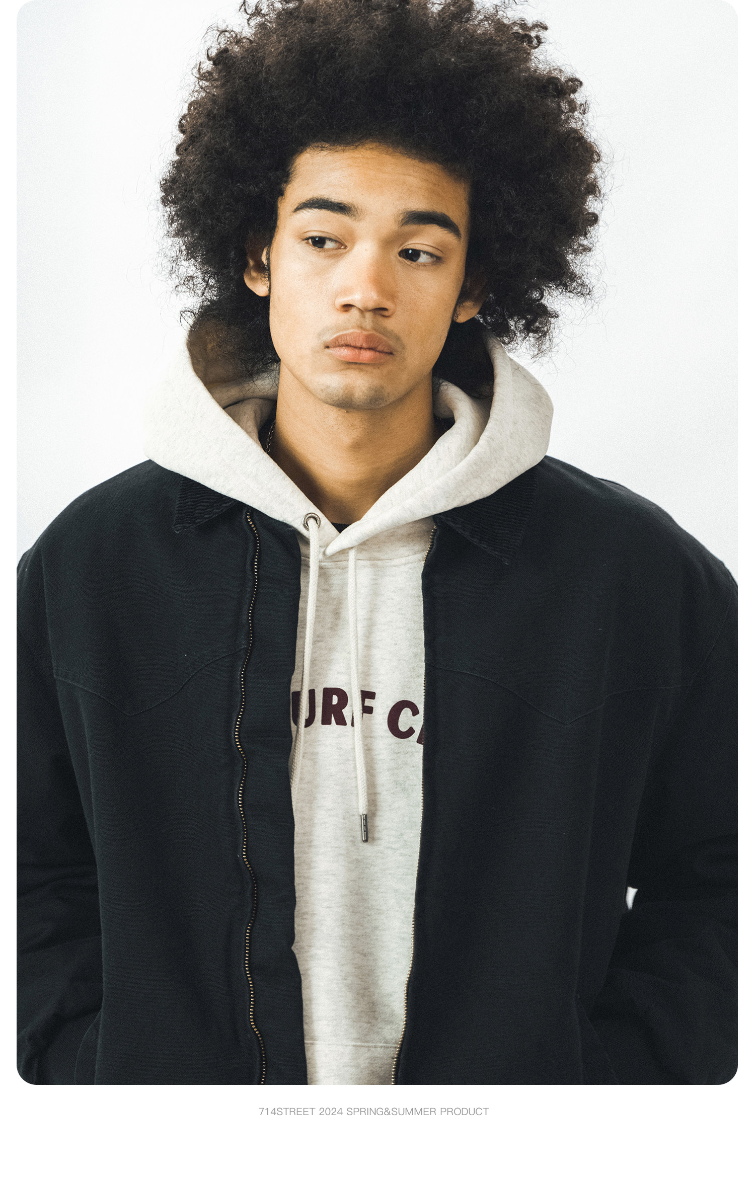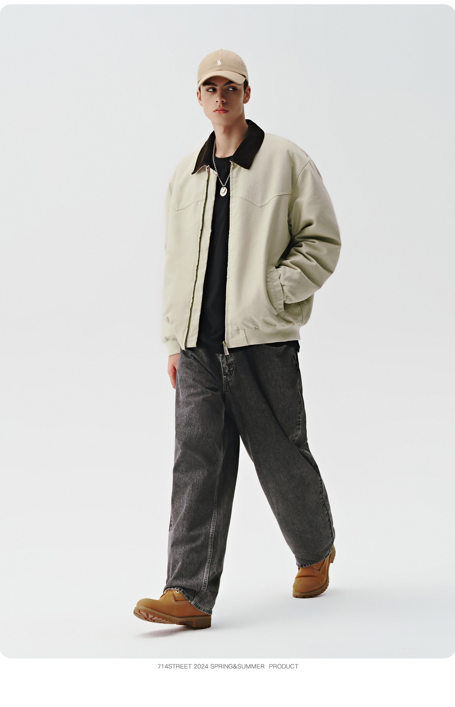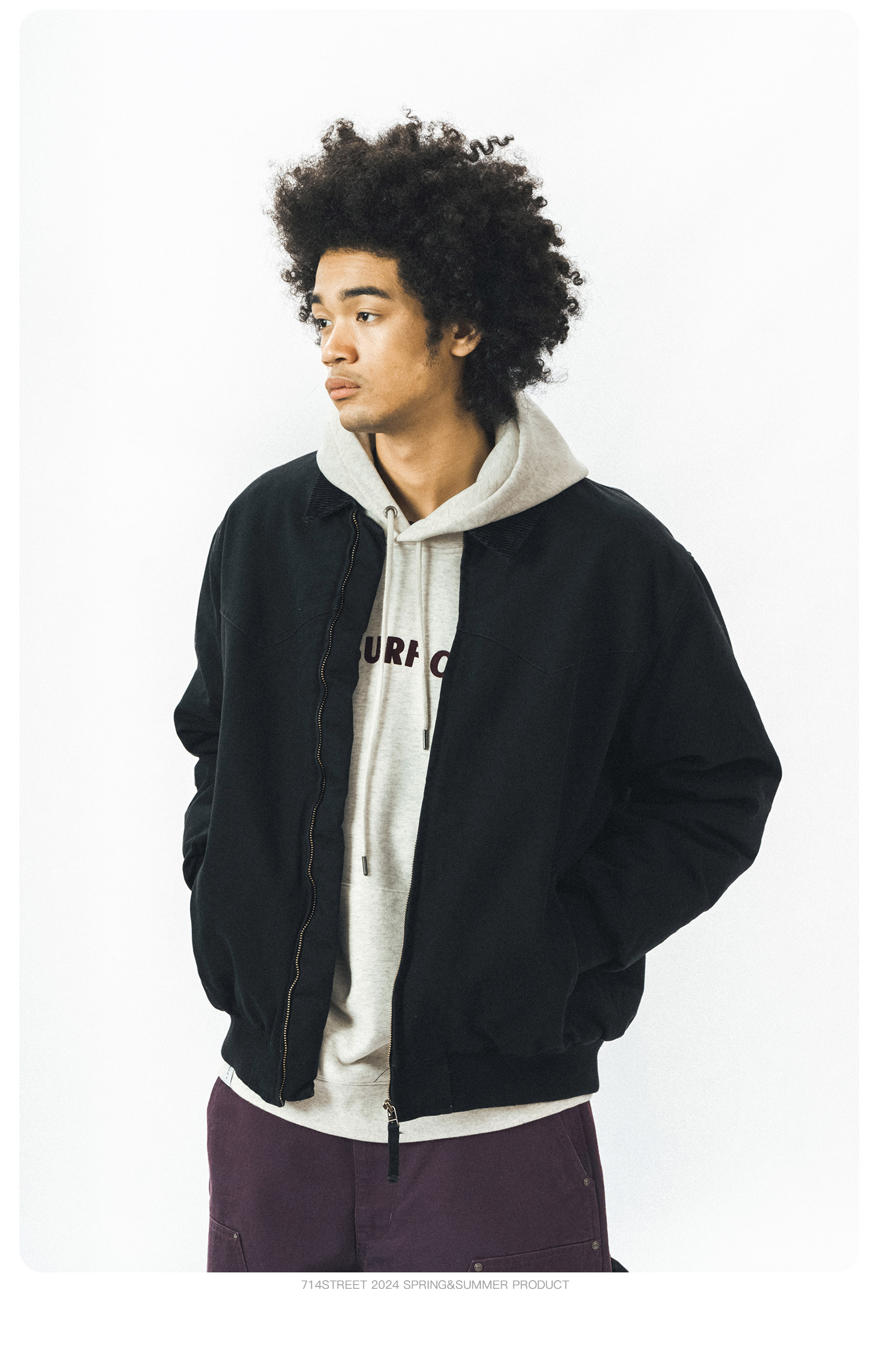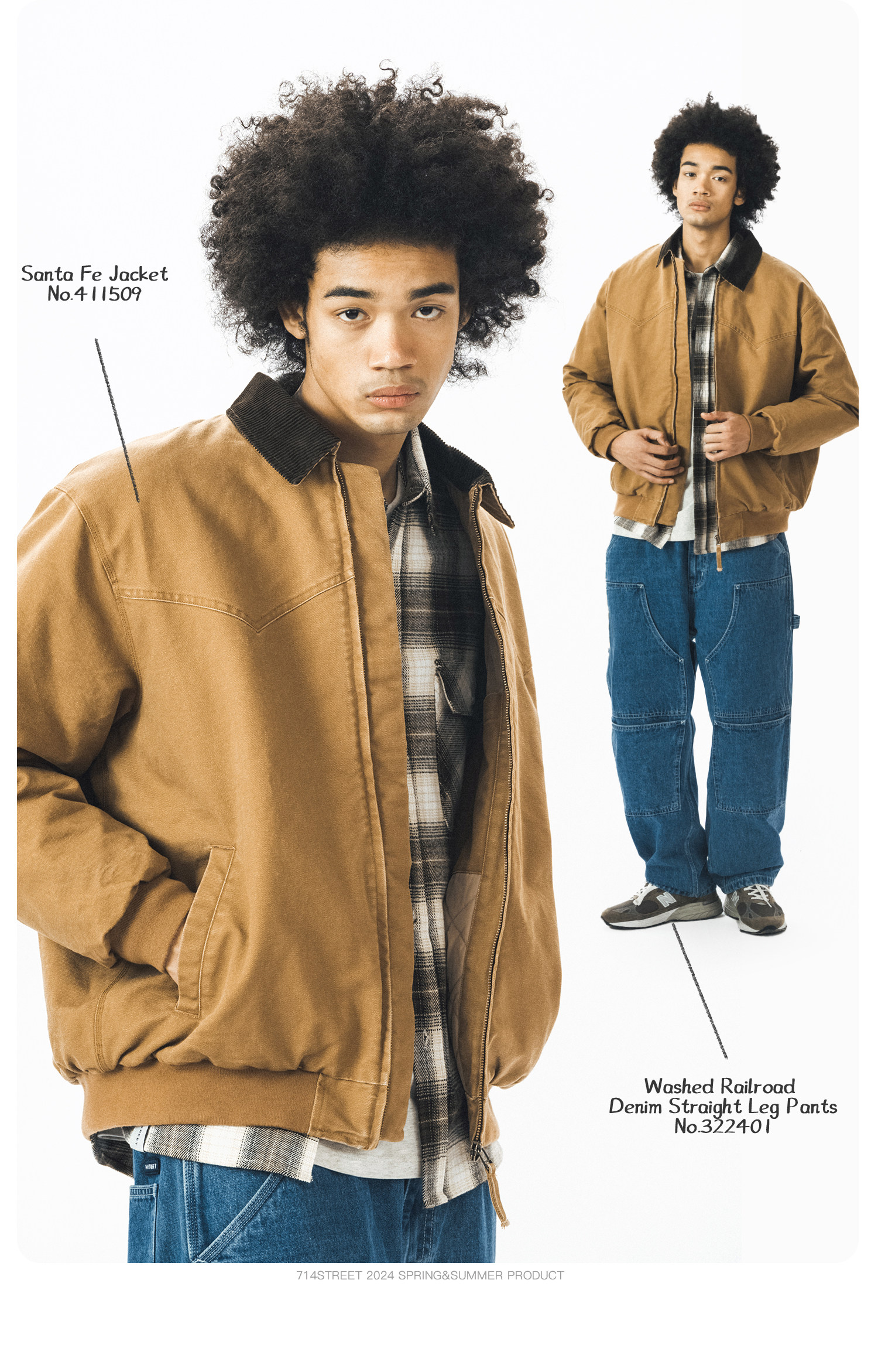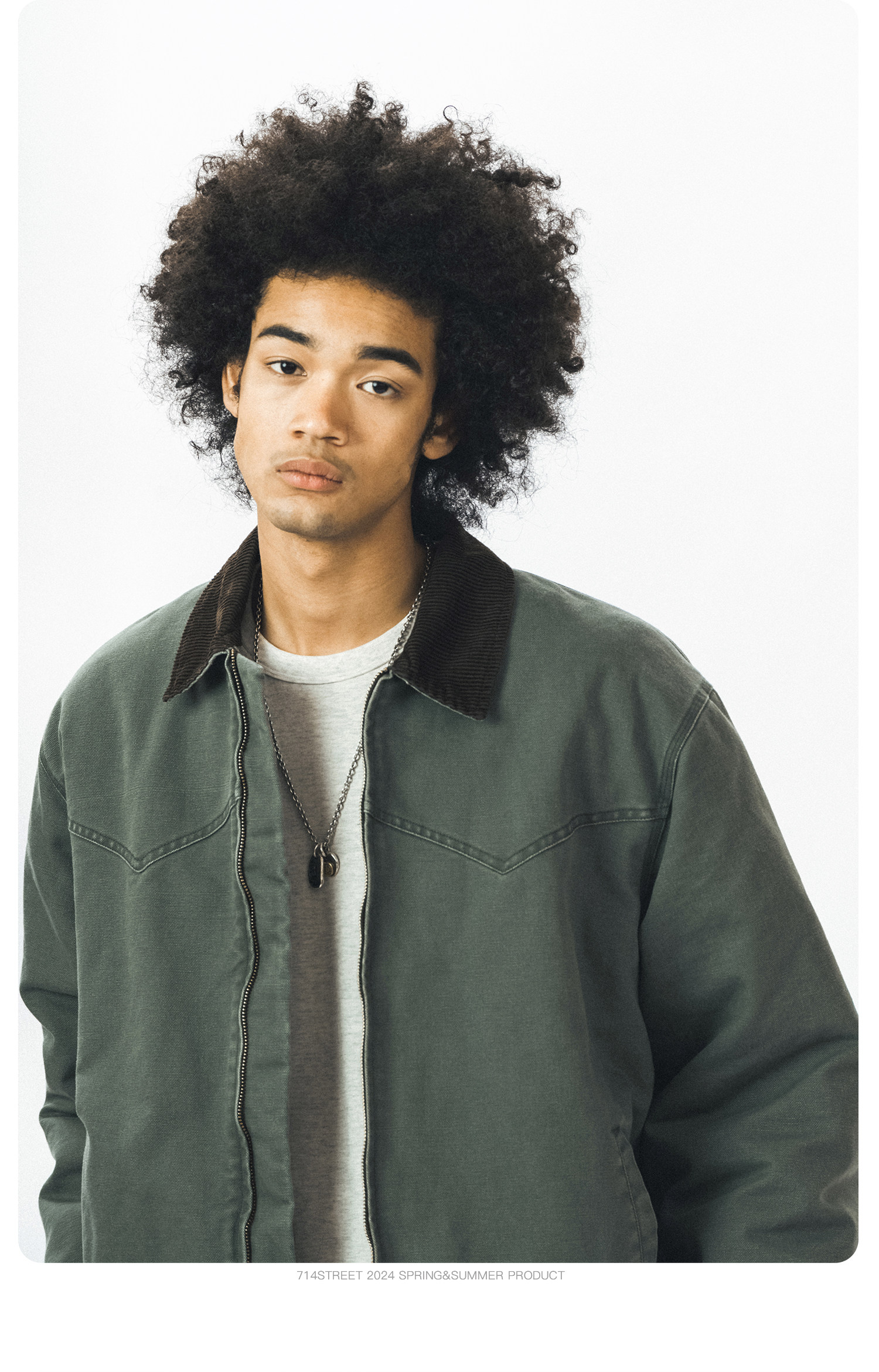 714Street American Workwear Short Jacket for Men and Women, National Trendy Brand, Autumn and Winter Purple Cotton Jacket, Retro Detroit Jacket