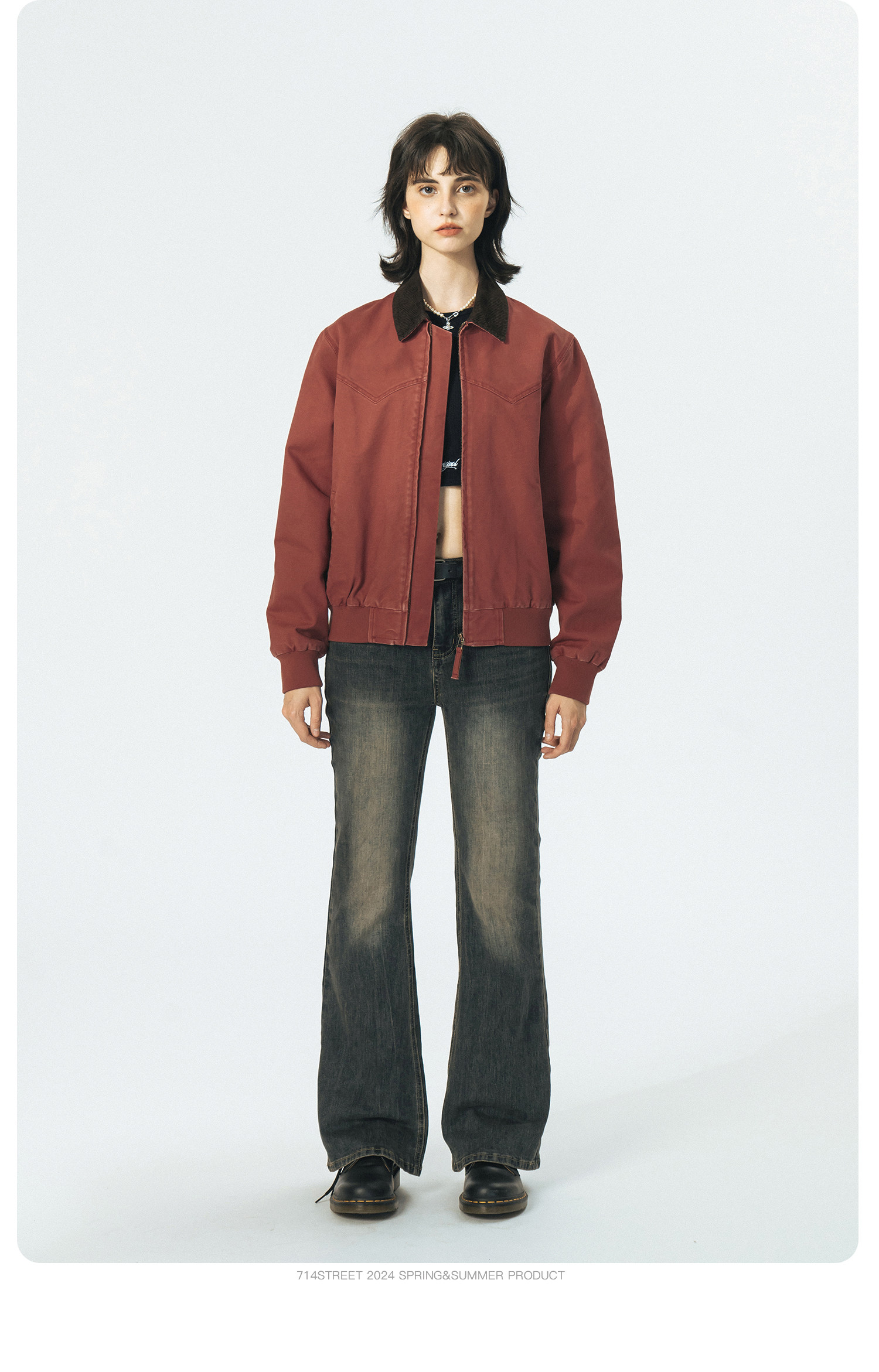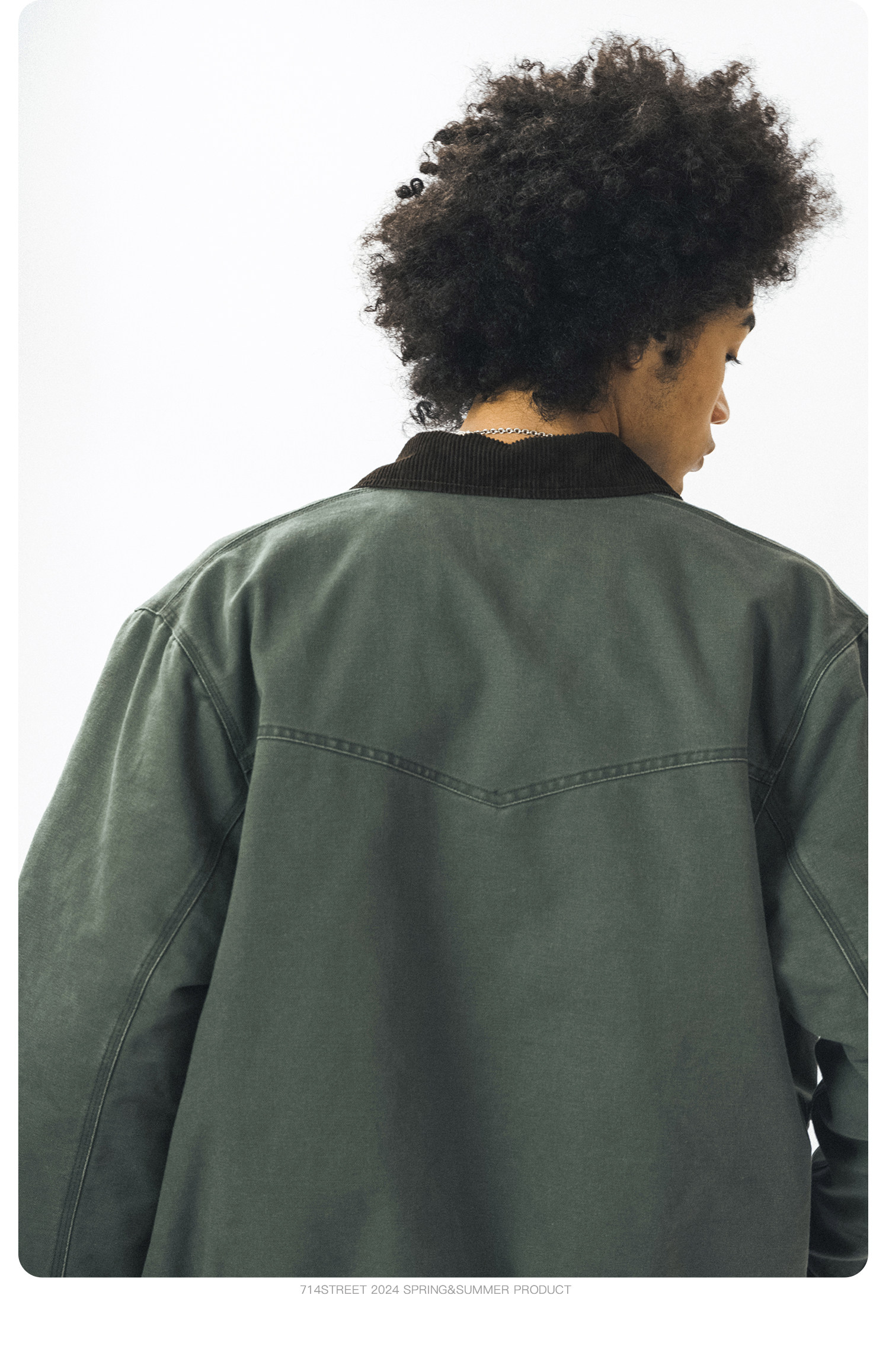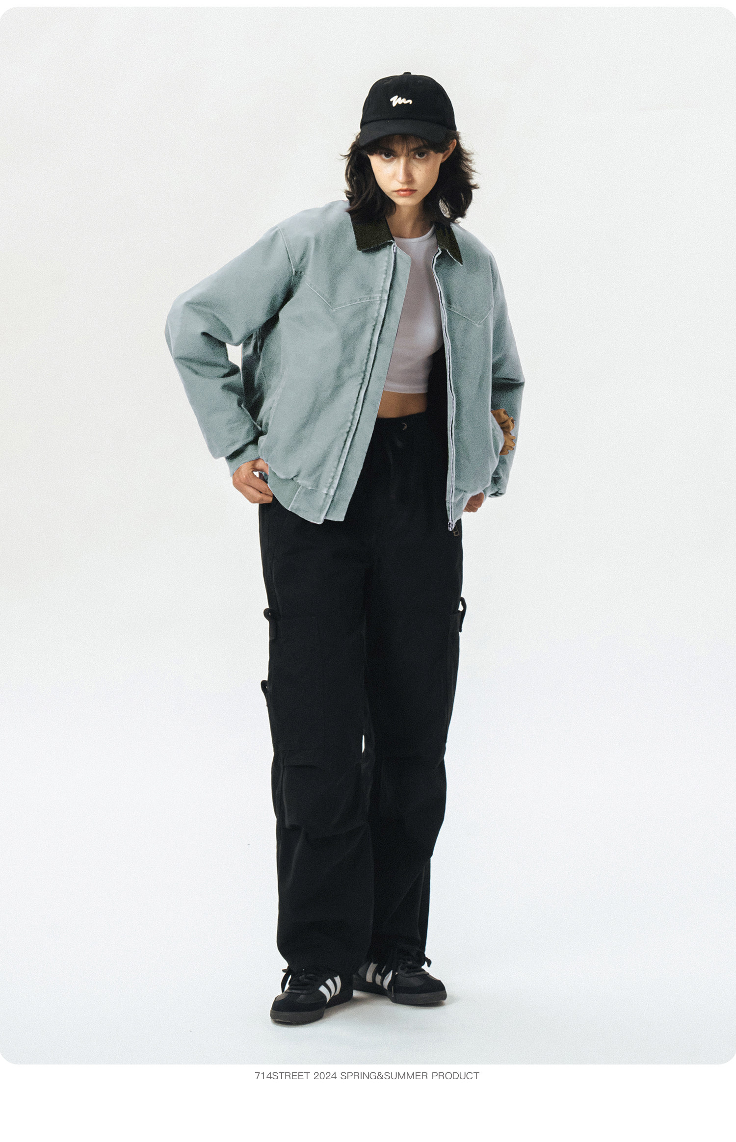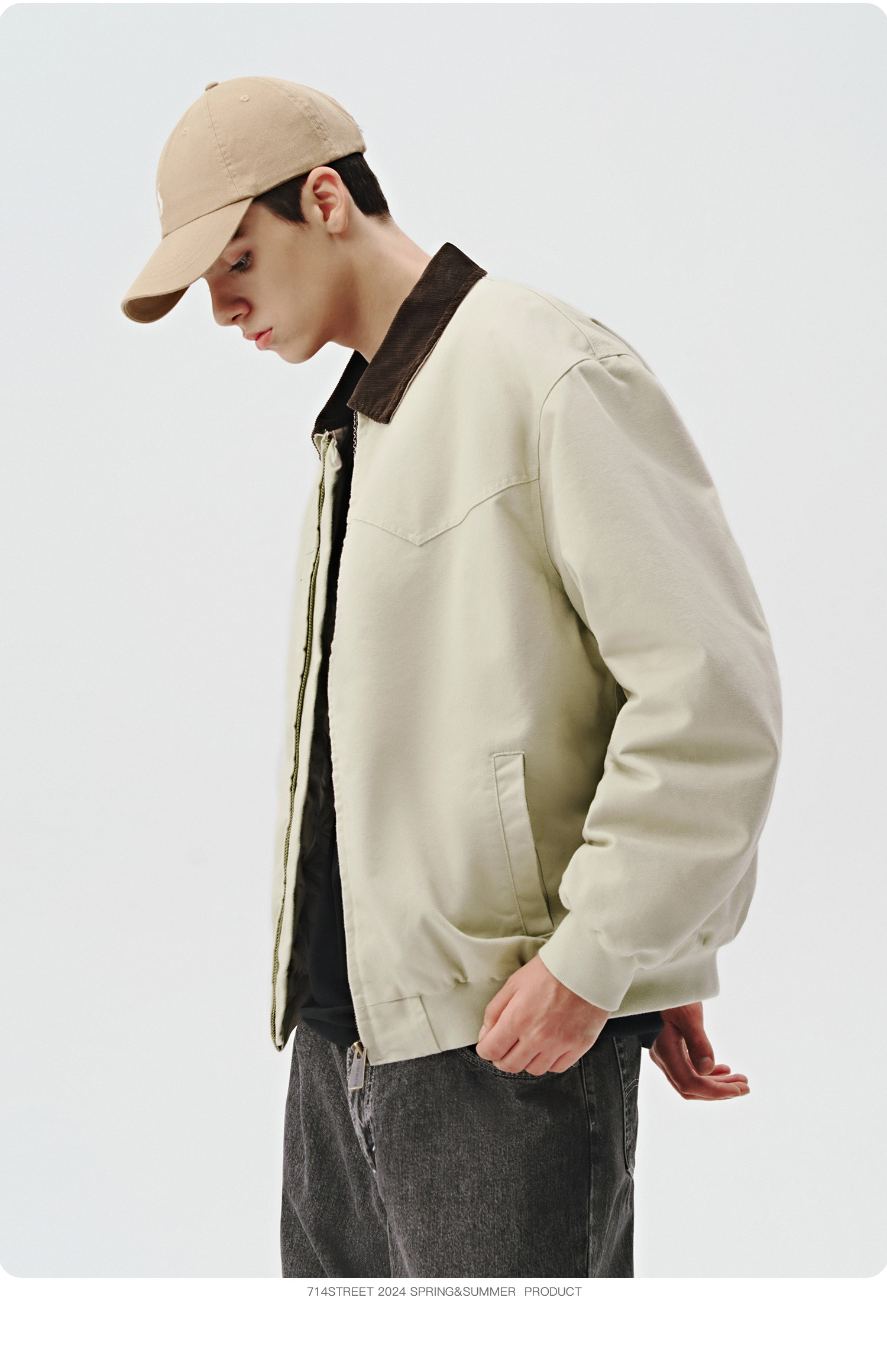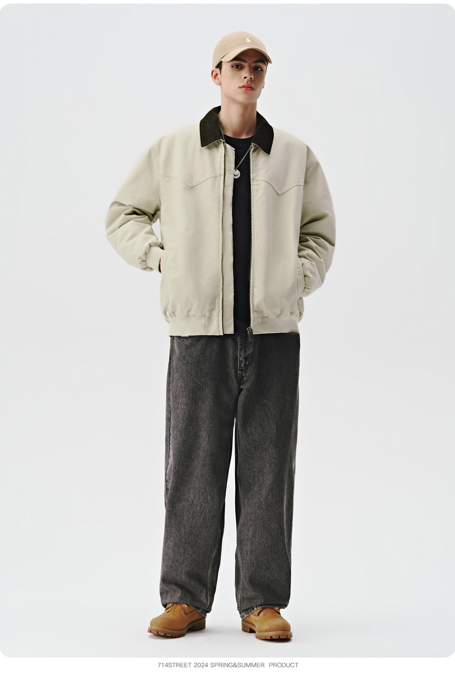 714Street American Workwear Short Jacket for Men and Women, National Trendy Brand, Autumn and Winter Purple Cotton Jacket, Retro Detroit Jacket