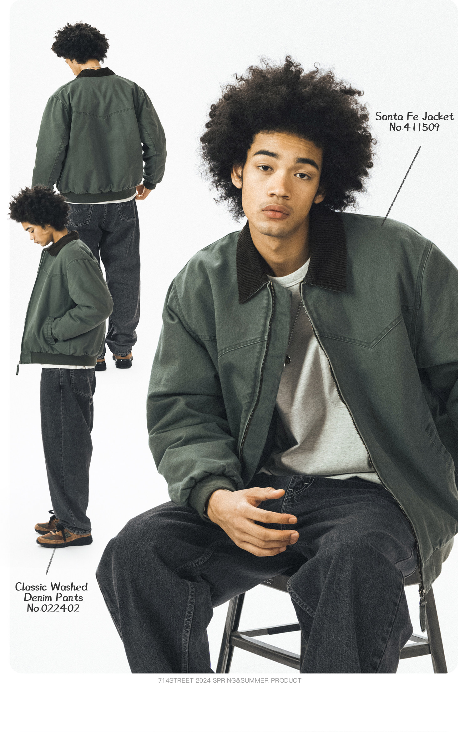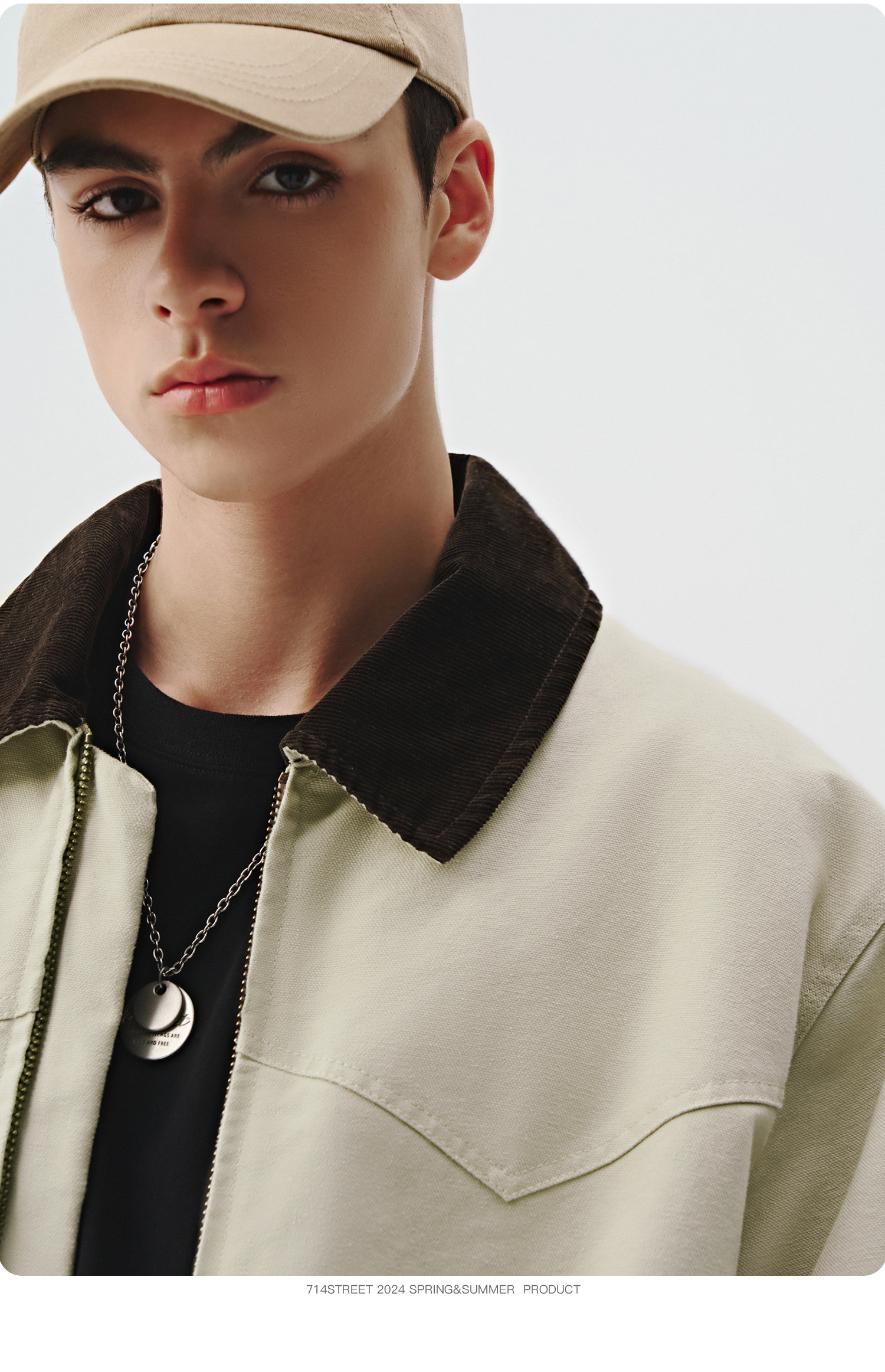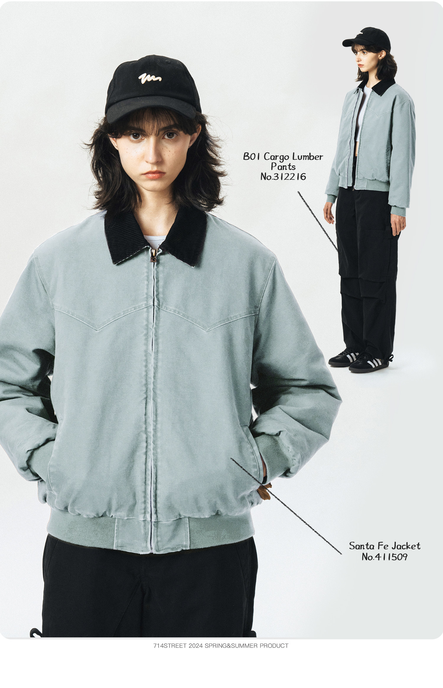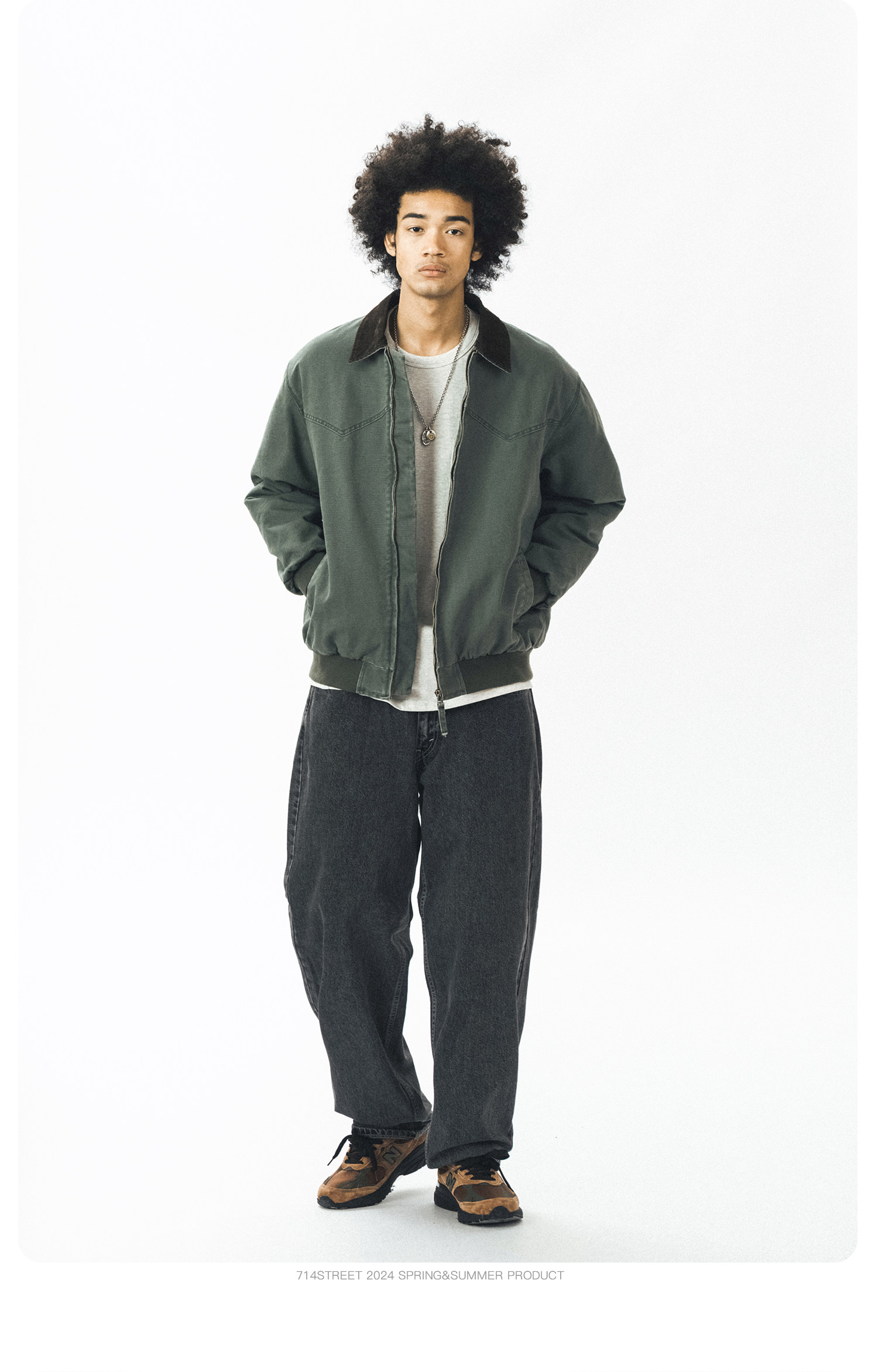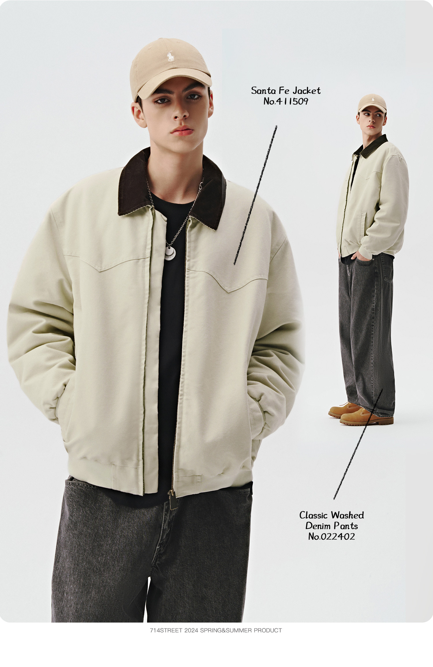 714Street American Workwear Short Jacket for Men and Women, National Trendy Brand, Autumn and Winter Purple Cotton Jacket, Retro Detroit Jacket