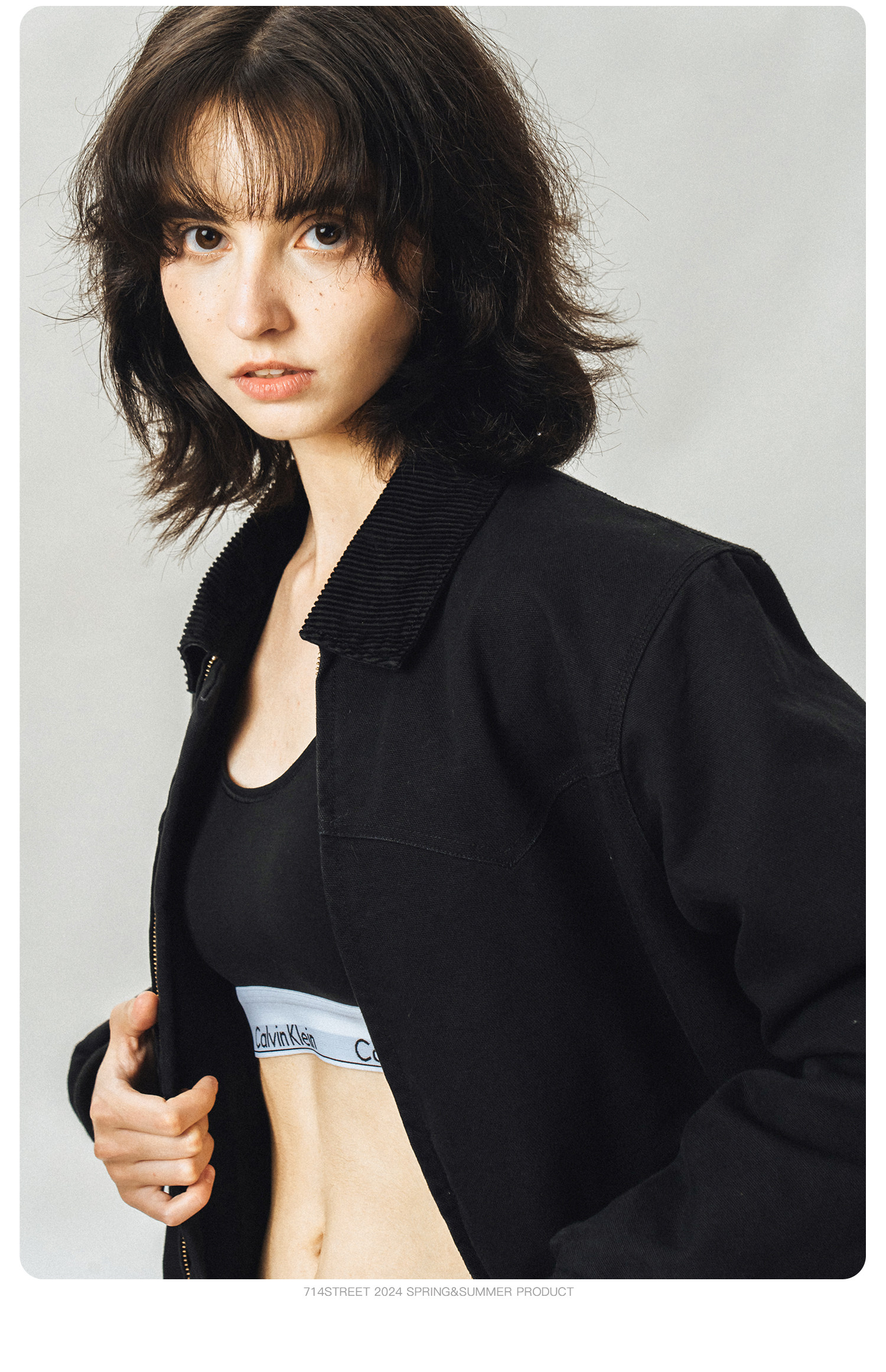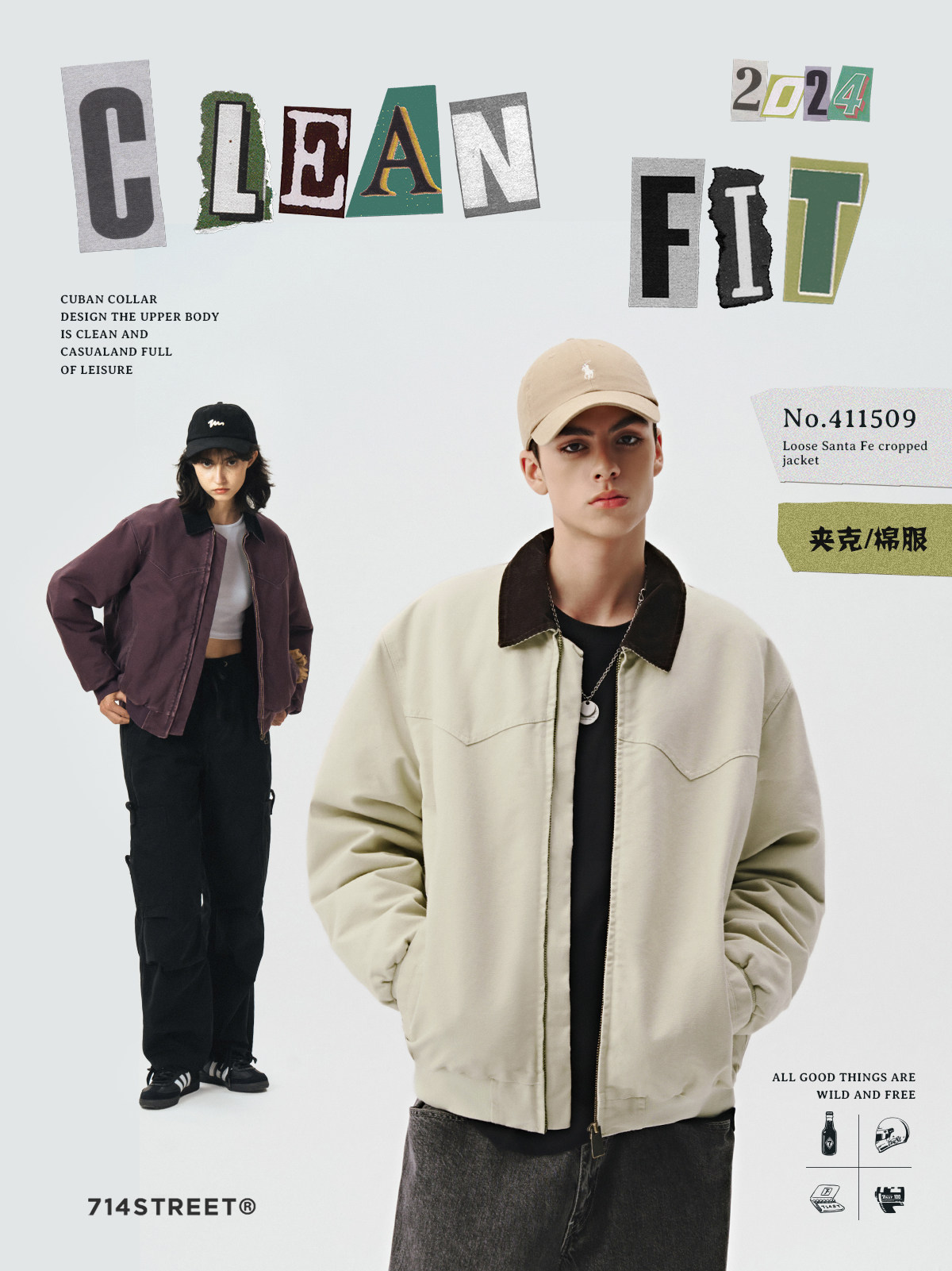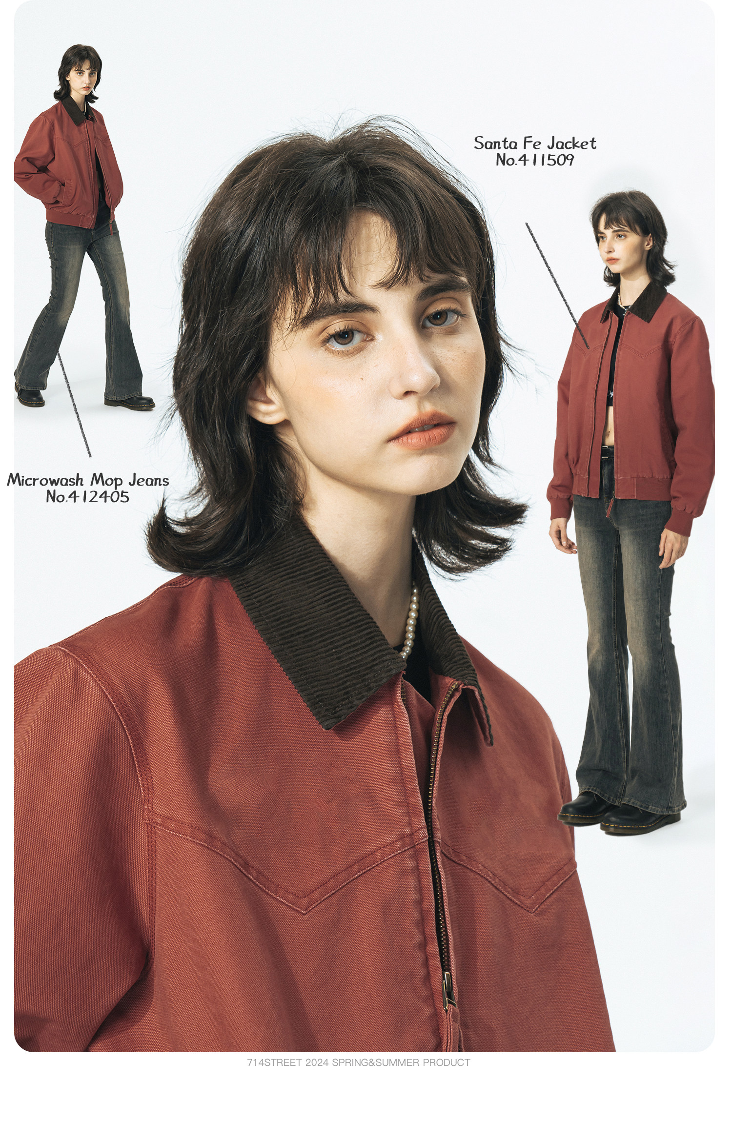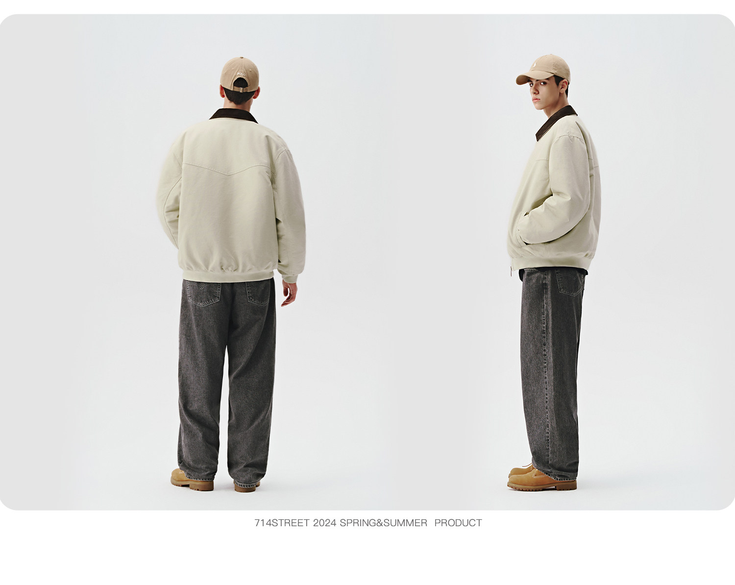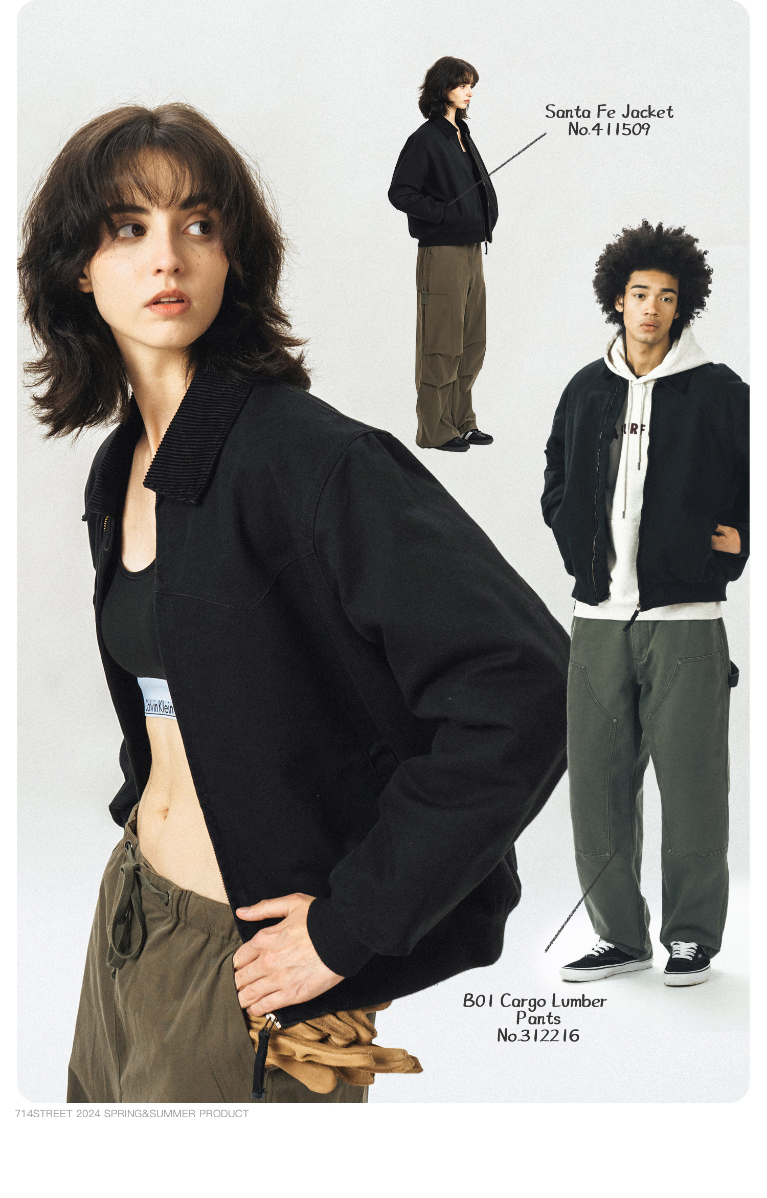 714Street American Workwear Short Jacket for Men and Women, National Trendy Brand, Autumn and Winter Purple Cotton Jacket, Retro Detroit Jacket