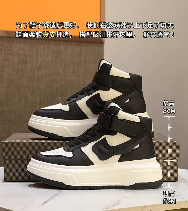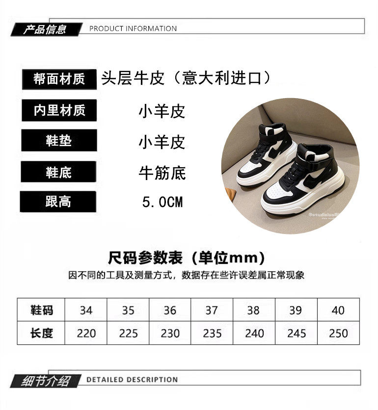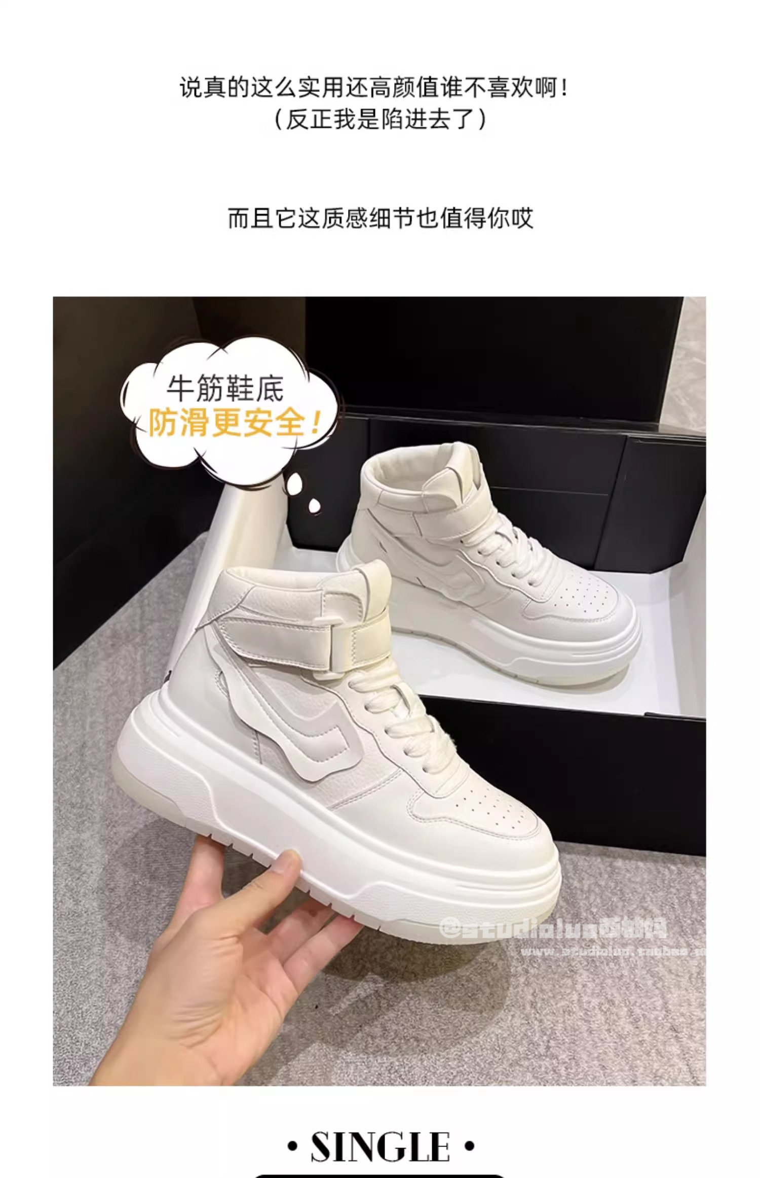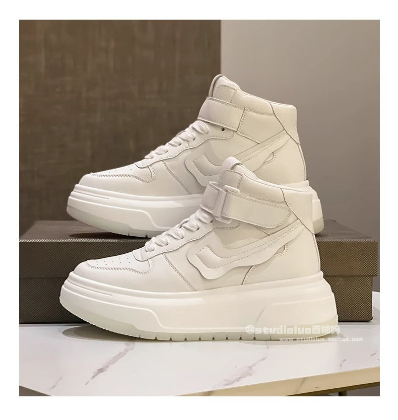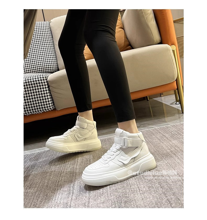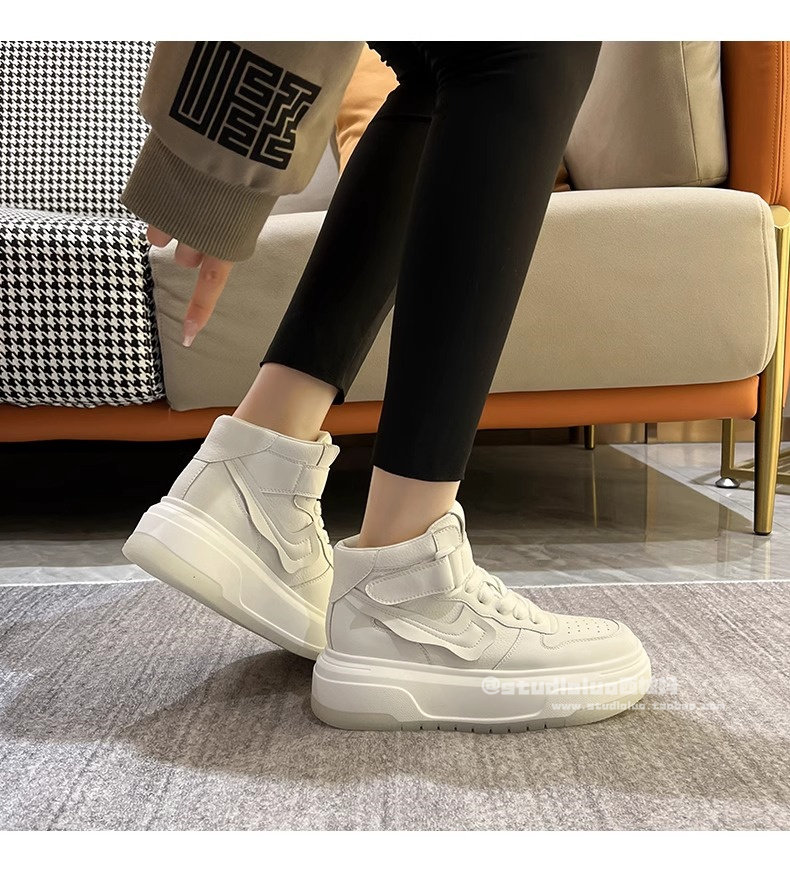 Hong Kong Genuine Leather Thick-Soled Height-Increasing High-Top Shoes for Women 2025 Winter Fleece-Lined Cotton Shoes Platform Short Boots Popular Casual Sneakers