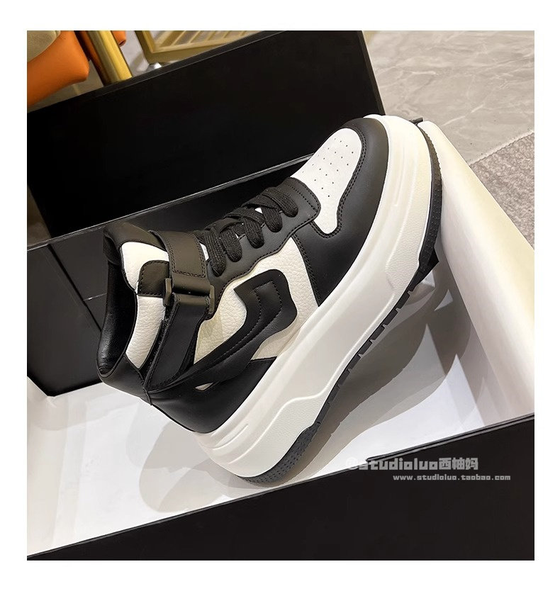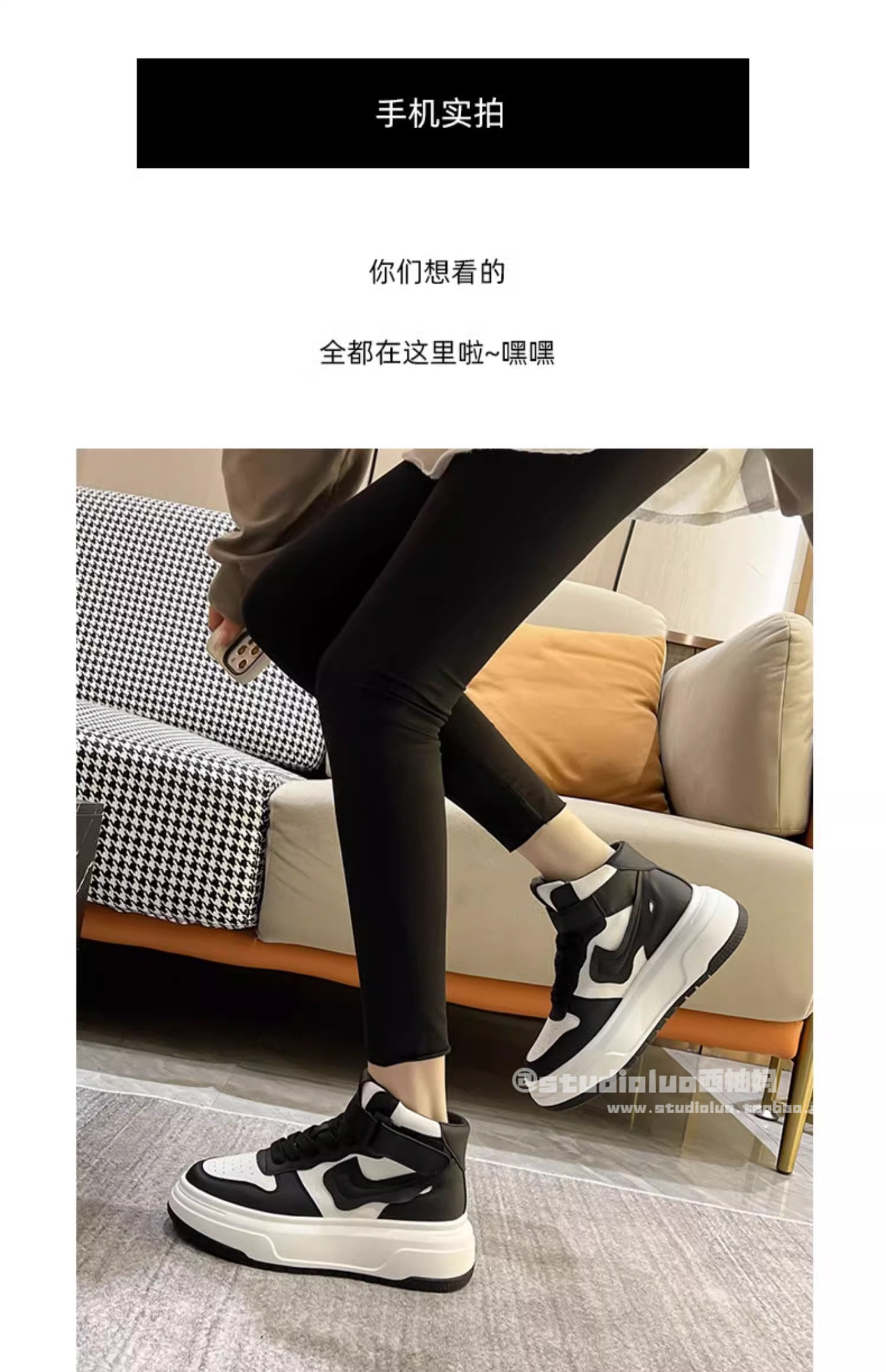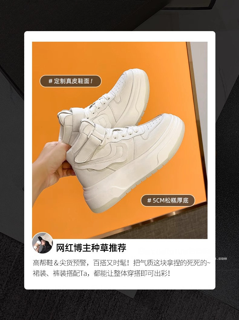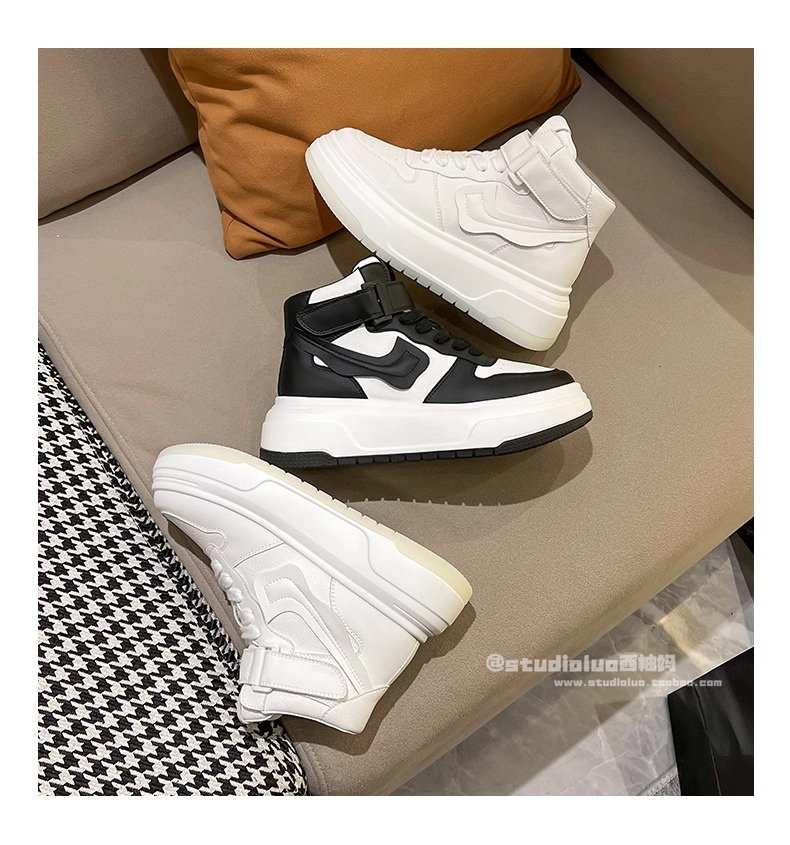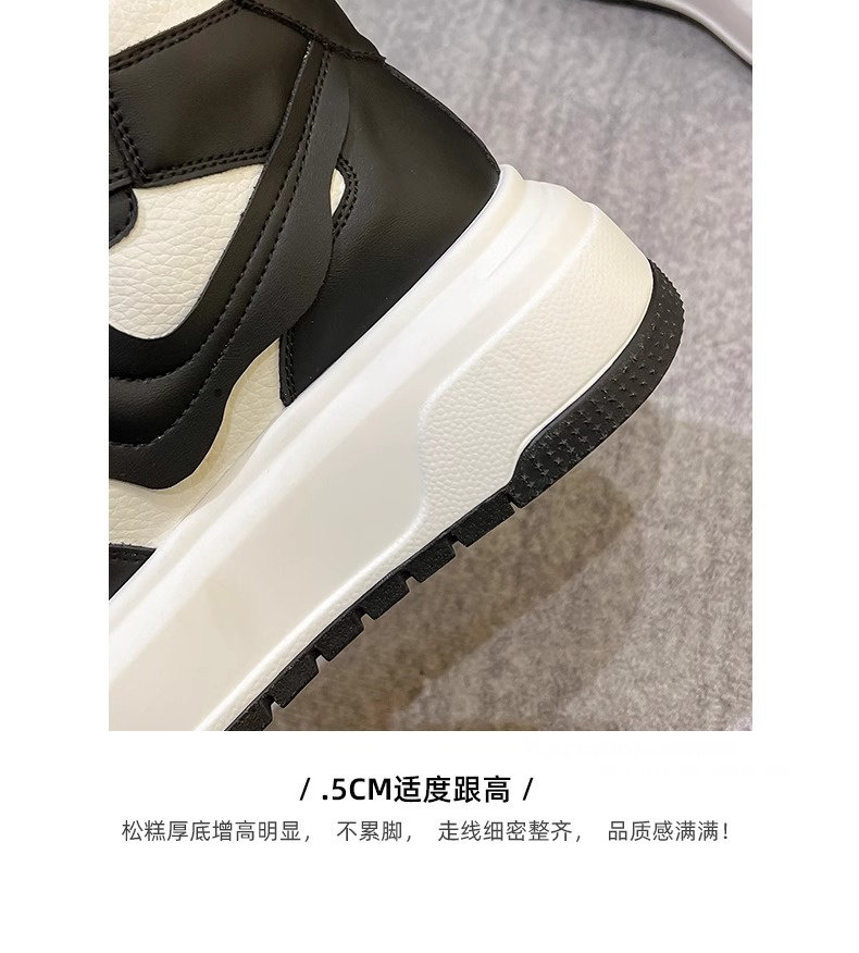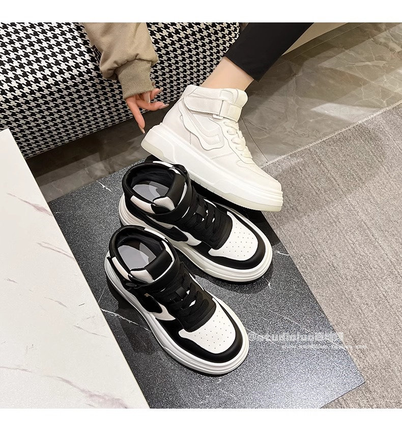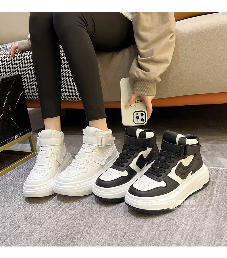 Hong Kong Genuine Leather Thick-Soled Height-Increasing High-Top Shoes for Women 2025 Winter Fleece-Lined Cotton Shoes Platform Short Boots Popular Casual Sneakers