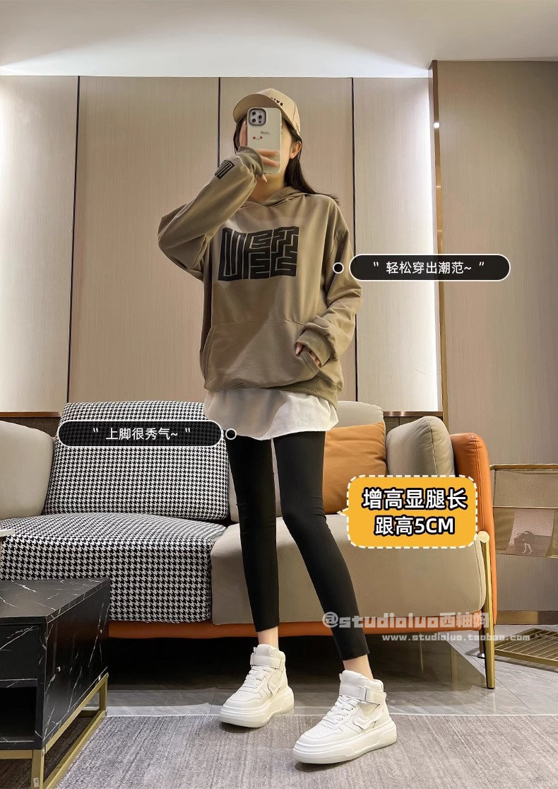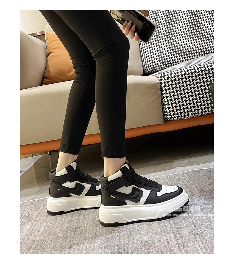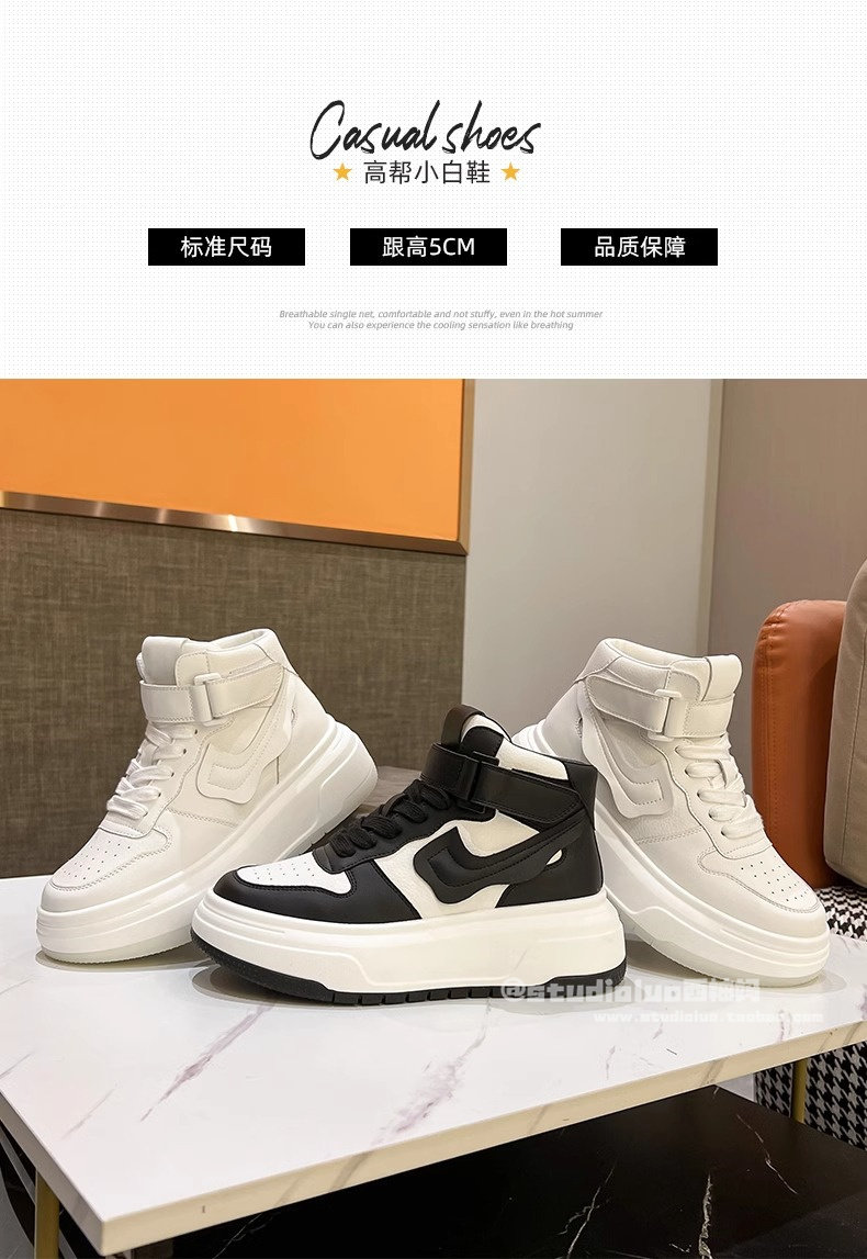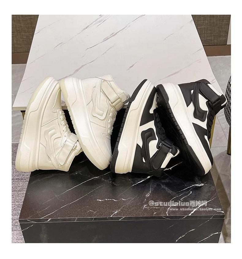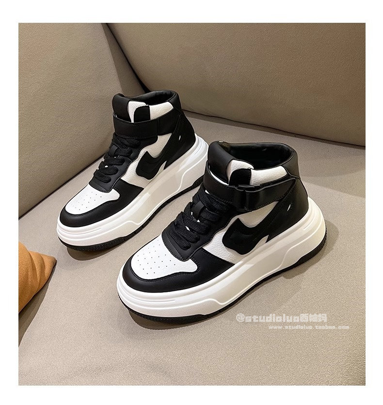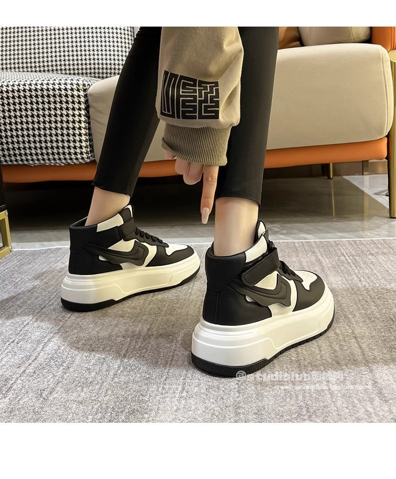 Hong Kong Genuine Leather Thick-Soled Height-Increasing High-Top Shoes for Women 2025 Winter Fleece-Lined Cotton Shoes Platform Short Boots Popular Casual Sneakers