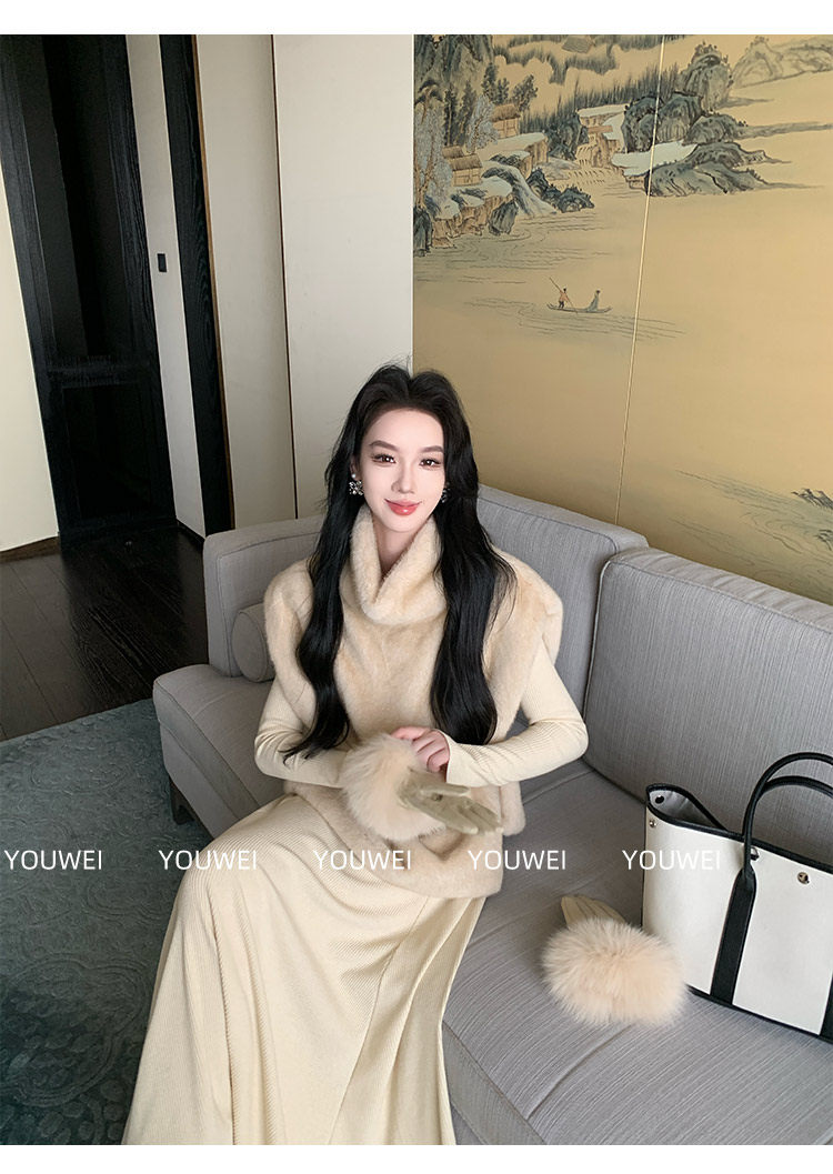 Youwei Long-Sleeve Base Layer Autumn and Winter Dress for Women 2025 New Winter High-End Knit Dress for Layering