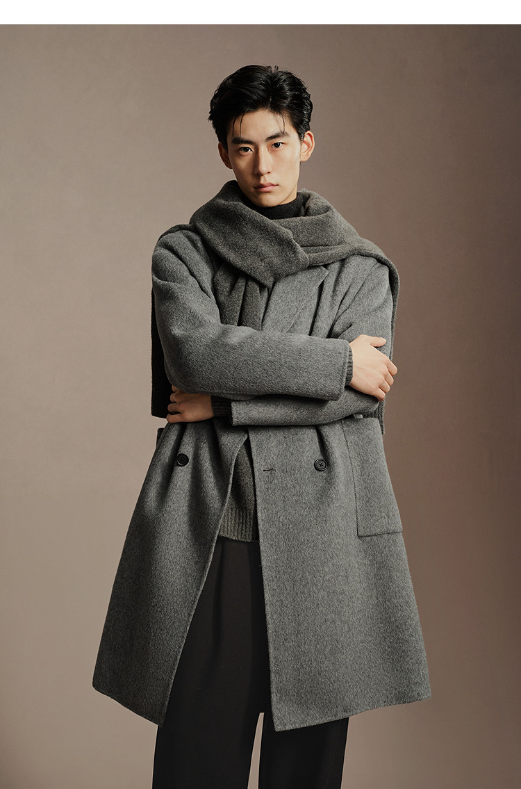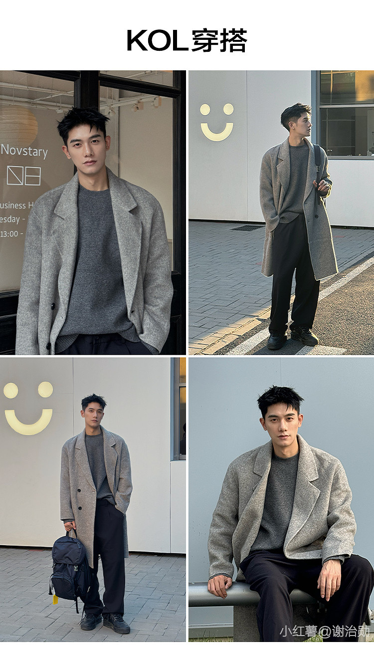 Peacebird Men's Casual Coat Loose Fashion Classic Selected Wool Blend Coat for Men