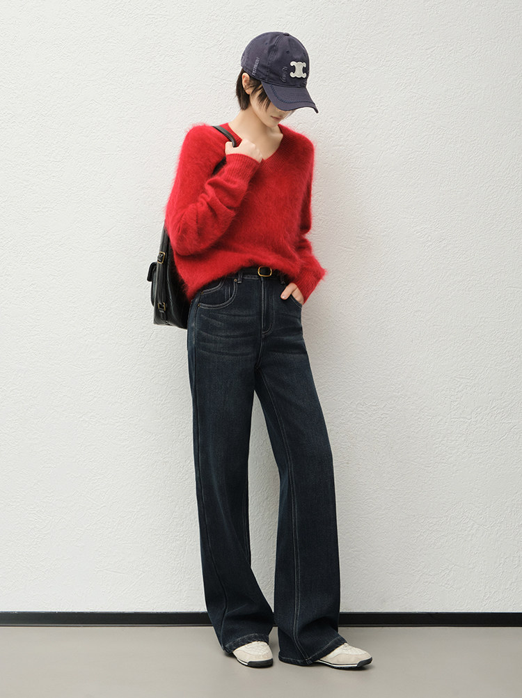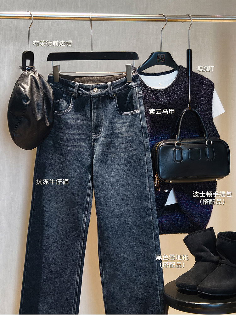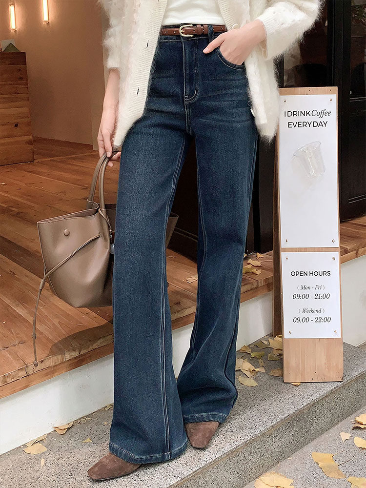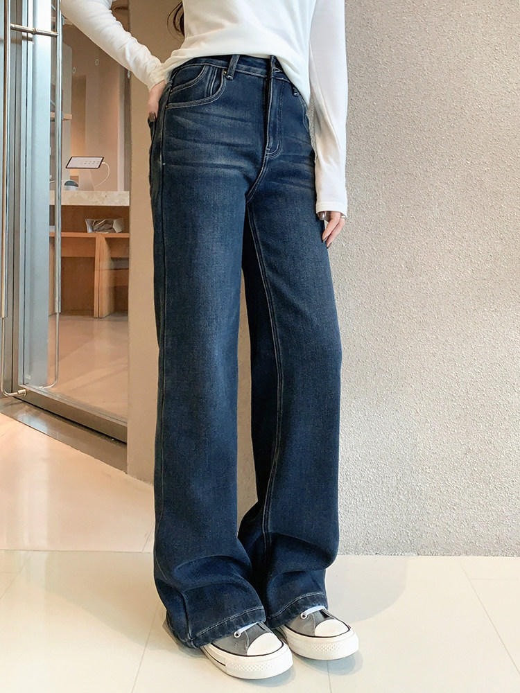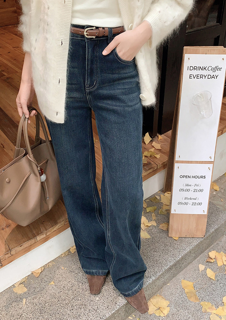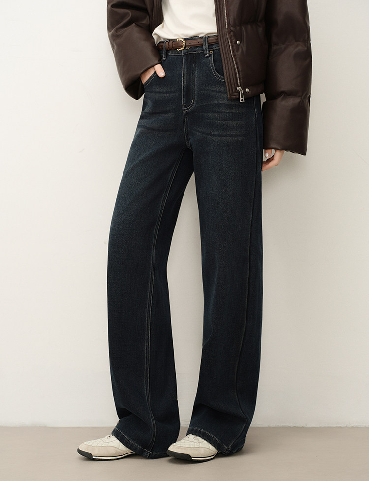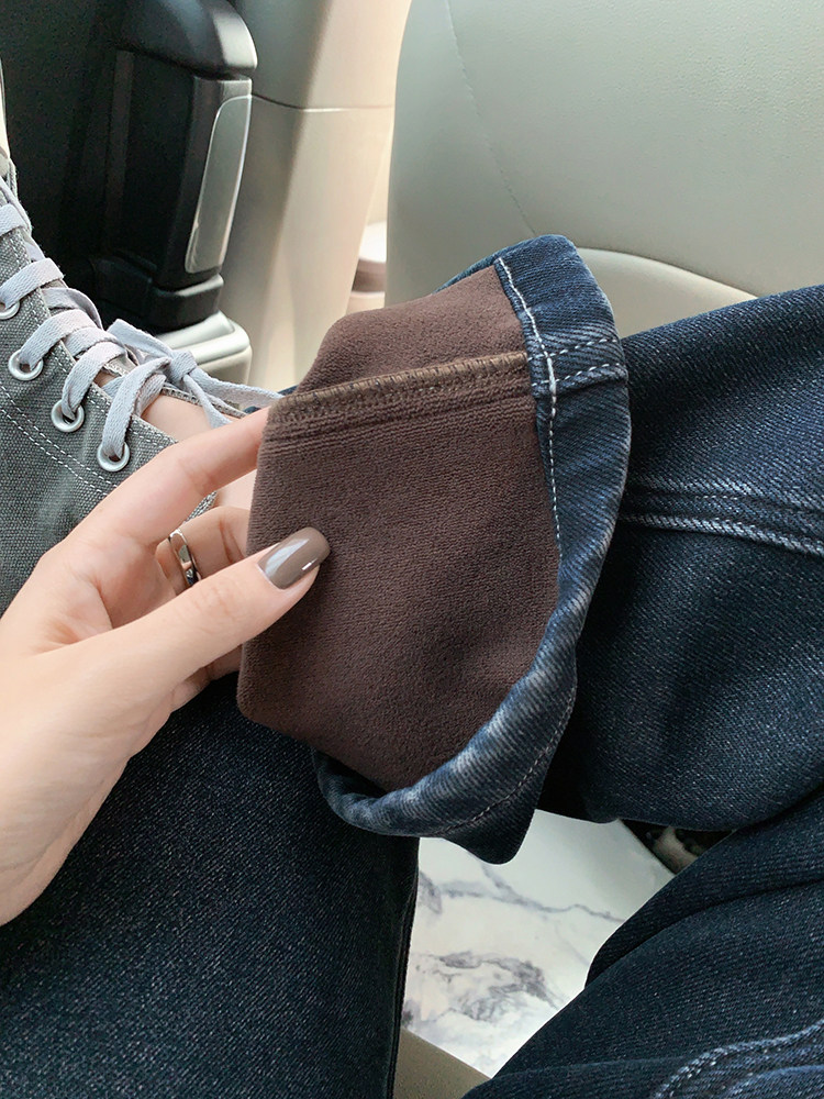 Meiyang Anti-Freeze Jeans, Thick and Very Comfortable! Fleece-Lined Warm Straight-Leg Pants [Narrow]