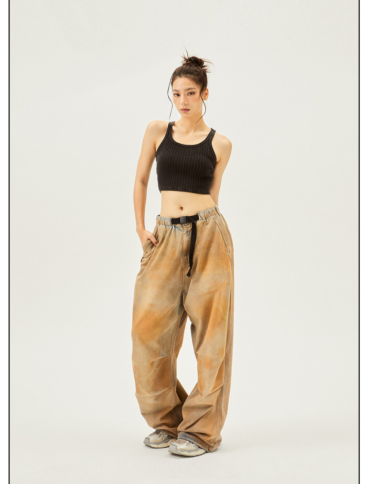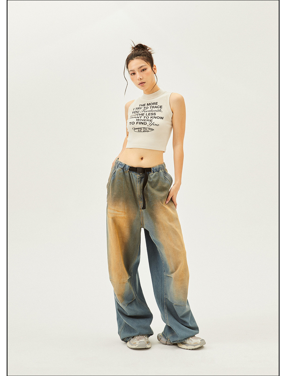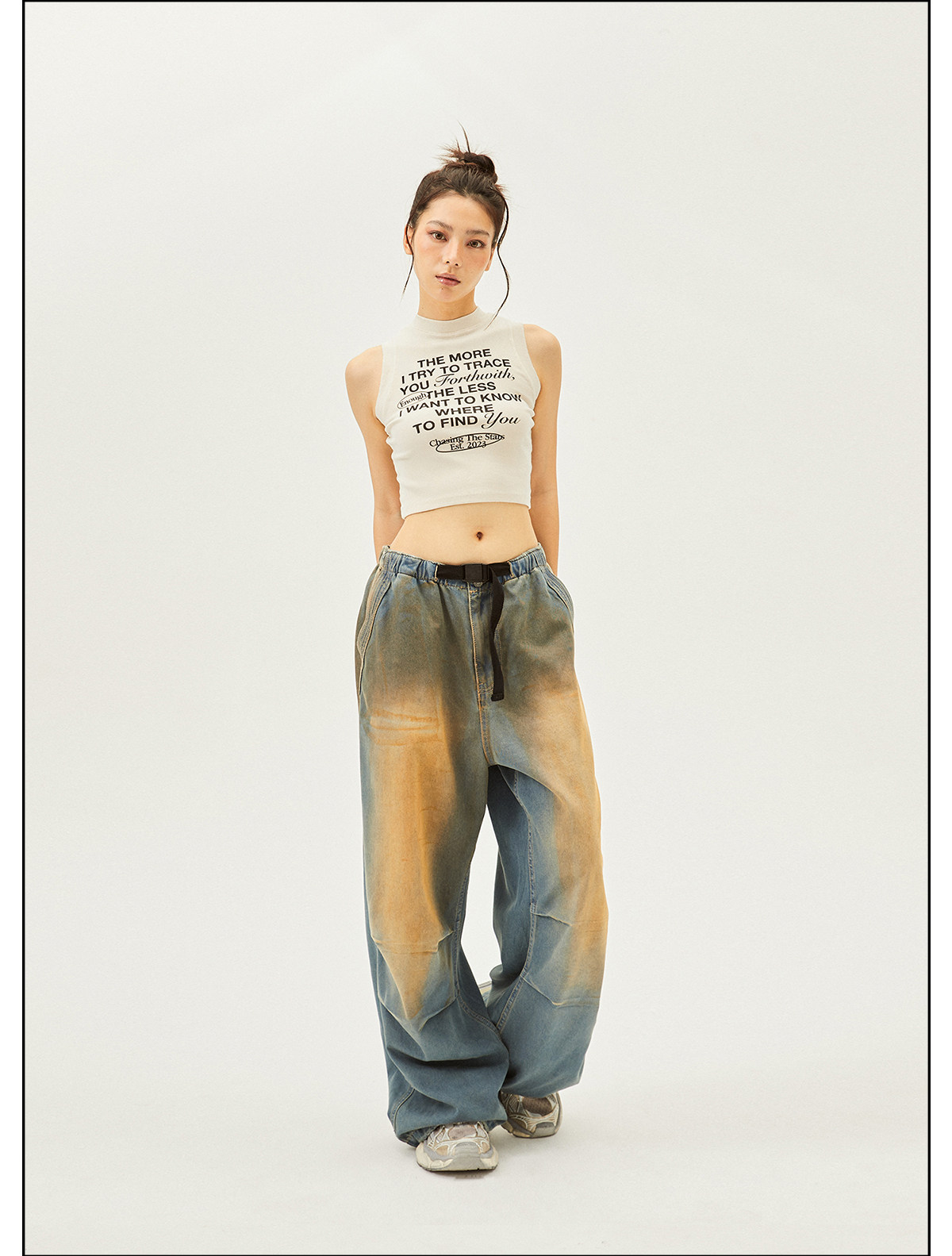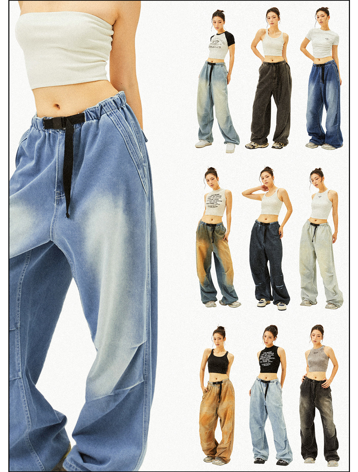 Seaside American Street Style Washed Spray Horse-Print Jeans for Women, Spring and Summer Jazz Hip-Hop Trendy Brand Sports Wide-Leg Pants
