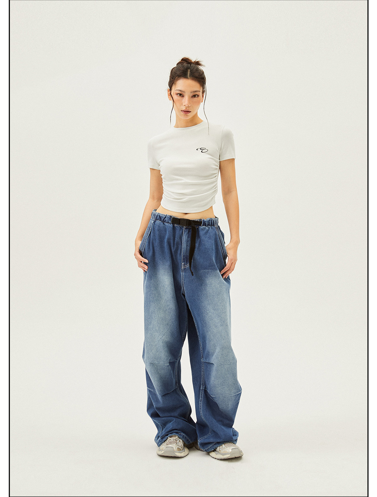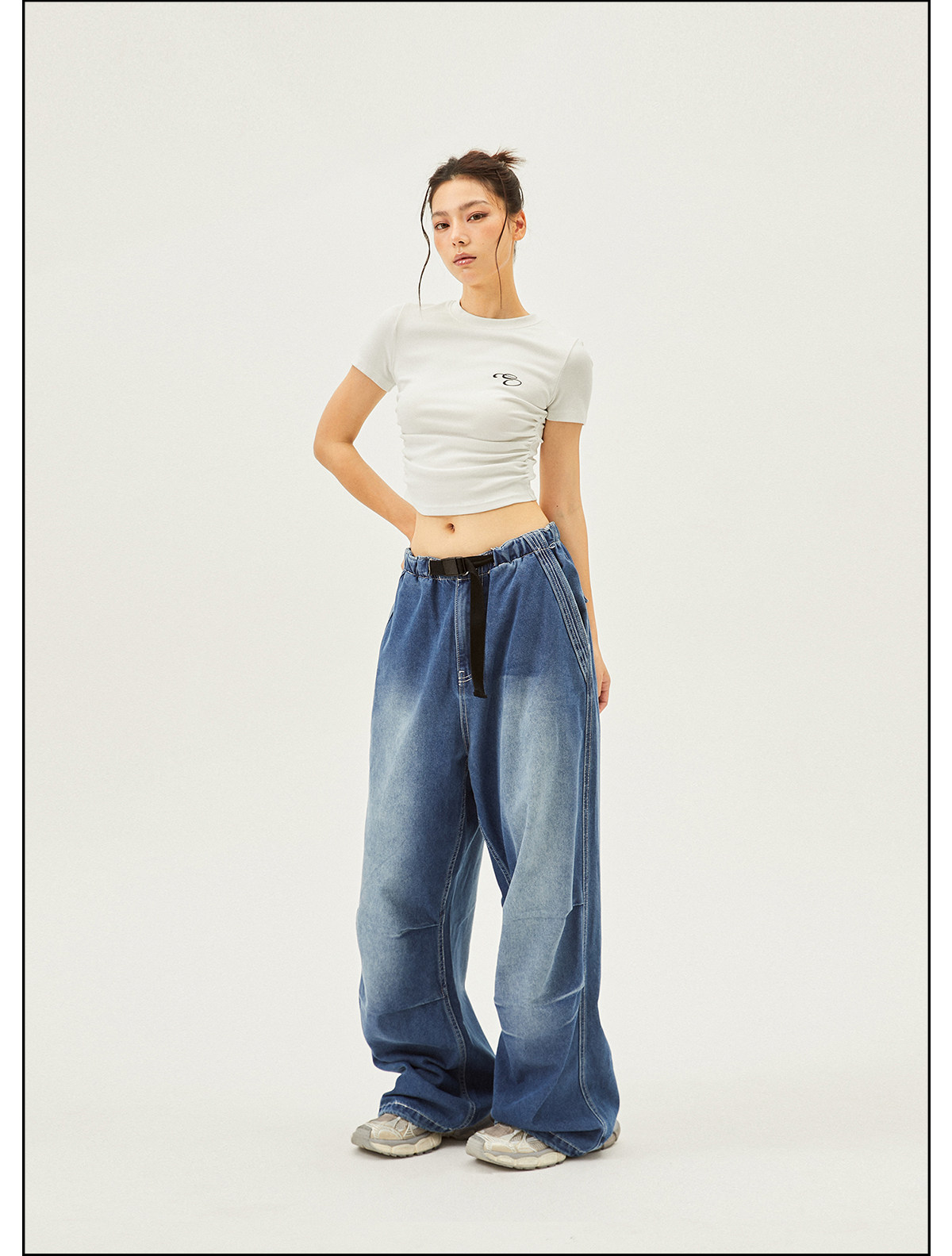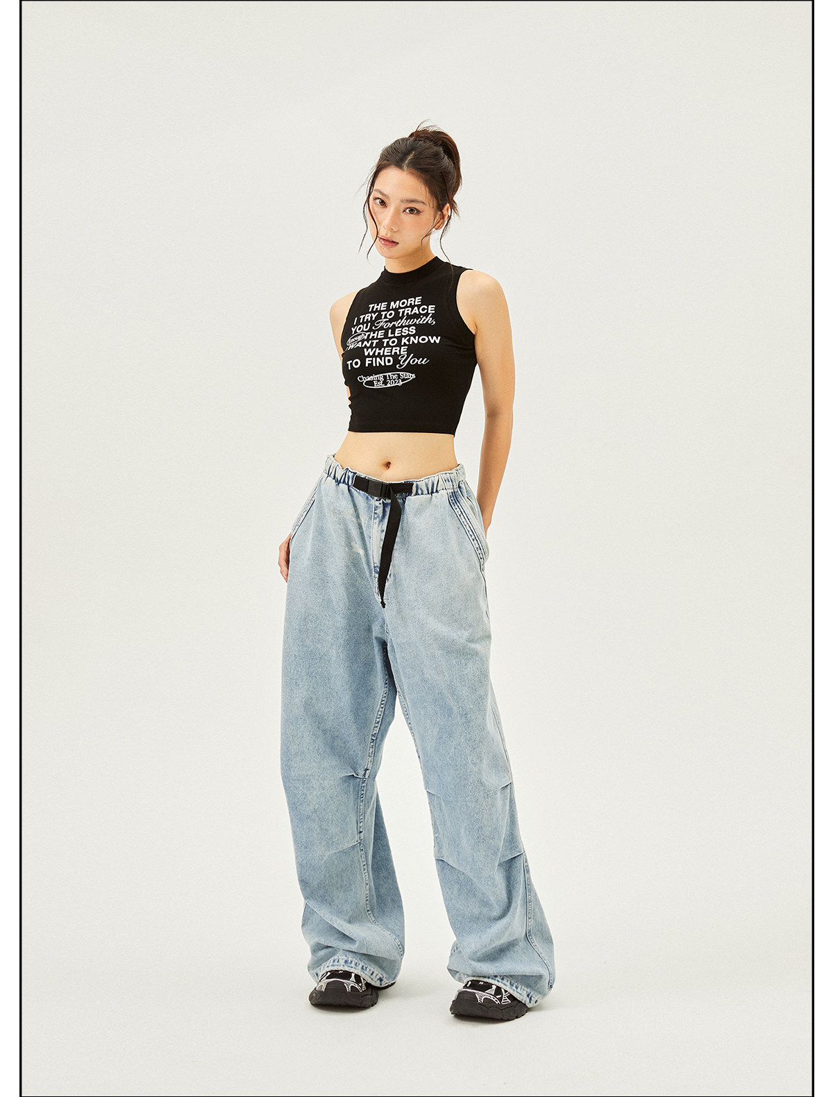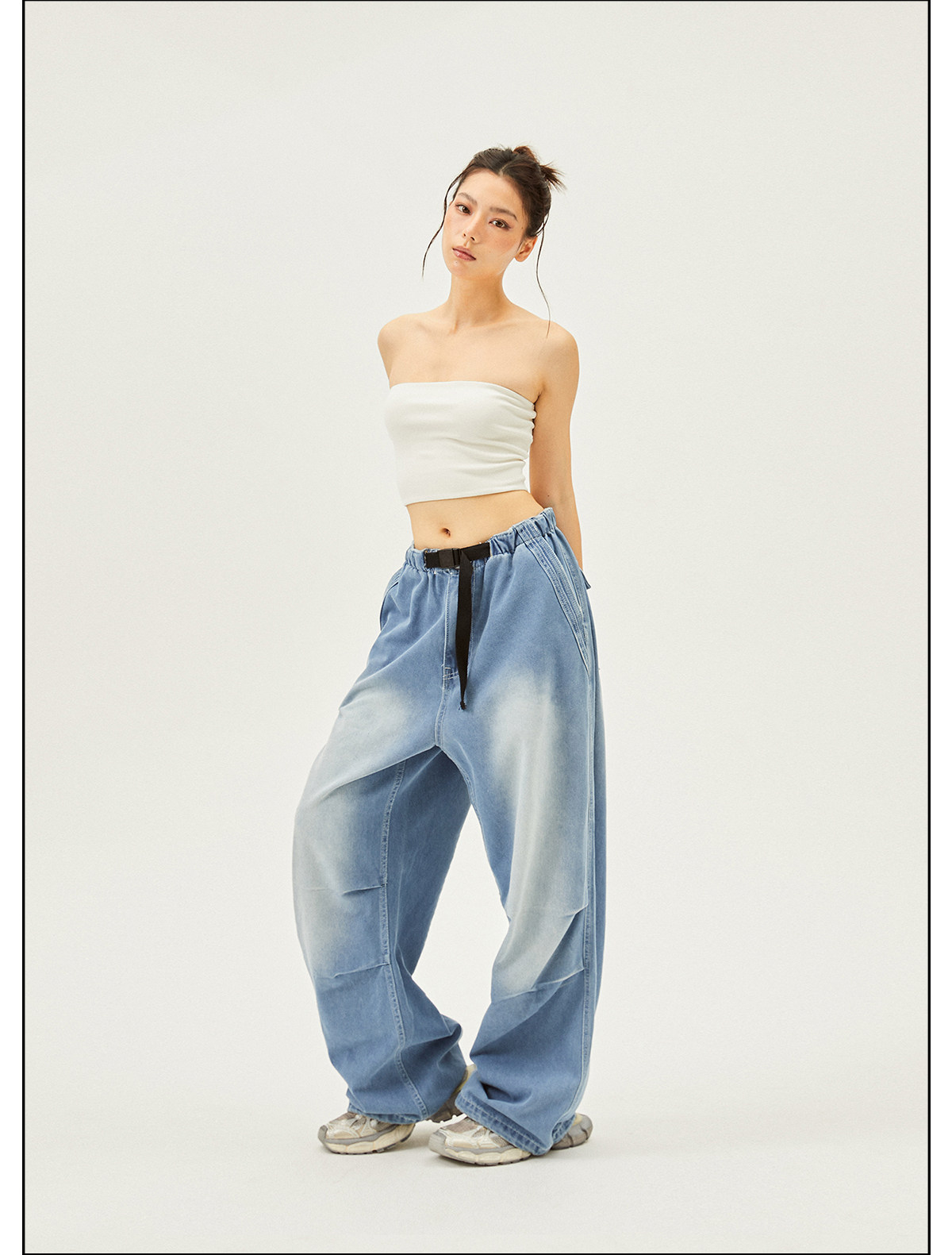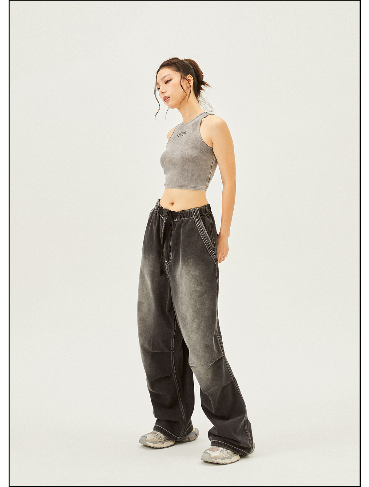 Seaside American Street Style Washed Spray Horse-Print Jeans for Women, Spring and Summer Jazz Hip-Hop Trendy Brand Sports Wide-Leg Pants