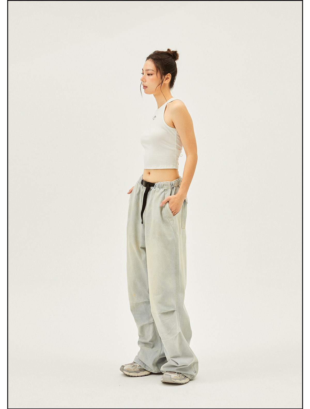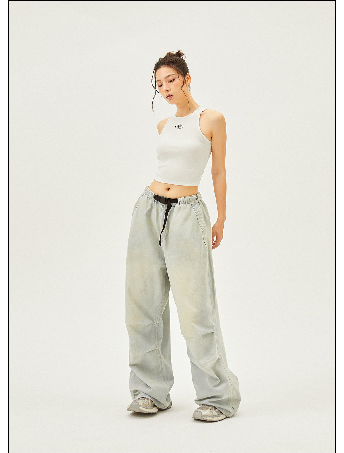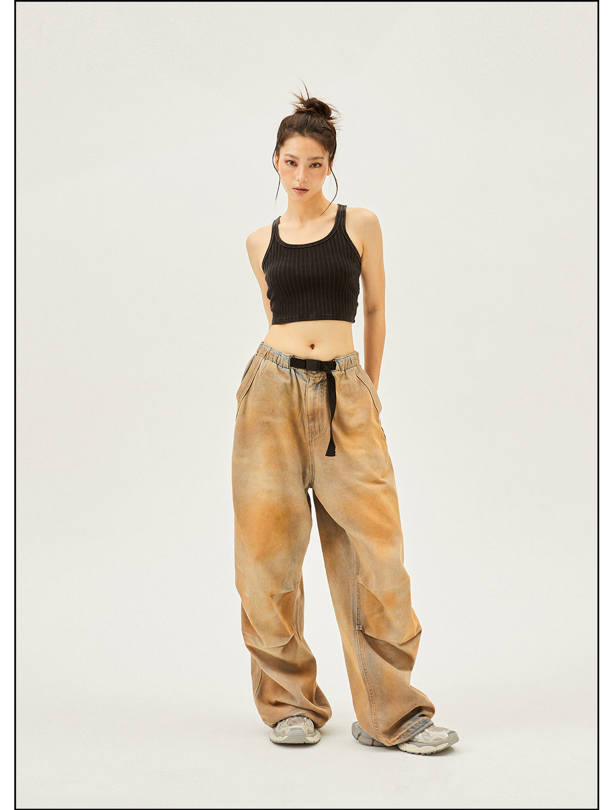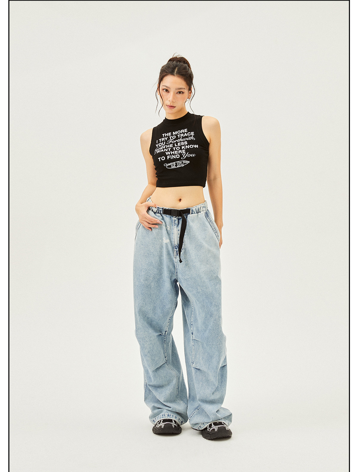 Seaside American Street Style Washed Spray Horse-Print Jeans for Women, Spring and Summer Jazz Hip-Hop Trendy Brand Sports Wide-Leg Pants