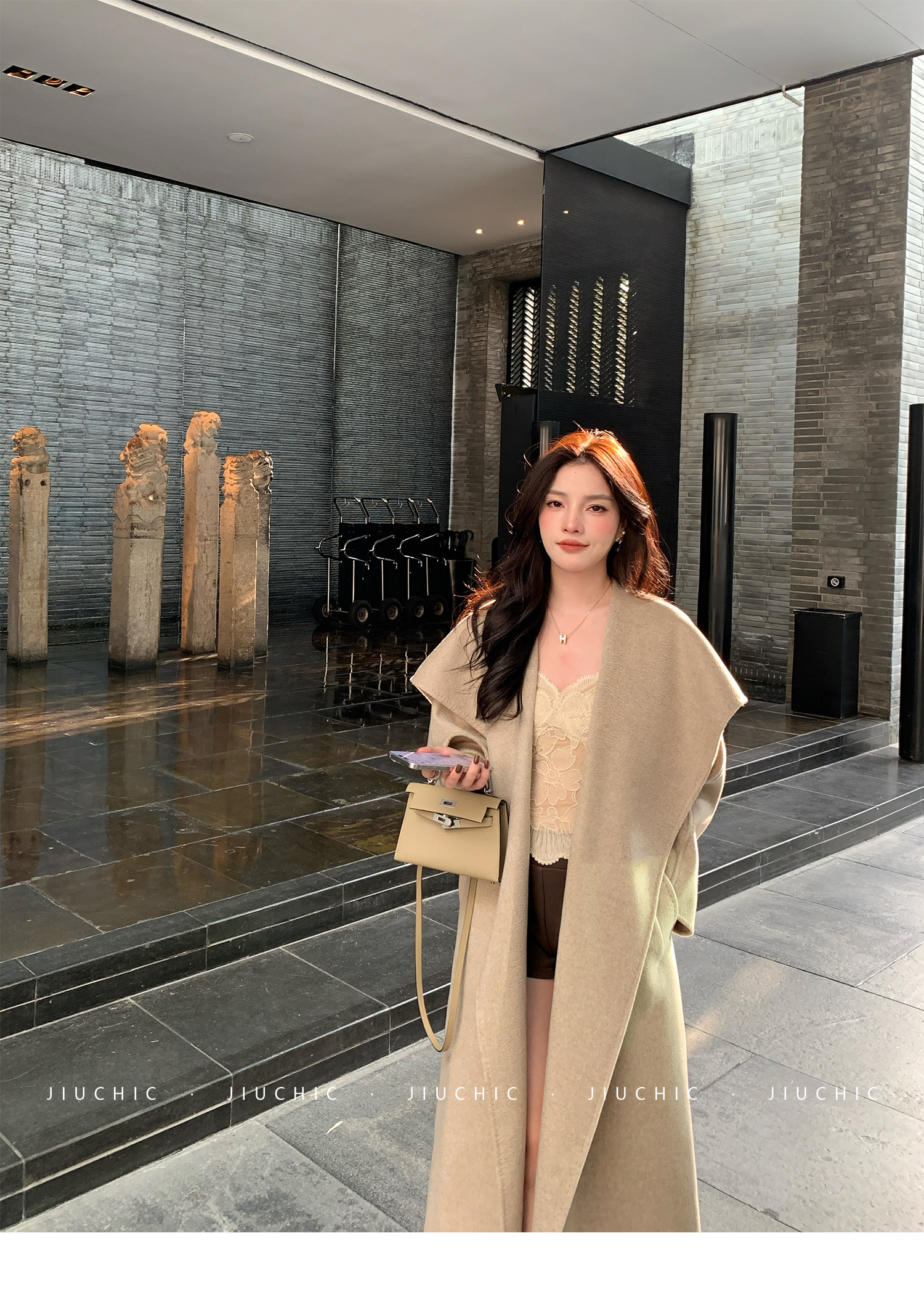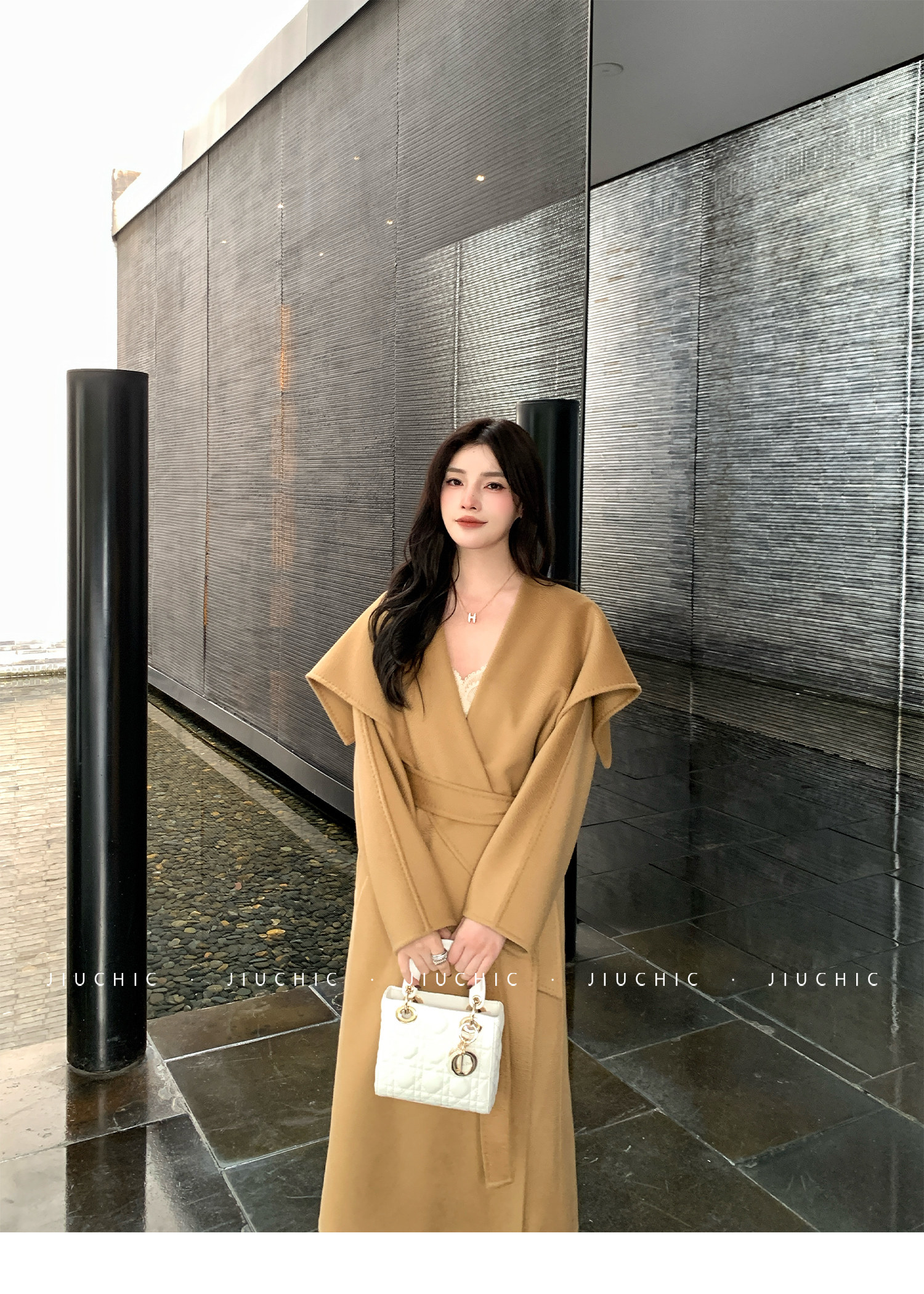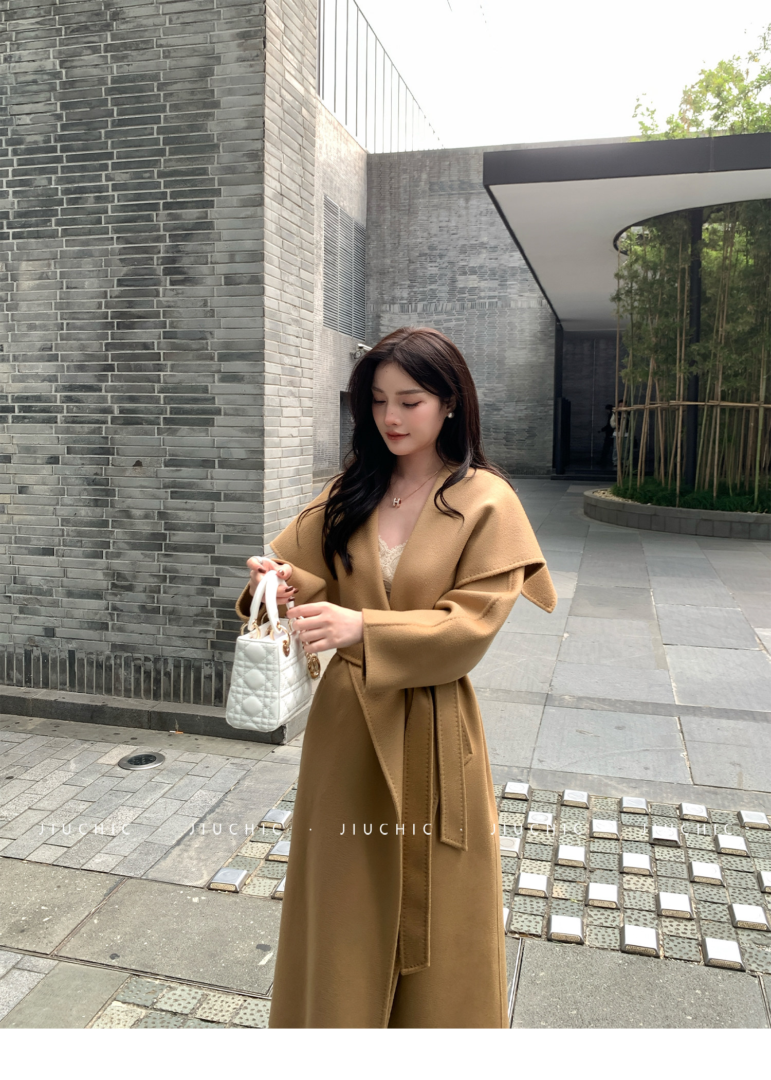 Jiuchic|2025M Rienza Large Lapel Double-Sided Water Ripple Cashmere Coat for Women, Mid-Length Jacket