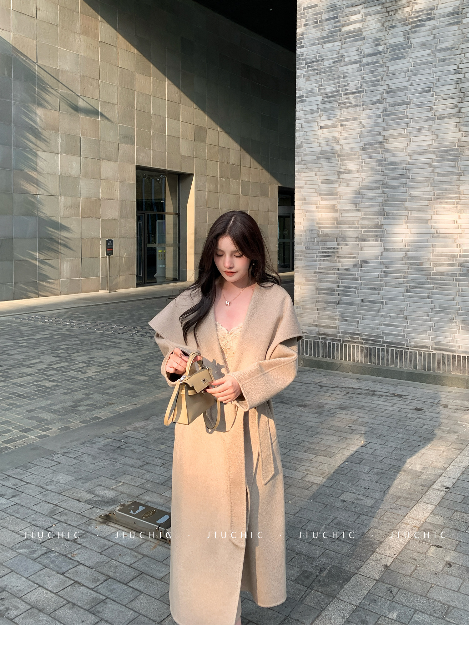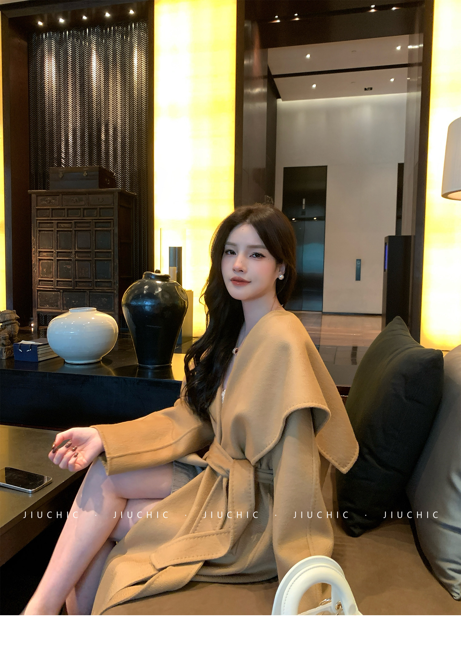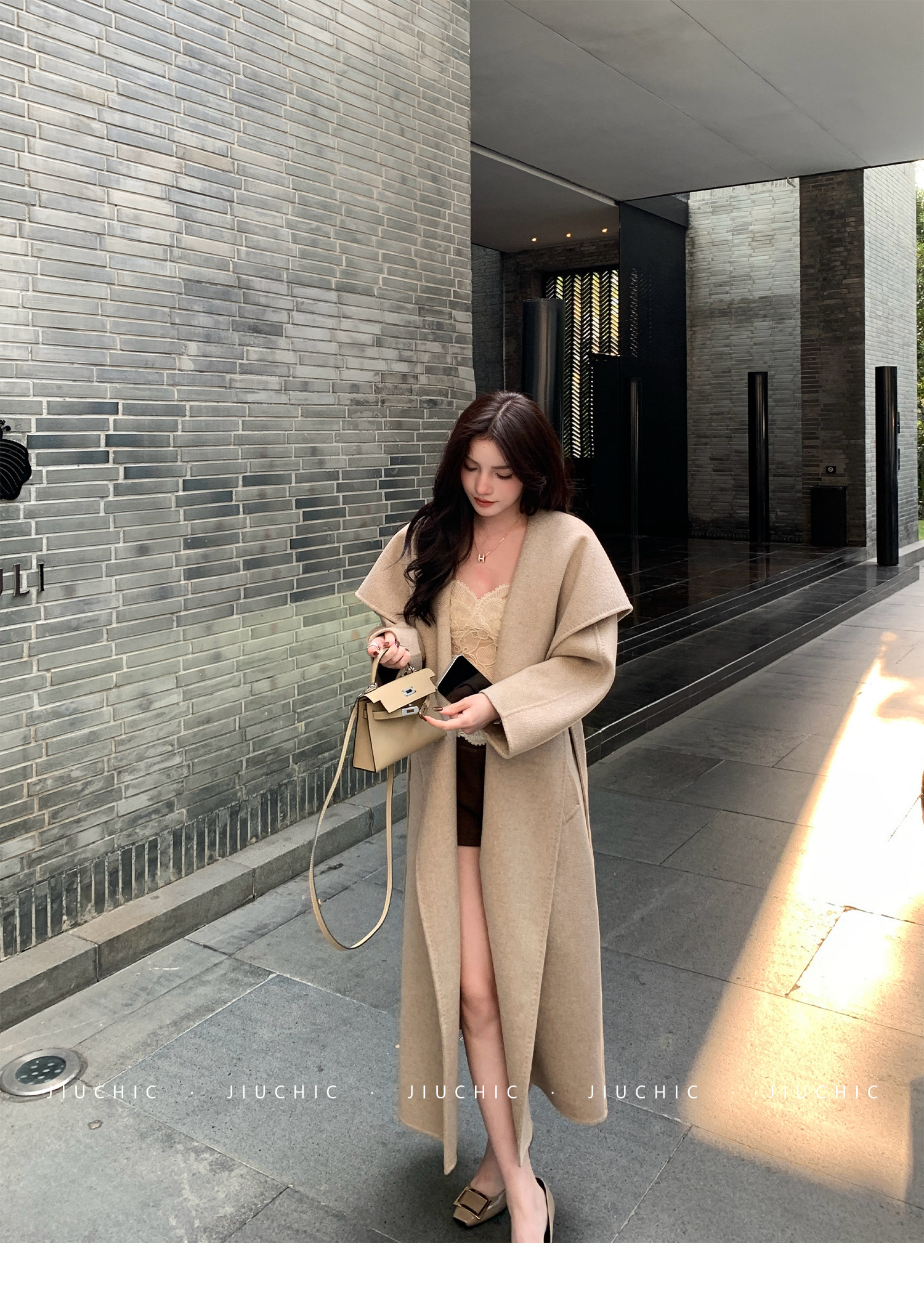 Jiuchic|2025M Rienza Large Lapel Double-Sided Water Ripple Cashmere Coat for Women, Mid-Length Jacket