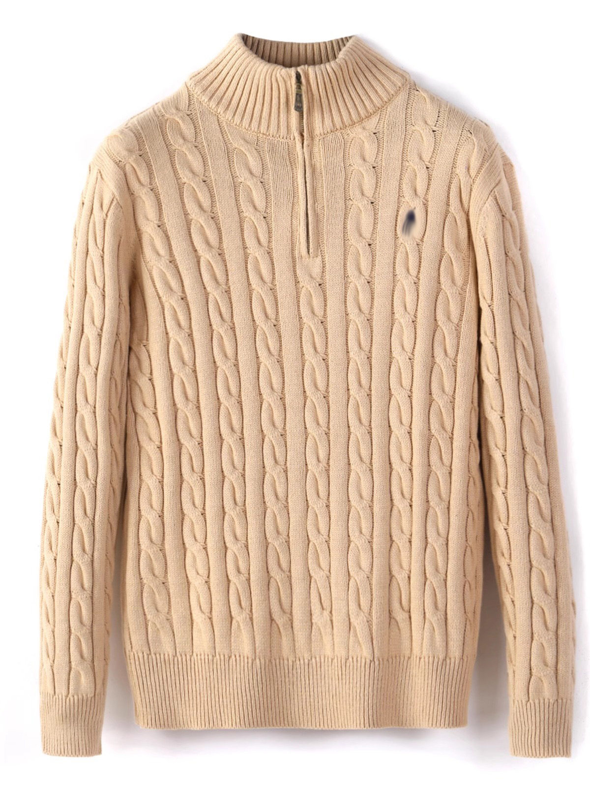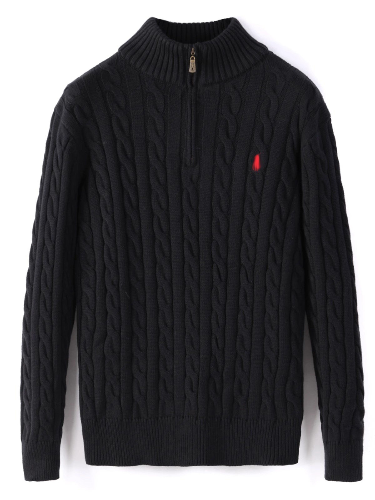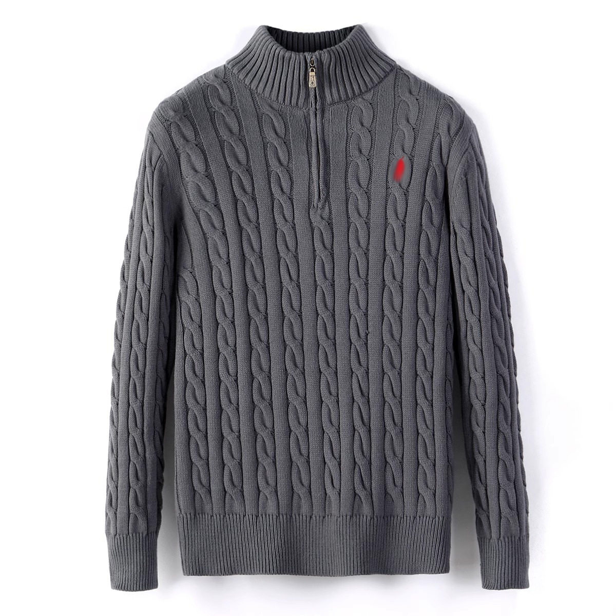 Paul Slim-Fit Half-High Collar Zip-Up Men's Knit Sweater Winter Polo Pullover Thick Cable Knit Sweater for Outerwear
