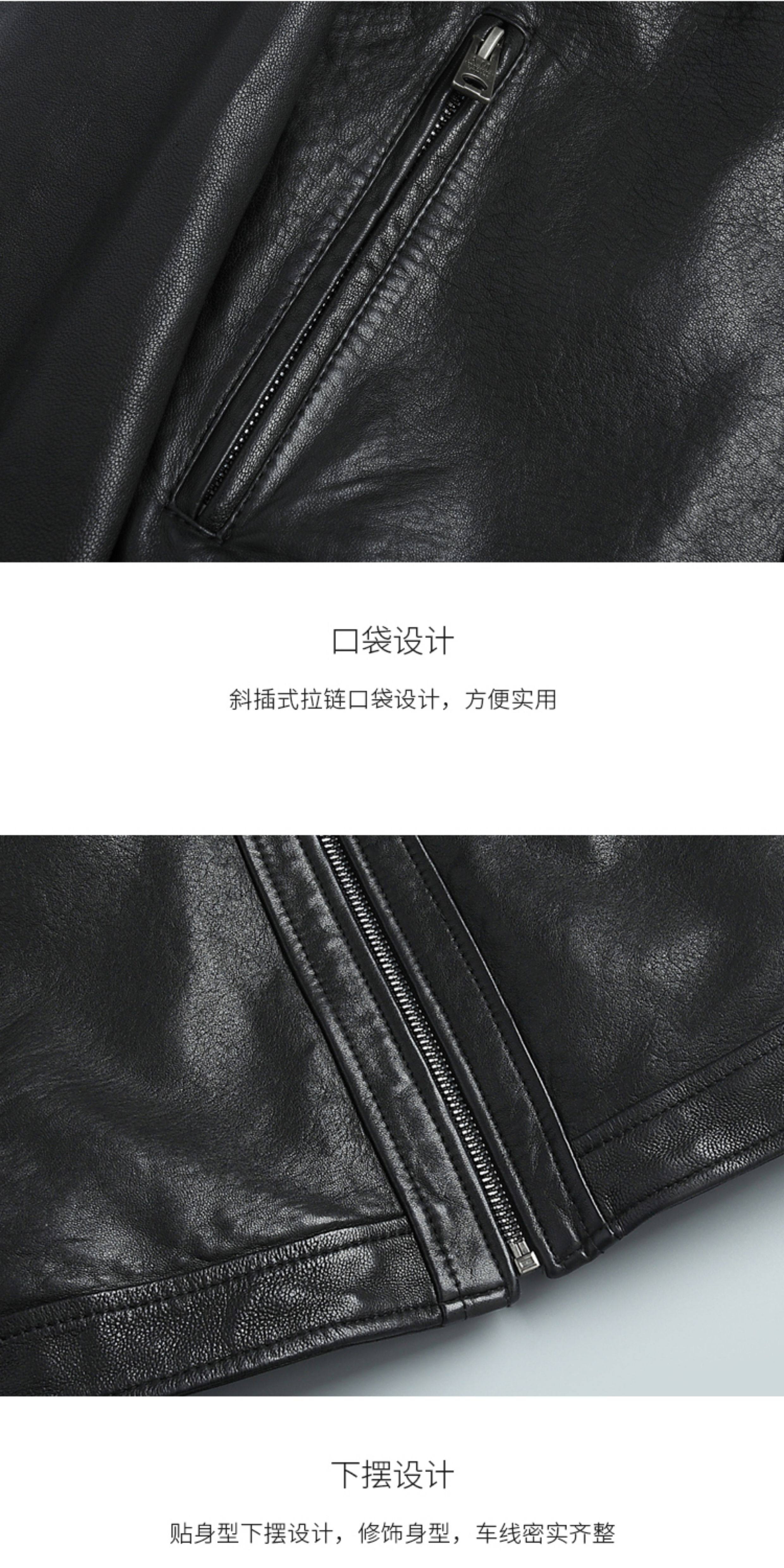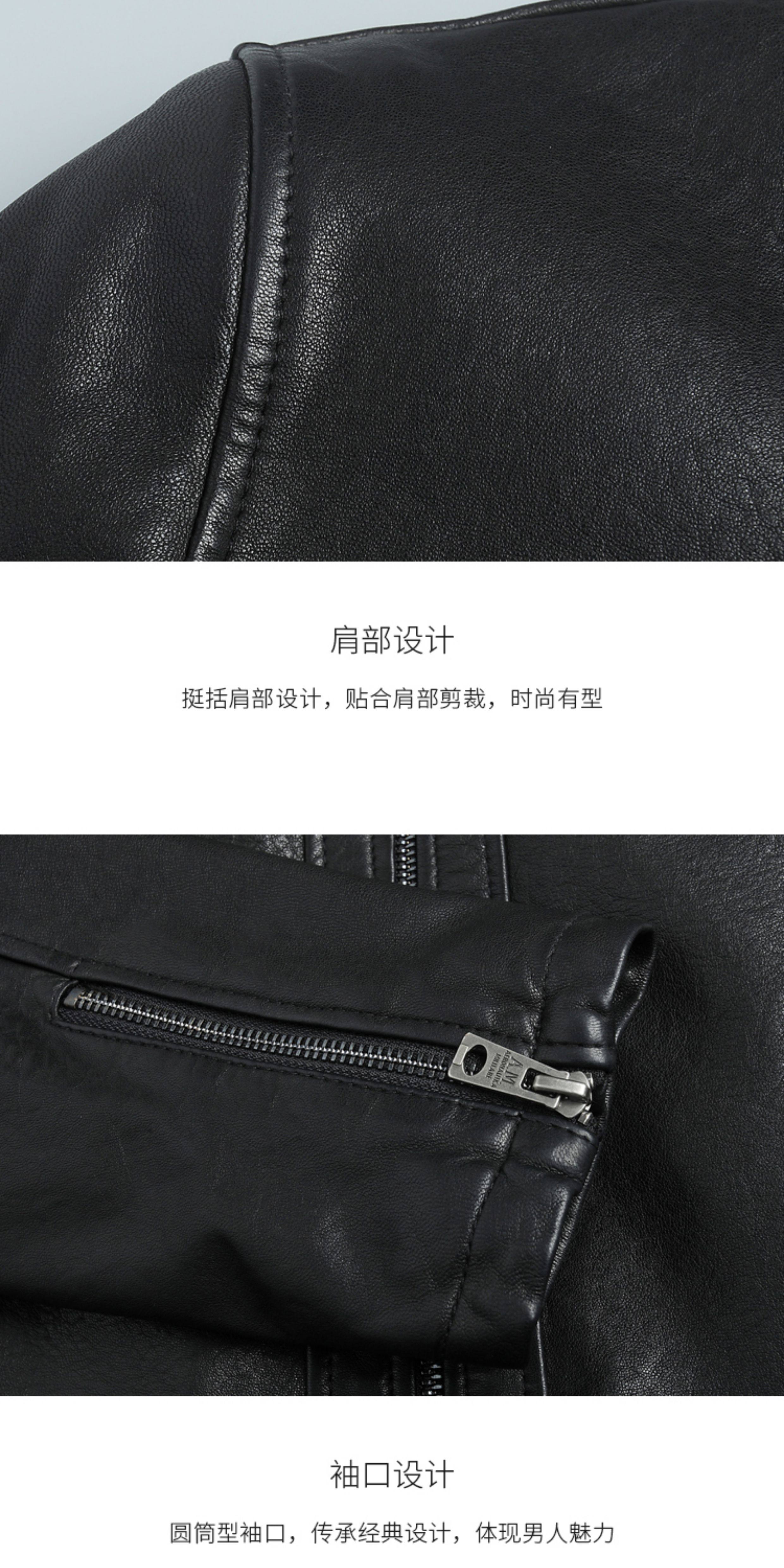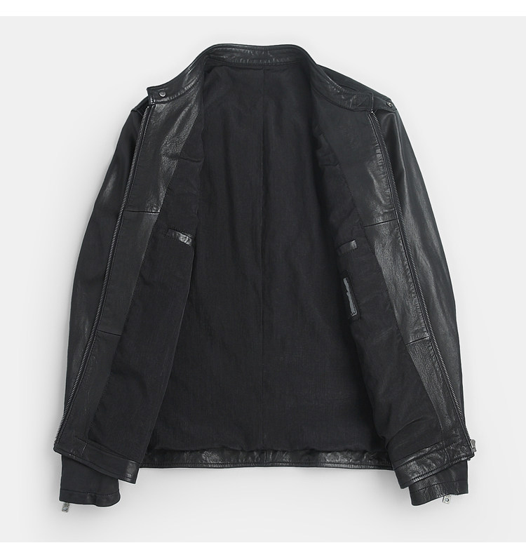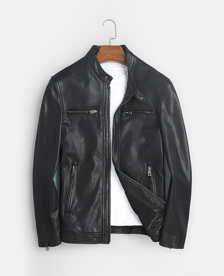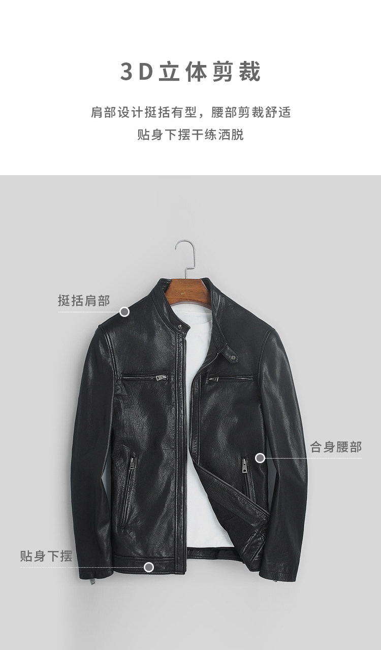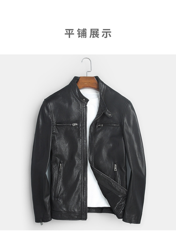 Haining Trendy New Genuine Leather Jacket for Men, Sheepskin Short Stand-Up Collar Stylish Biker Leather Jacket for Spring and Autumn
