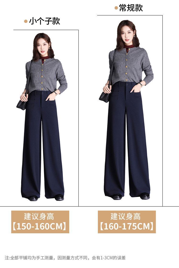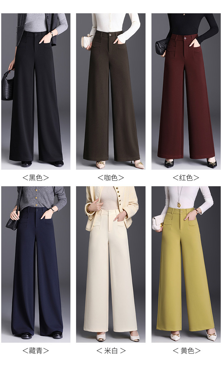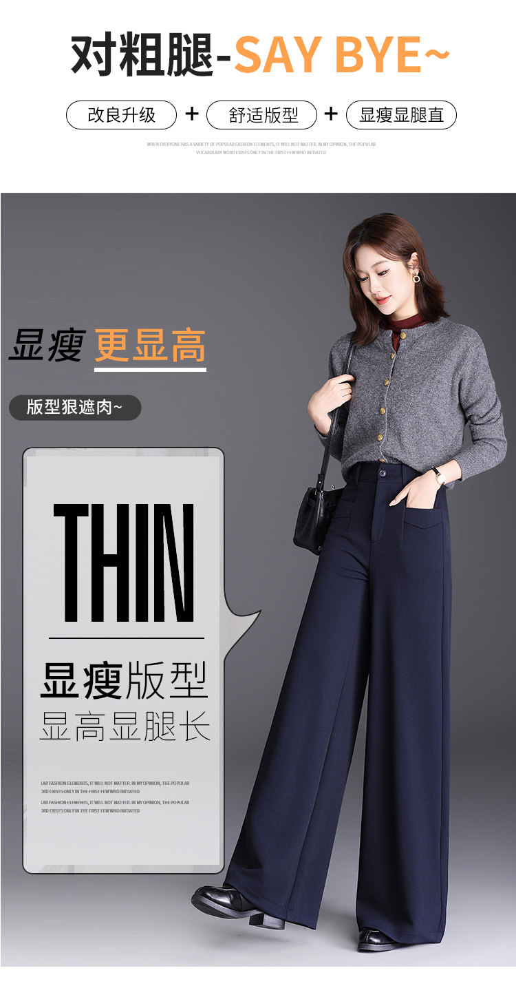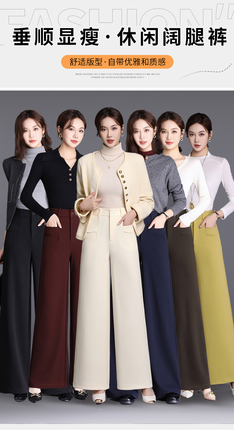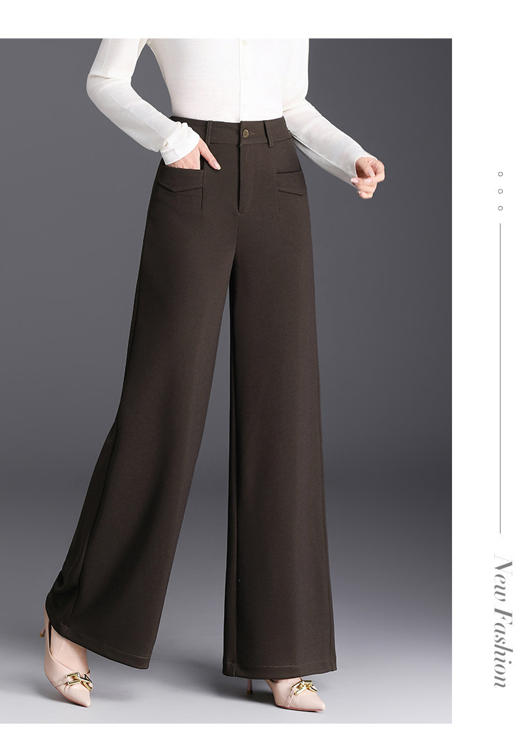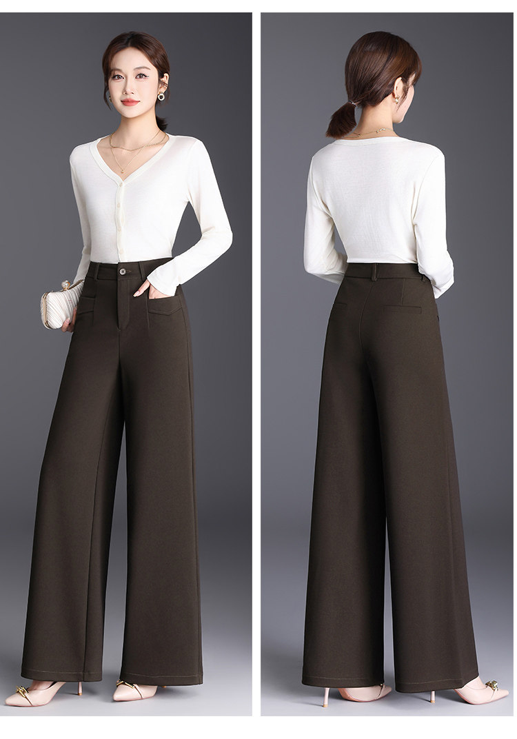 High-Waisted Casual Fleece-Lined Wool Wide-Leg Pants for Women, Autumn and Winter 2025 New Slimming Long Pants, Loose and Drapey Straight-Leg Trousers