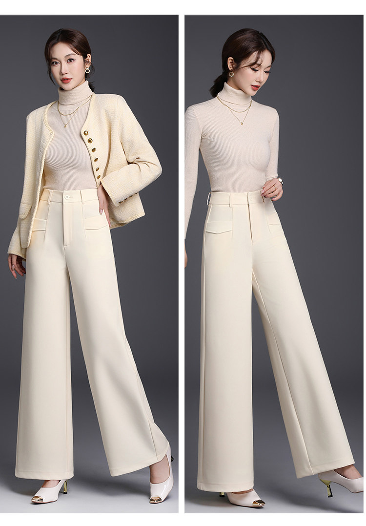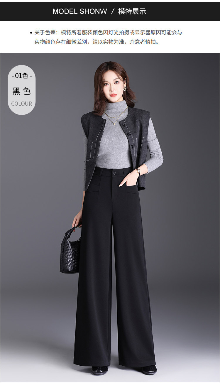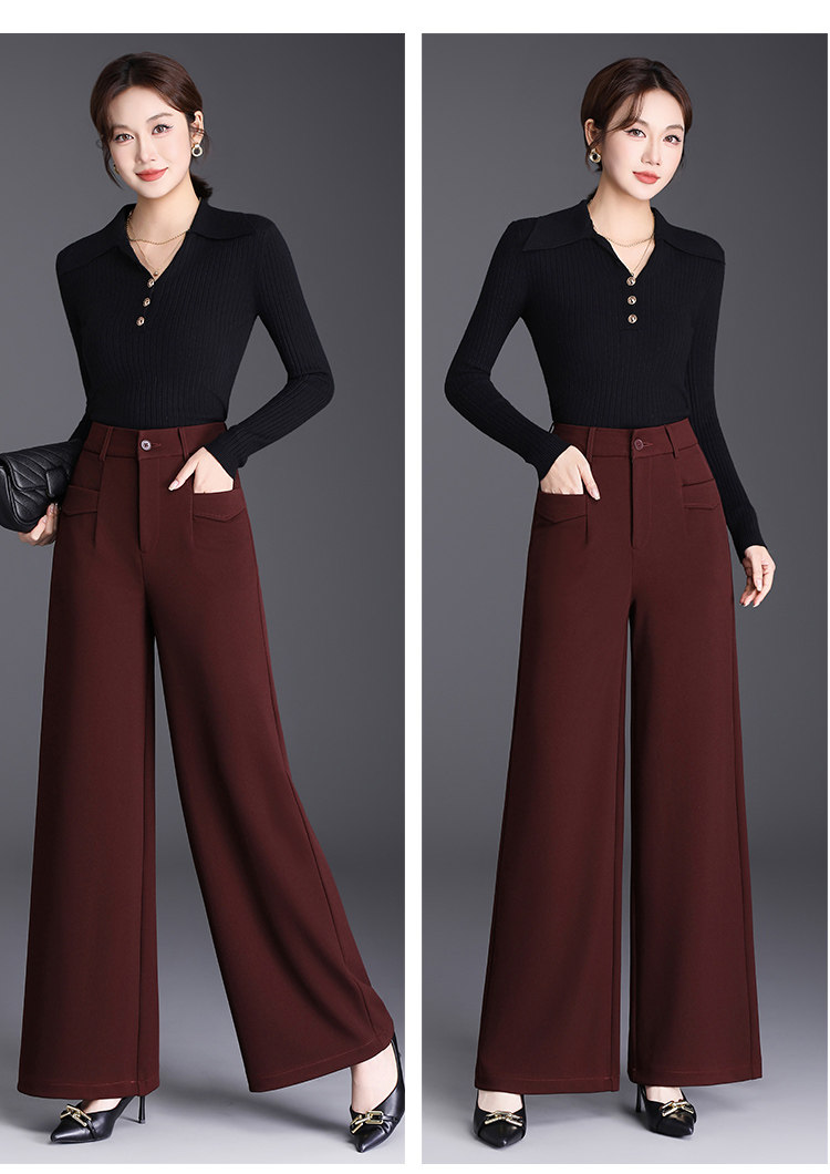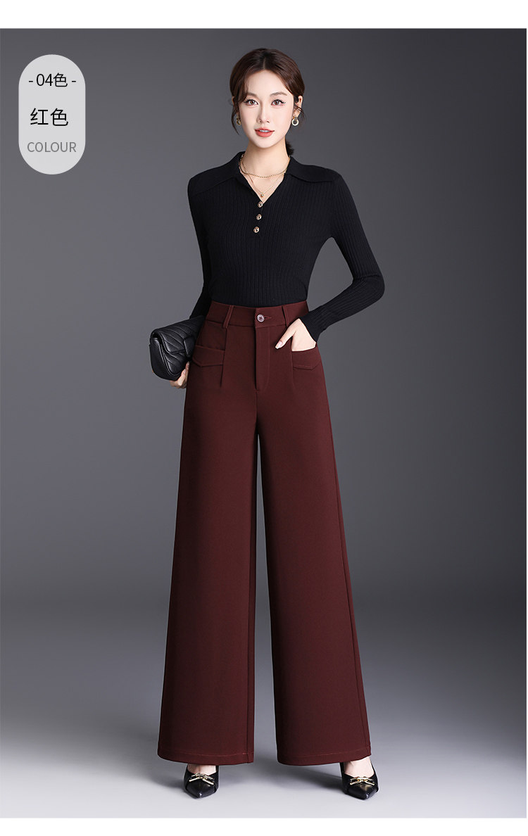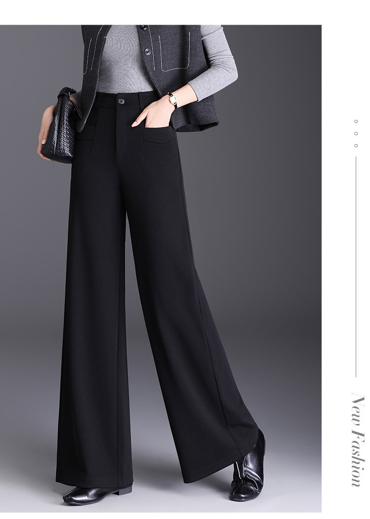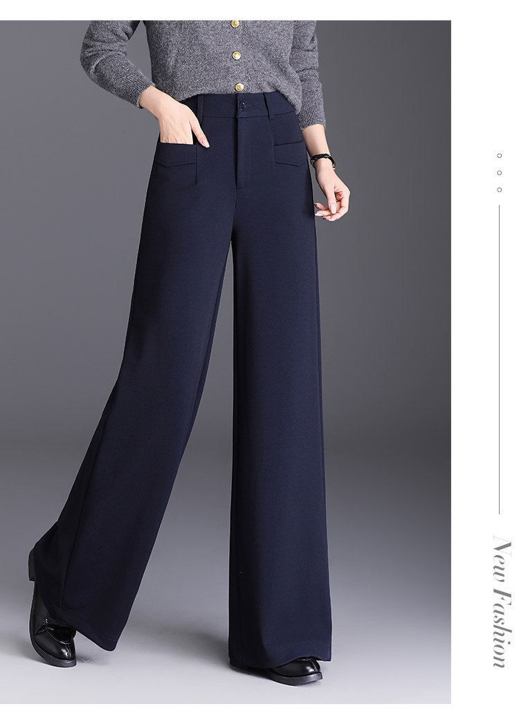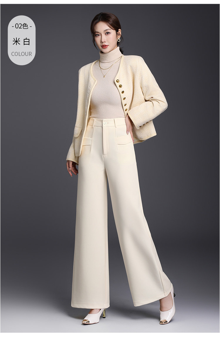 High-Waisted Casual Fleece-Lined Wool Wide-Leg Pants for Women, Autumn and Winter 2025 New Slimming Long Pants, Loose and Drapey Straight-Leg Trousers