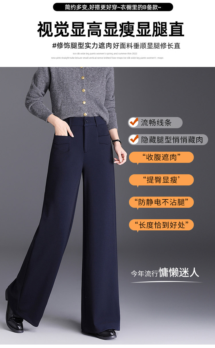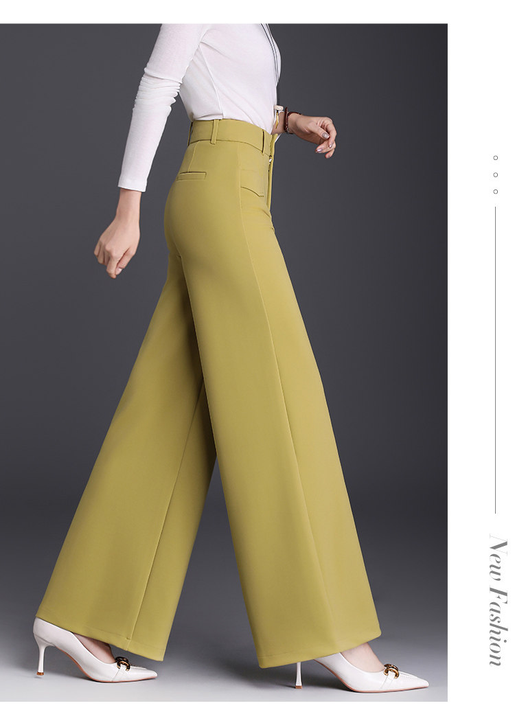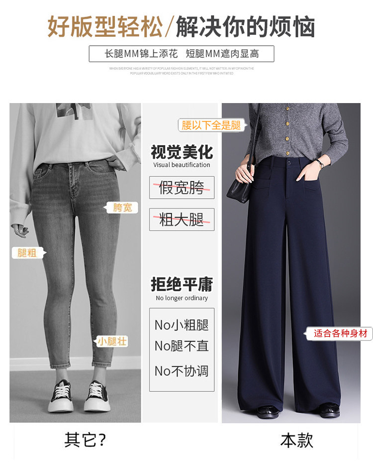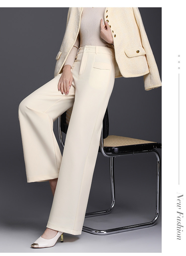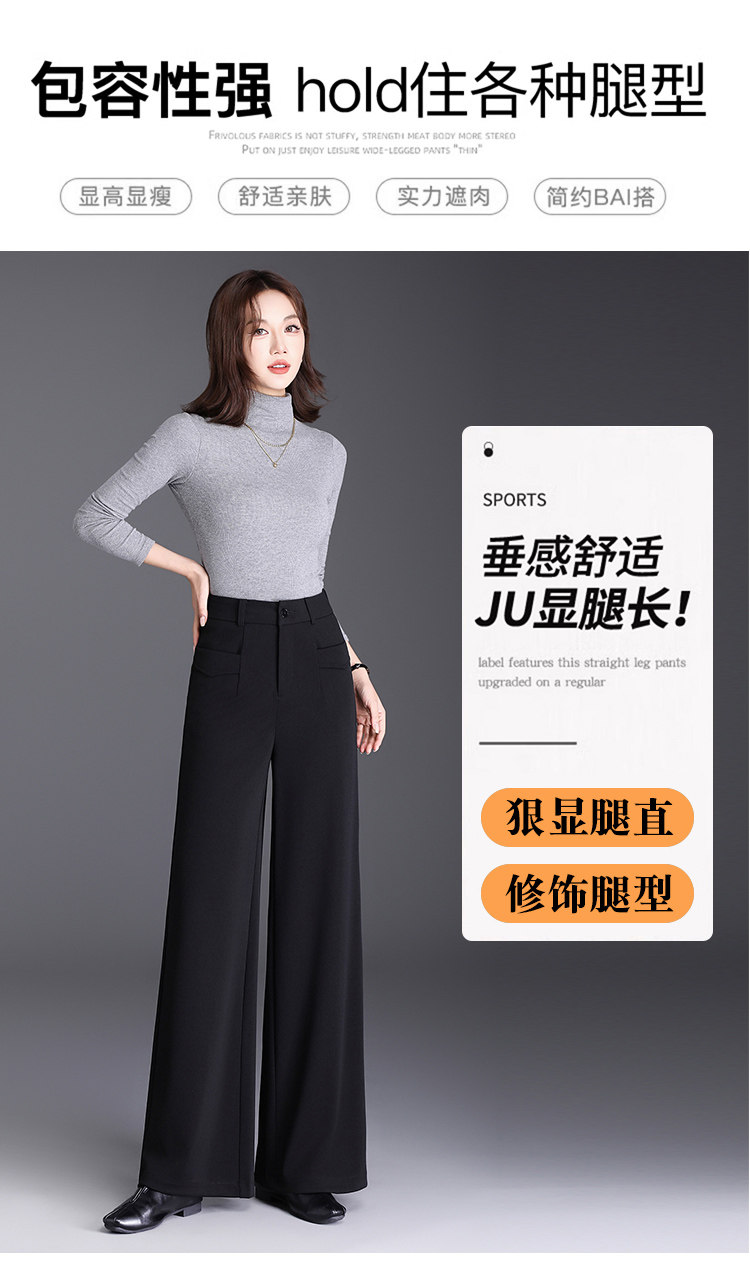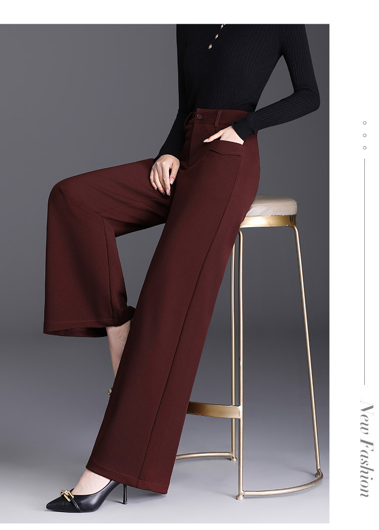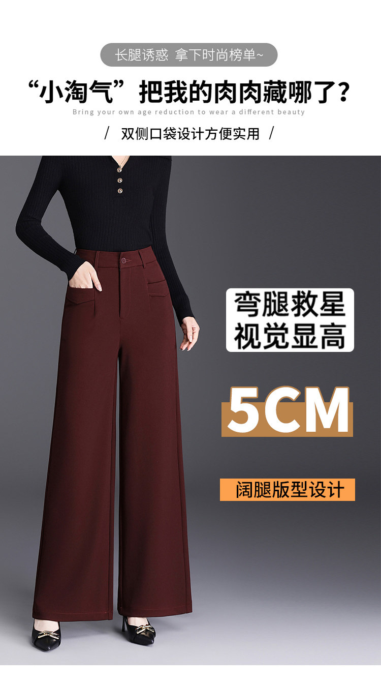 High-Waisted Casual Fleece-Lined Wool Wide-Leg Pants for Women, Autumn and Winter 2025 New Slimming Long Pants, Loose and Drapey Straight-Leg Trousers