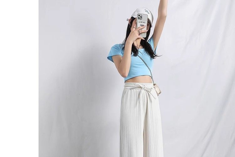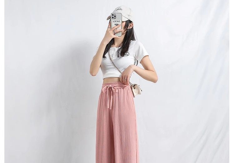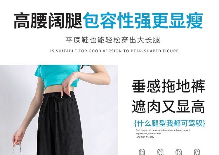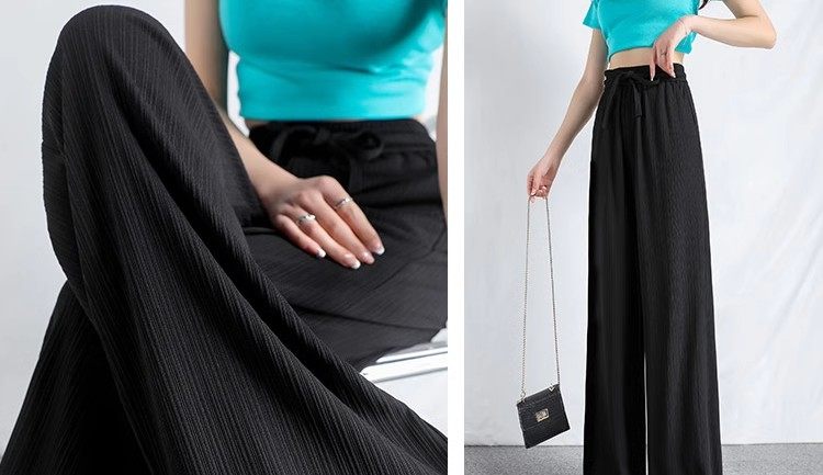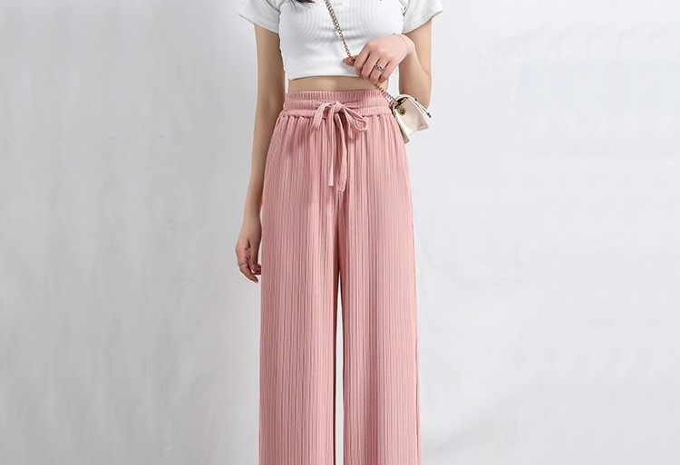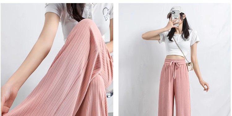 Single/Two-Piece Ice Silk Wide-Leg Pants for Women, Summer Thin High-Waisted Loose Drape Quick-Dry Pants, Casual Anti-Mosquito Pants