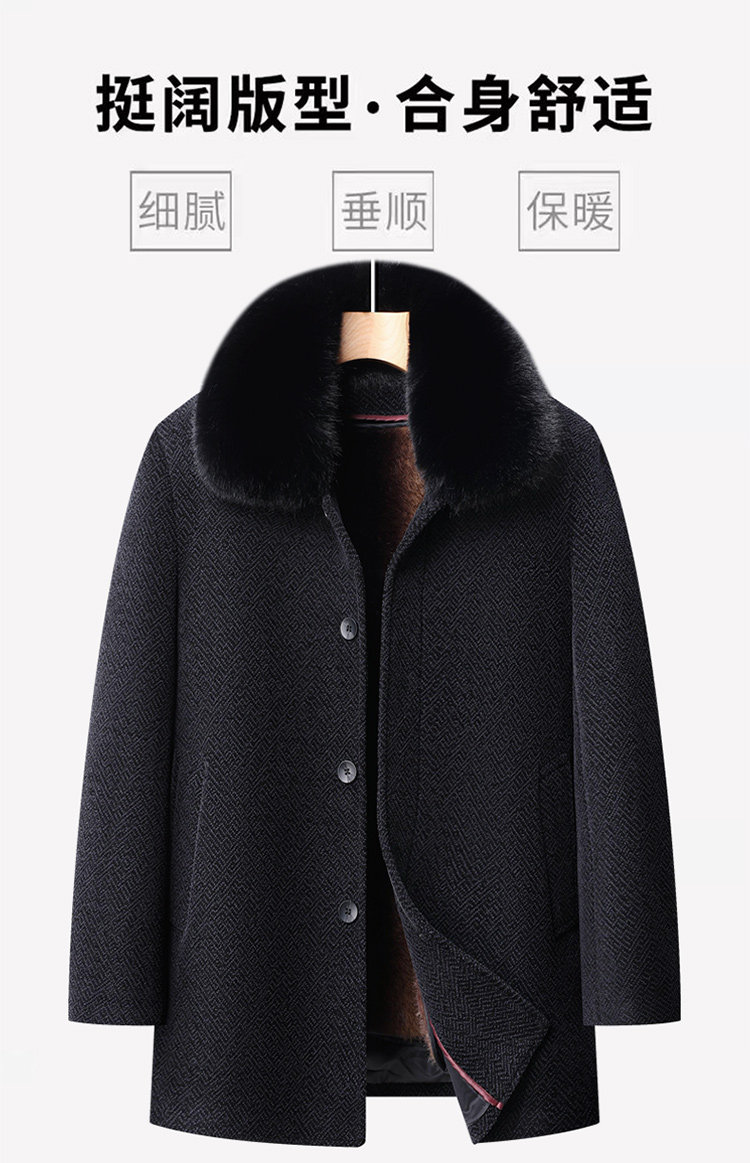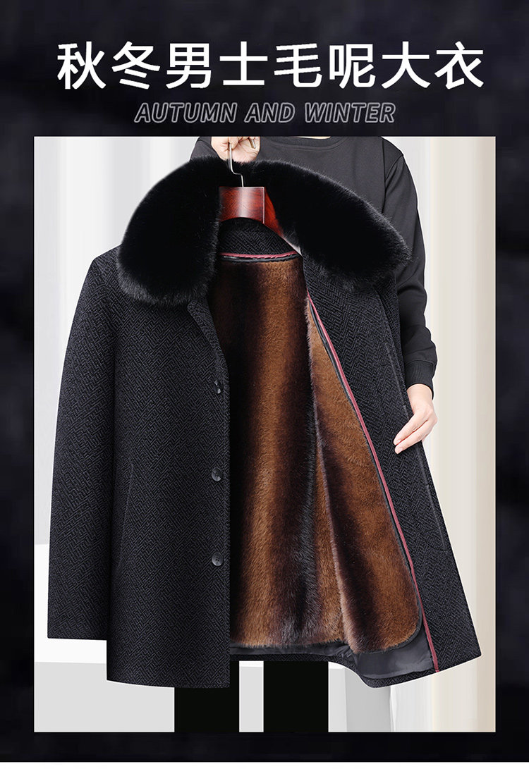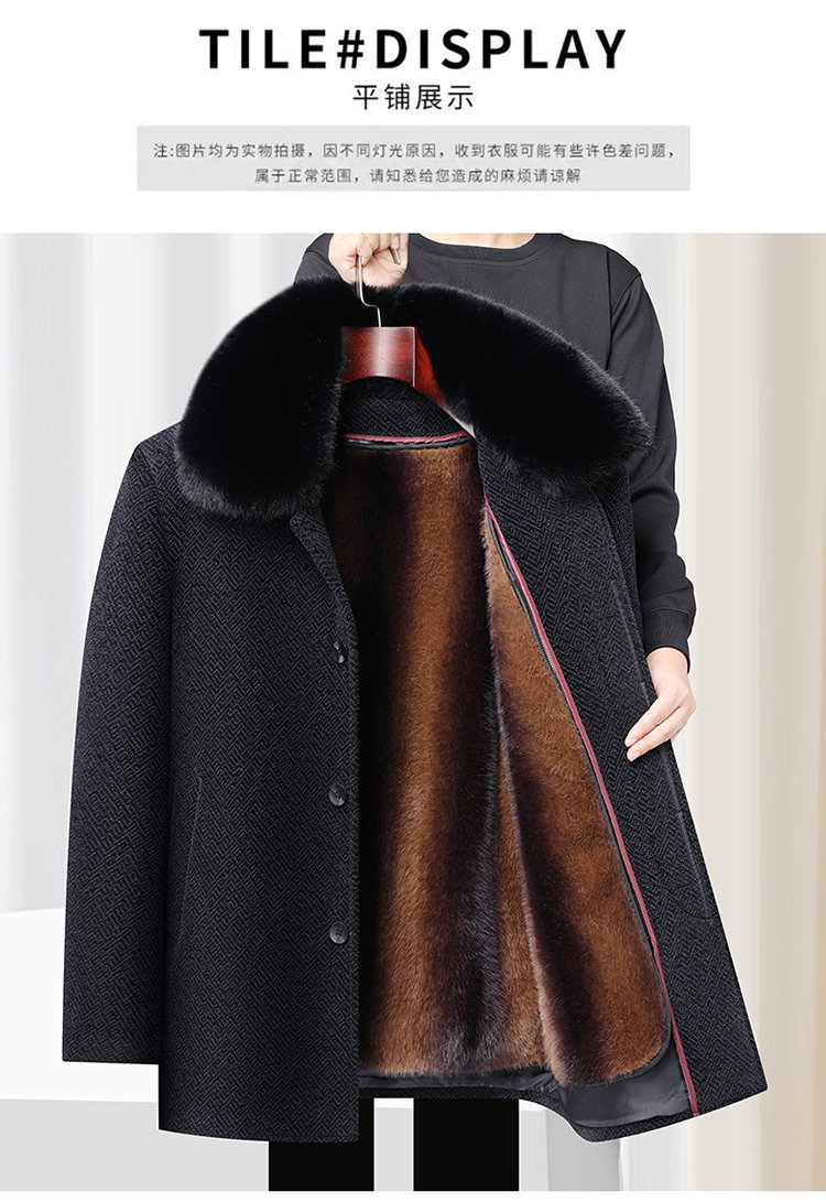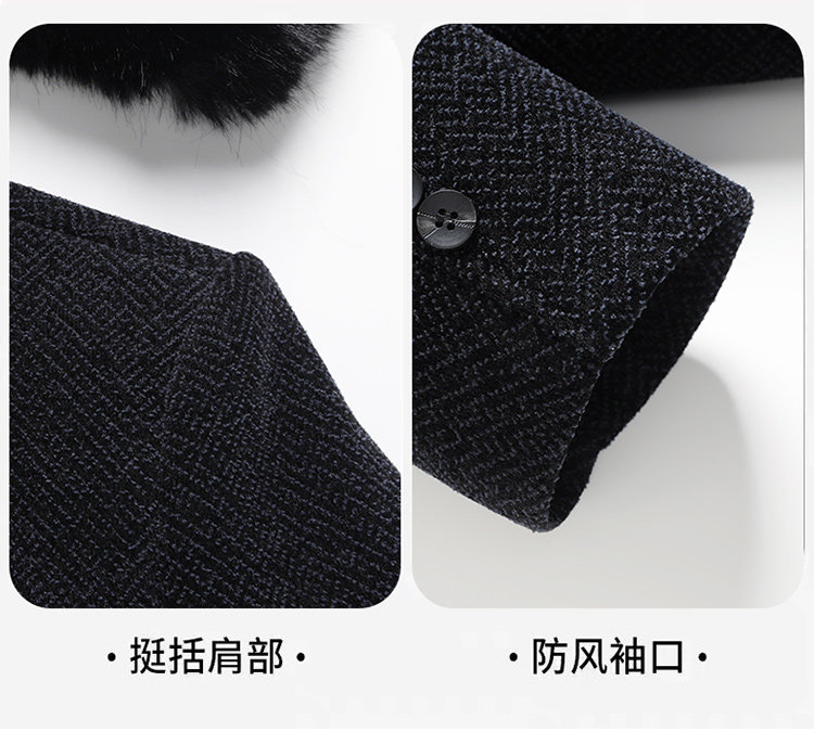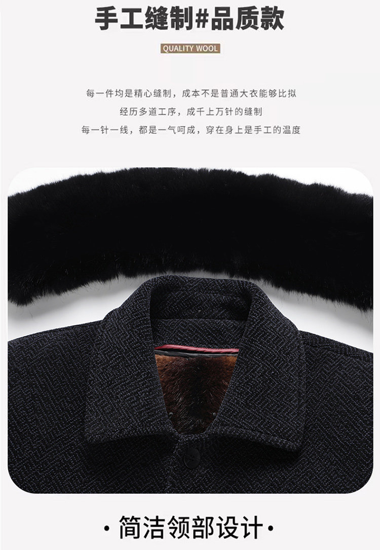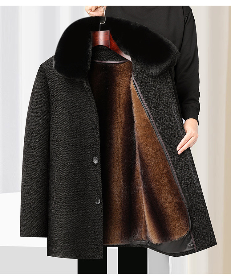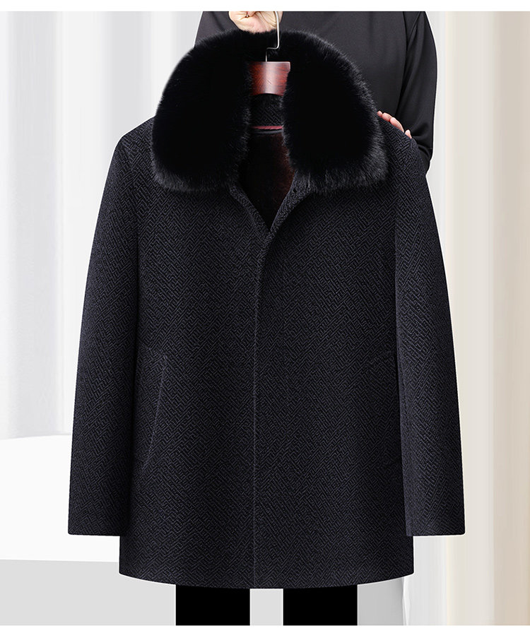 Woodpecker Dad's Winter Woolen Coat for Middle-Aged and Elderly People with Detachable Fur Collar and Fleece Lining, Chenille Cold-Proof Coat