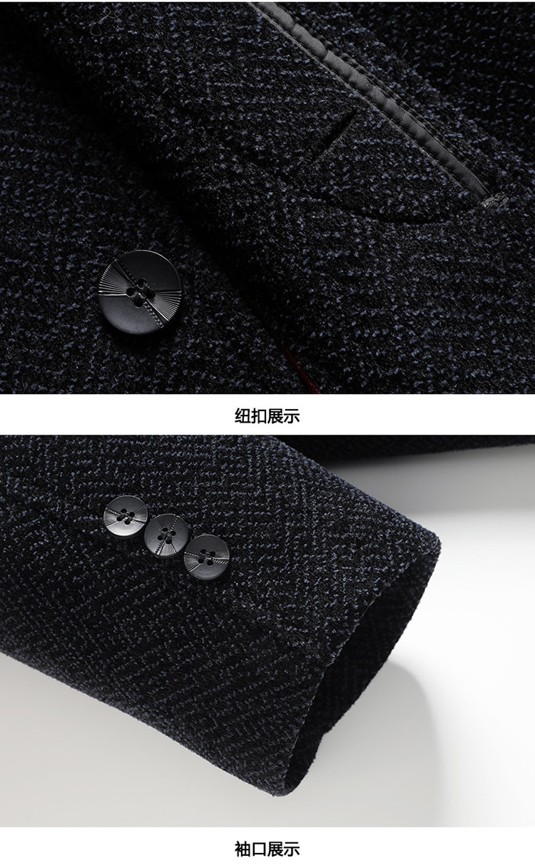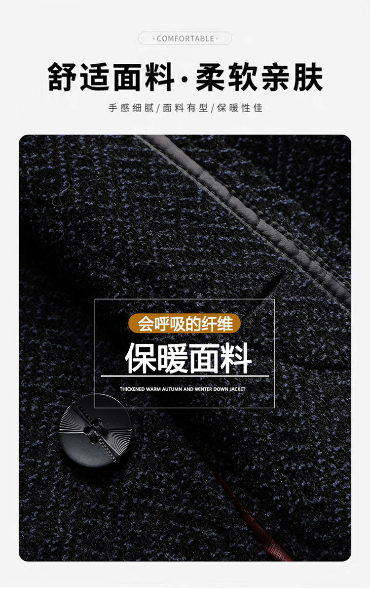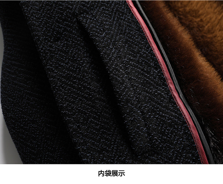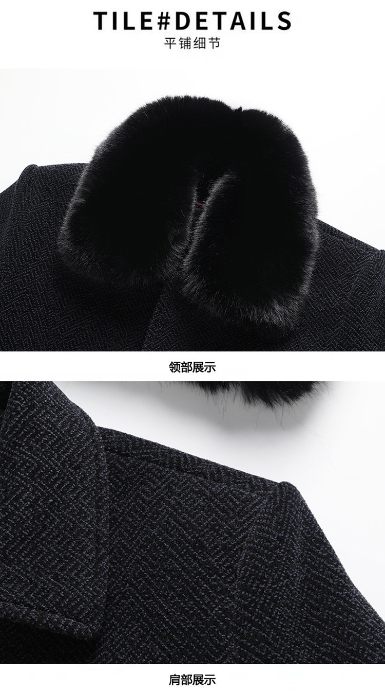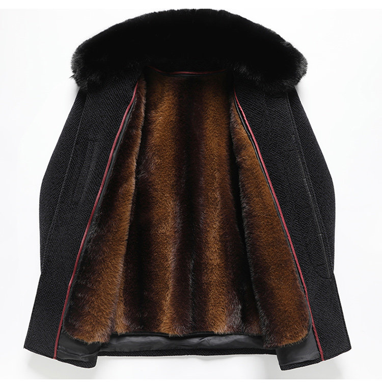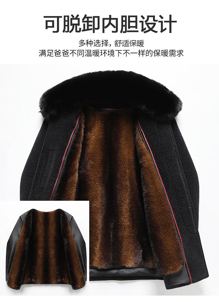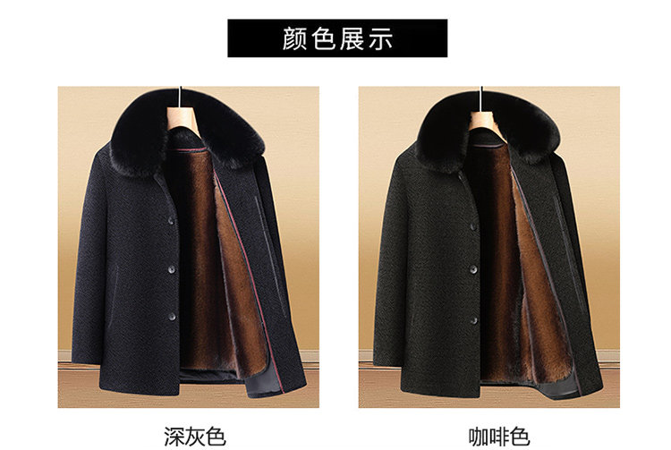Woodpecker Dad's Winter Woolen Coat for Middle-Aged and Elderly People with Detachable Fur Collar and Fleece Lining, Chenille Cold-Proof Coat
