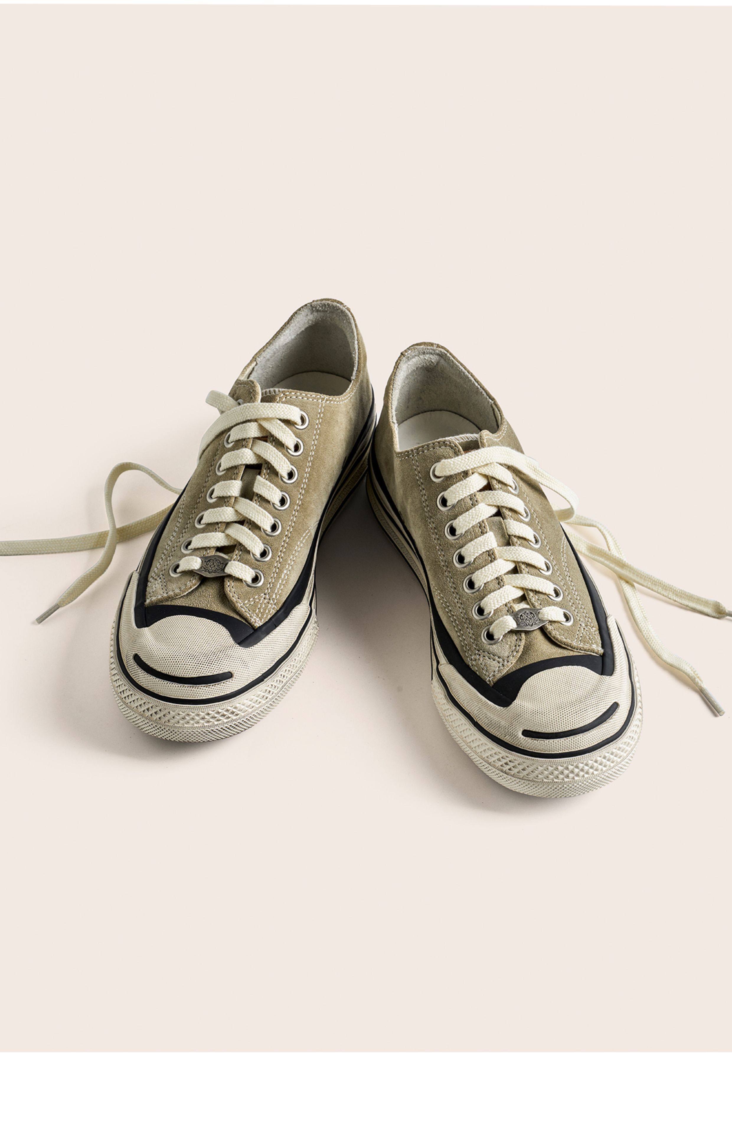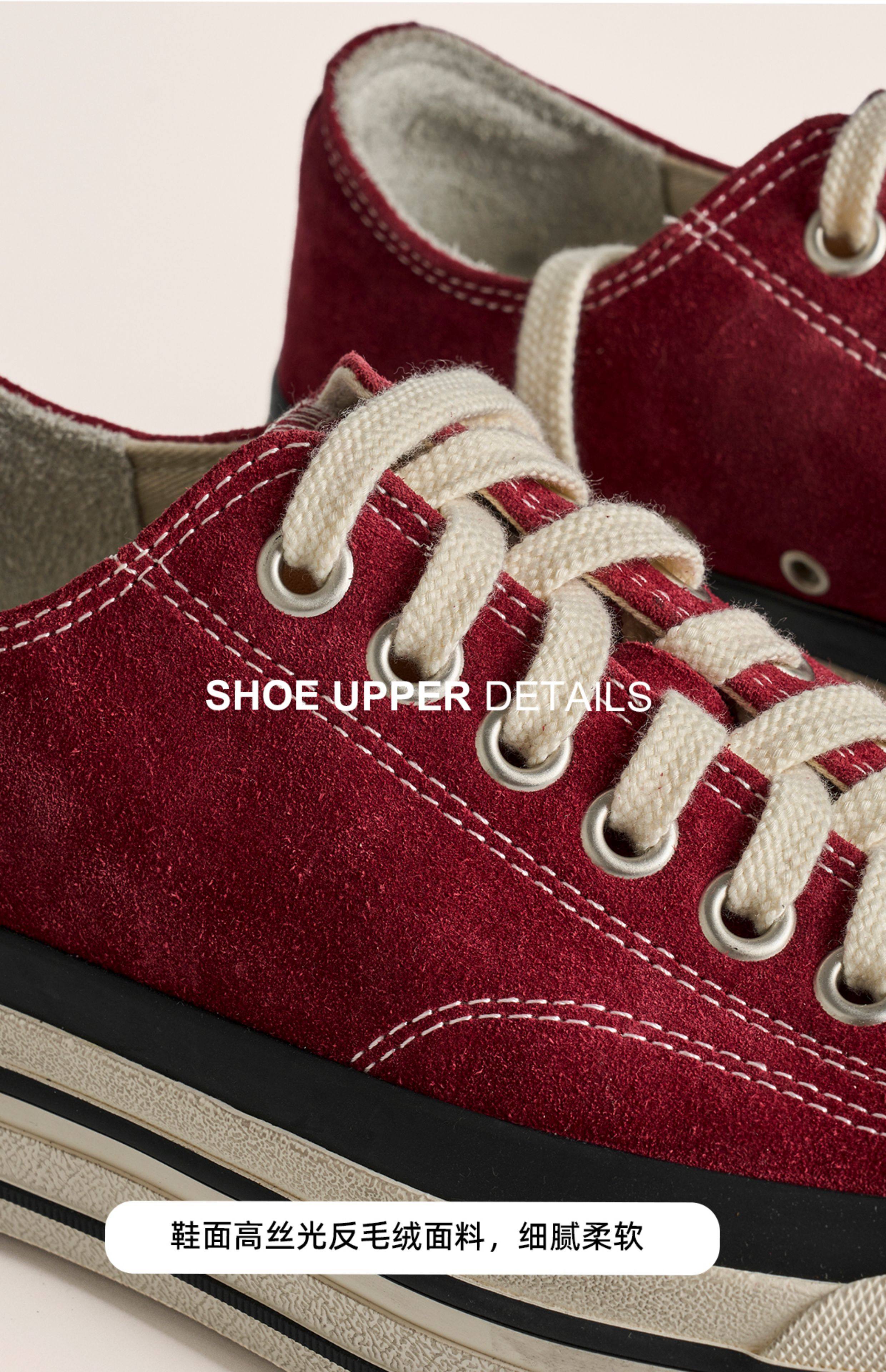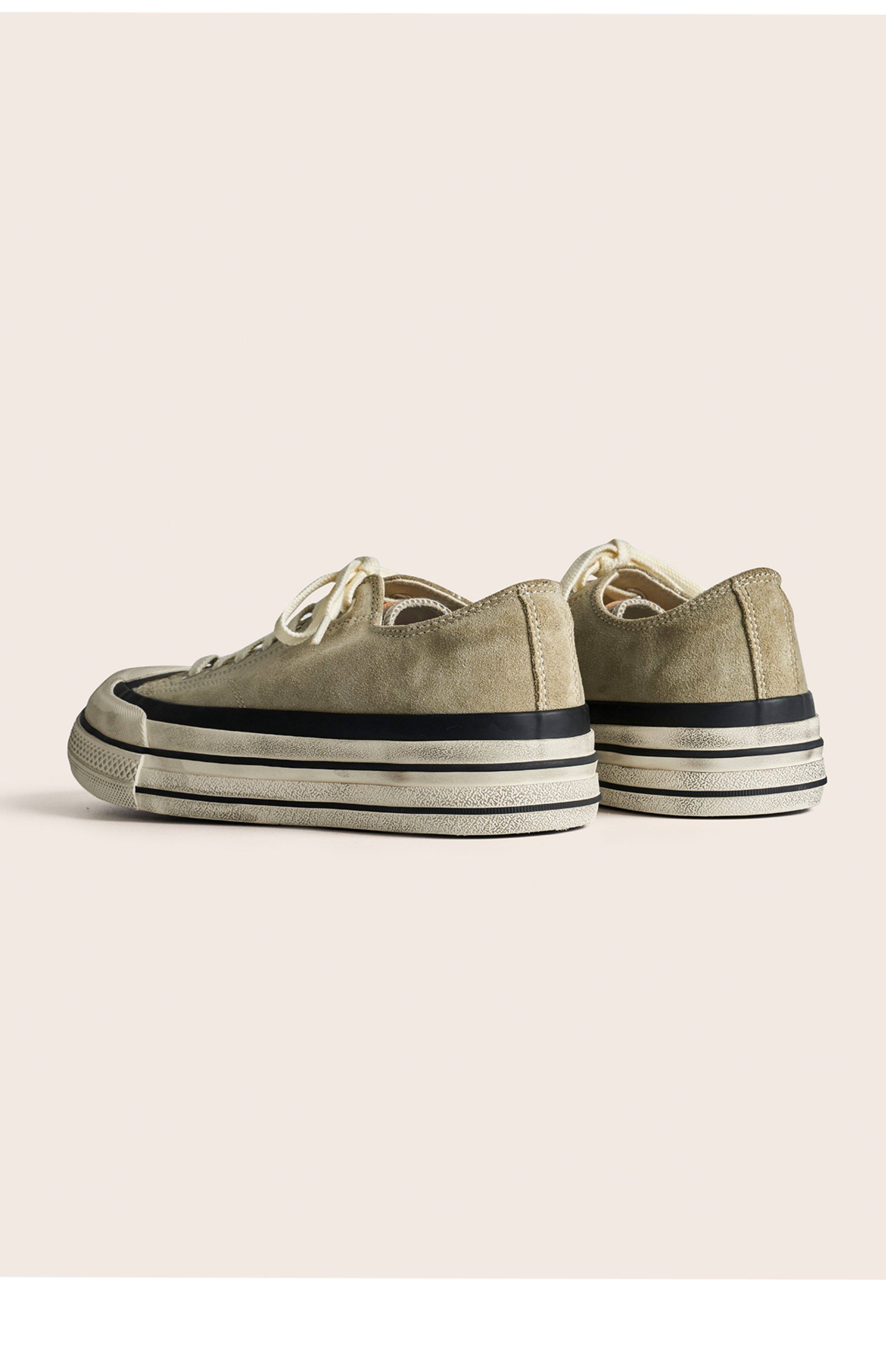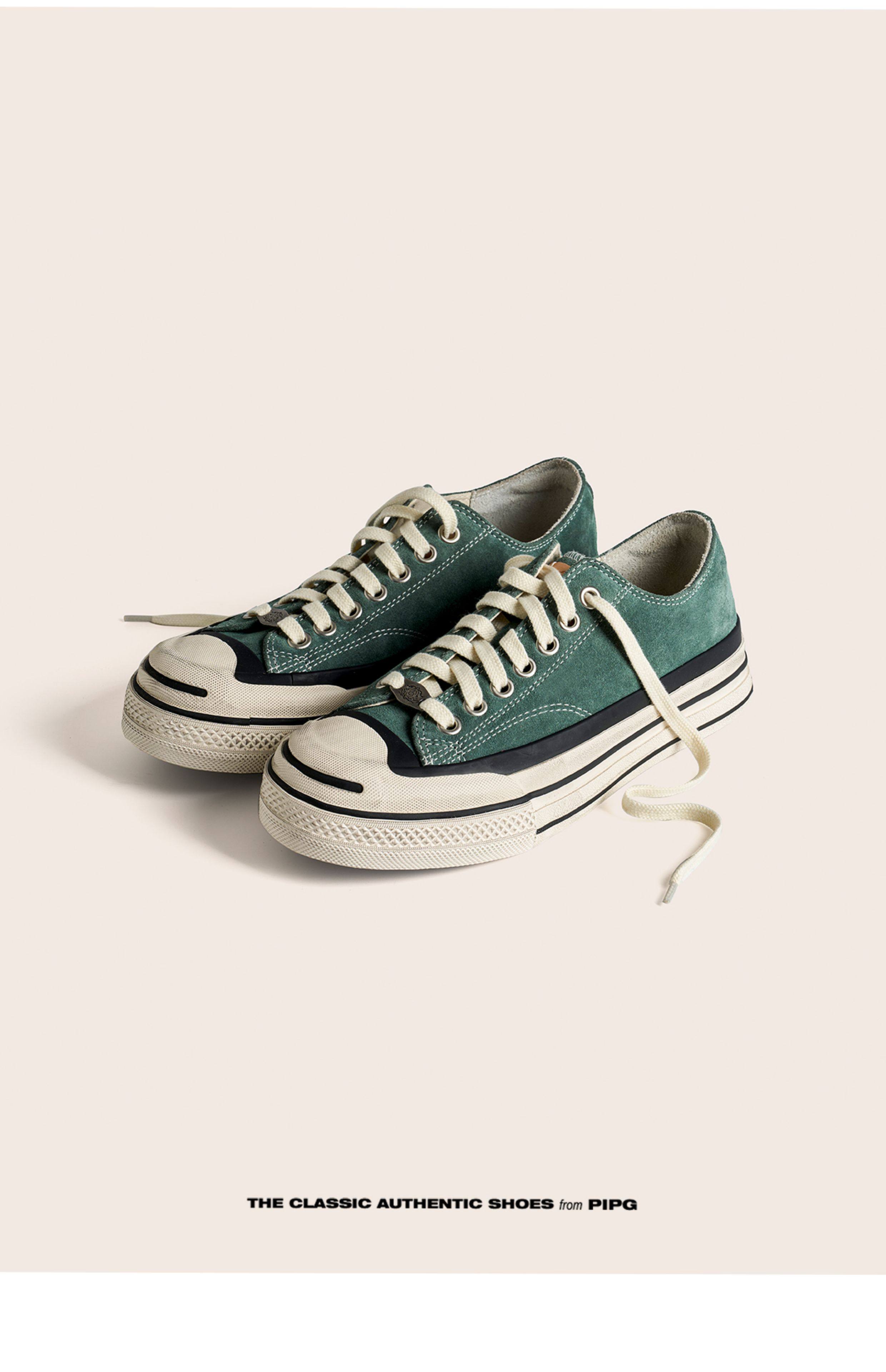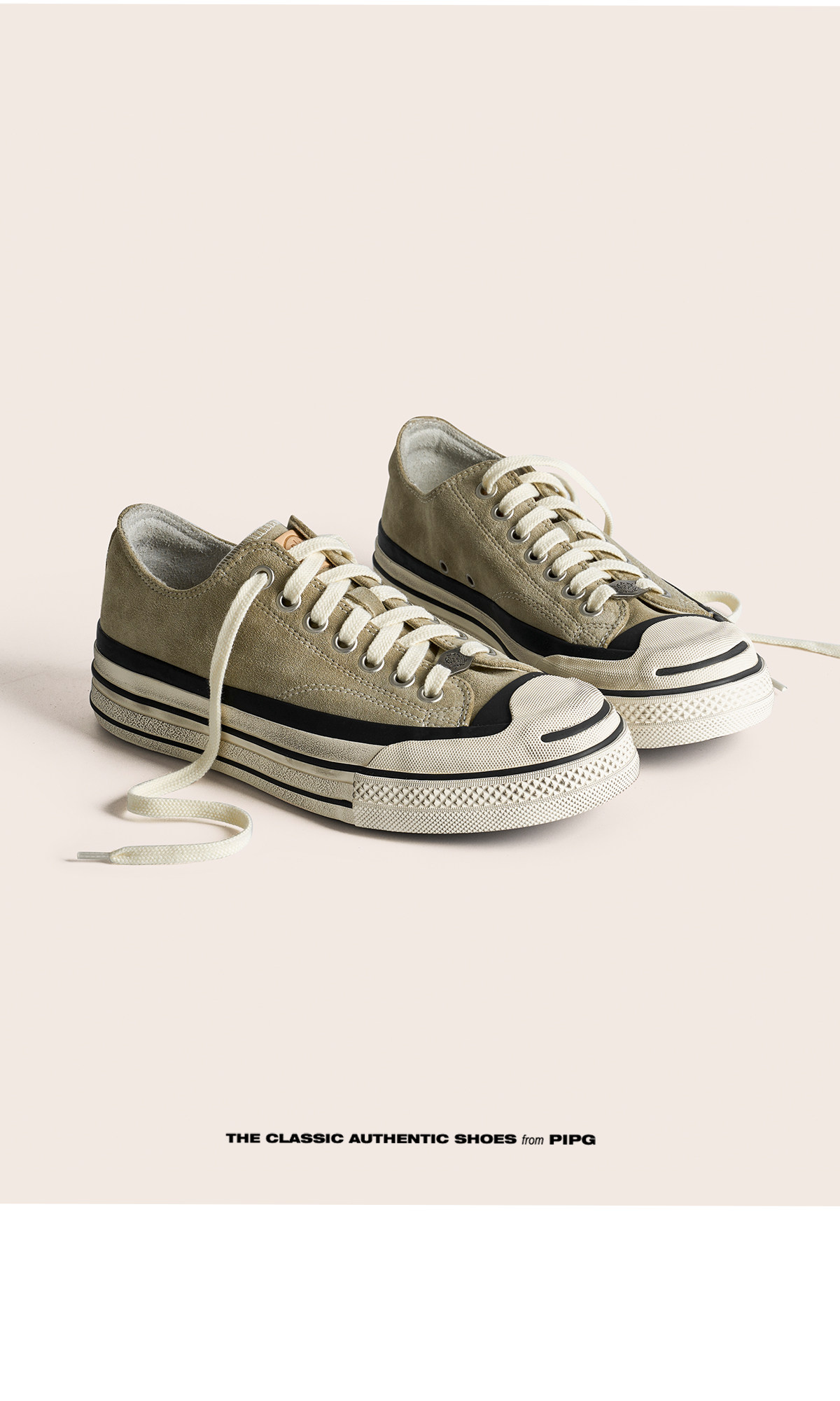 Pipg Unisex Washed Suede Open-Toe Canvas Shoes Thick-Soled Vulcanized Shoes Retro Japanese-Style Breathable Sneakers