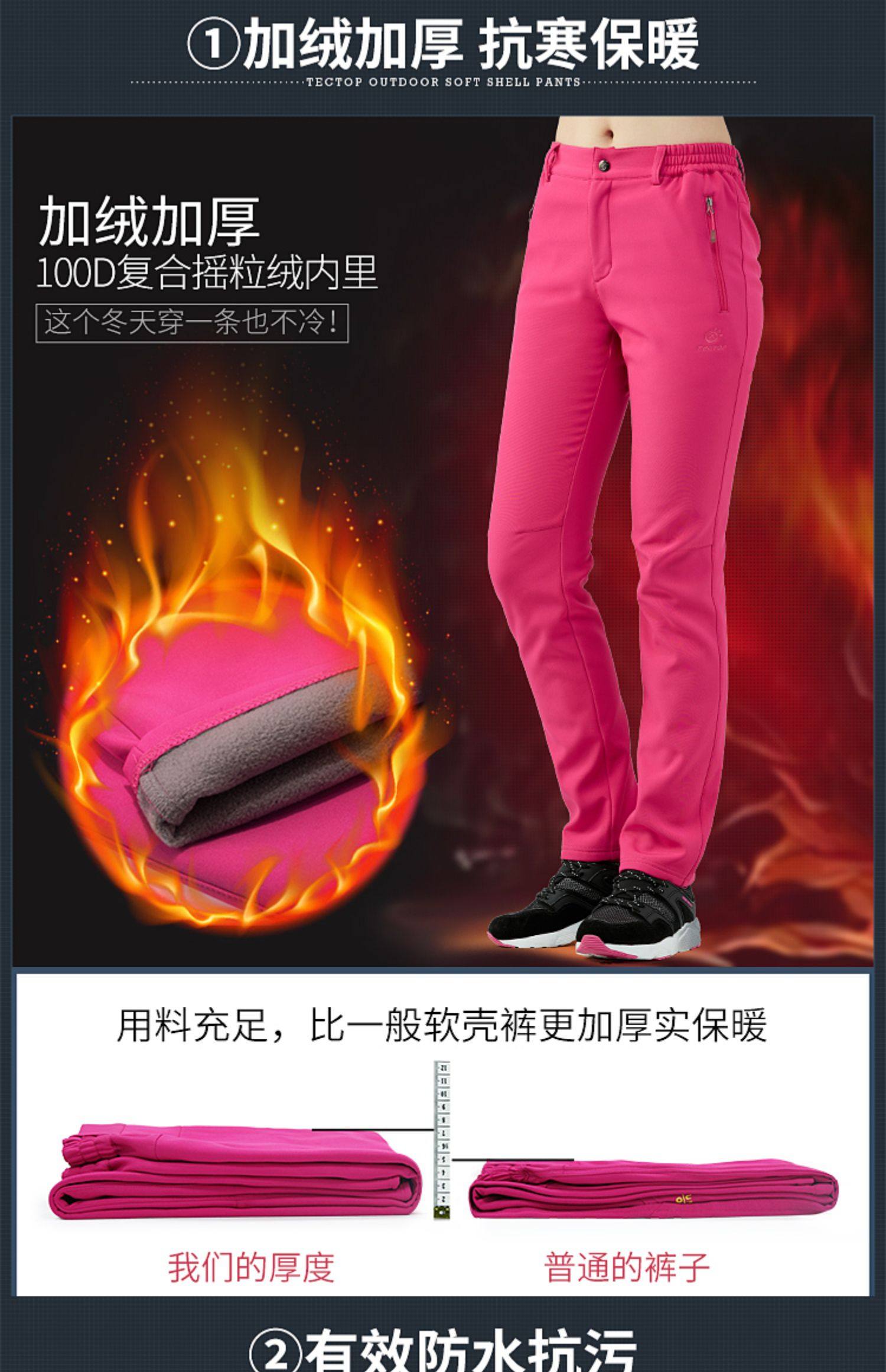 Tectop Outdoor Softshell Pants for Men and Women, Autumn and Winter Waterproof and Warm Hiking Pants, Windproof Pants for Tibet