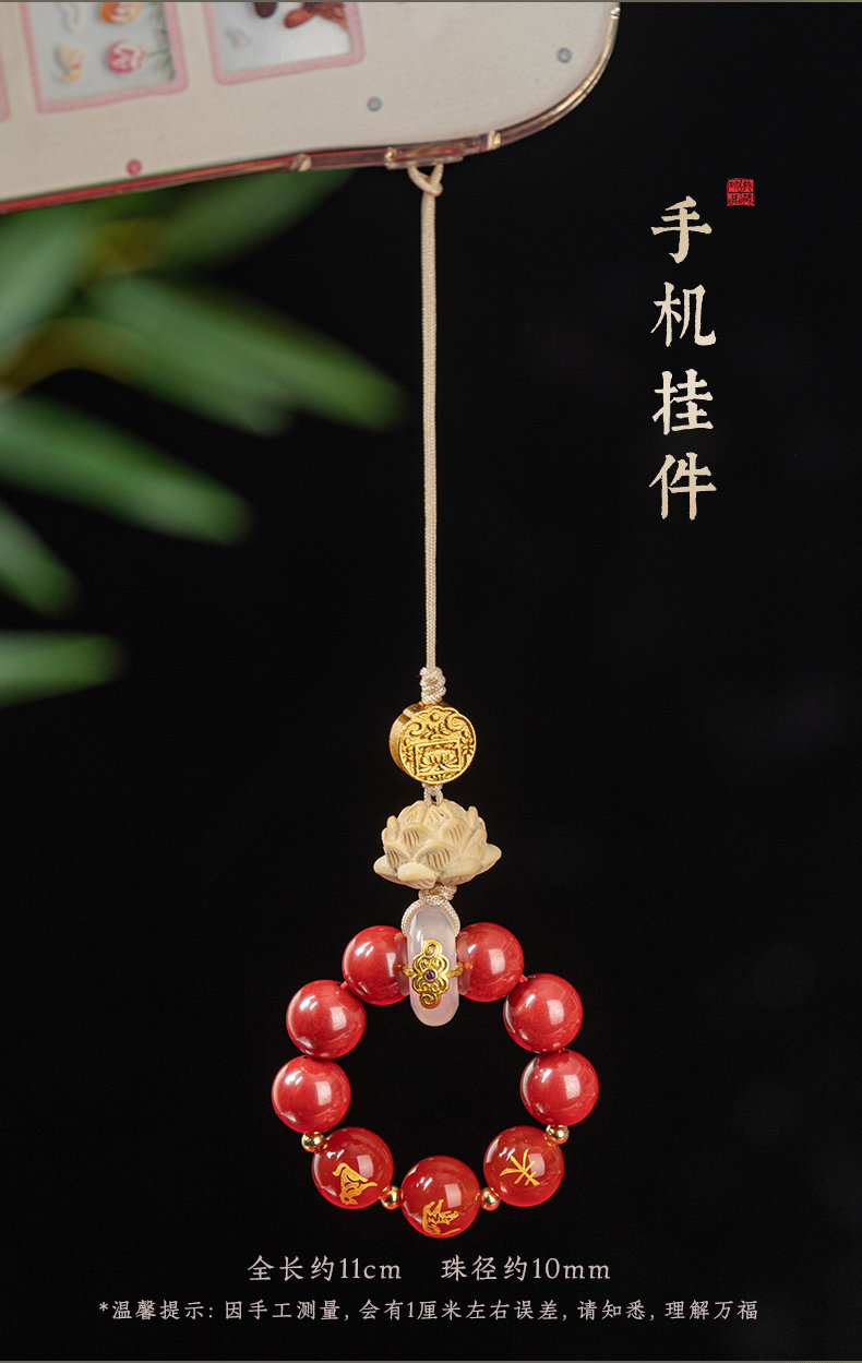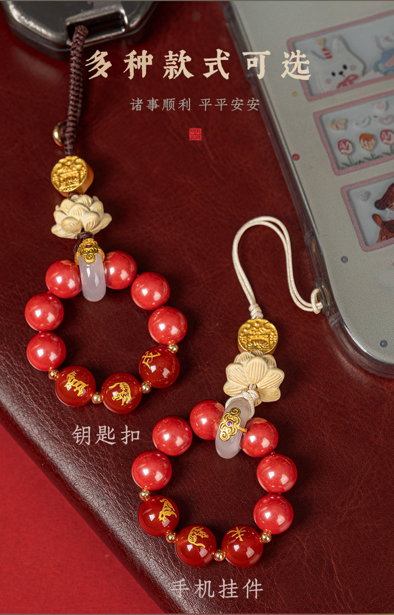 Putuo Mountain 2026 Zodiac Year Three Harmonies and Six Harmonies Cinnabar Women's Fortune-Attracting Car Keychain Pendant