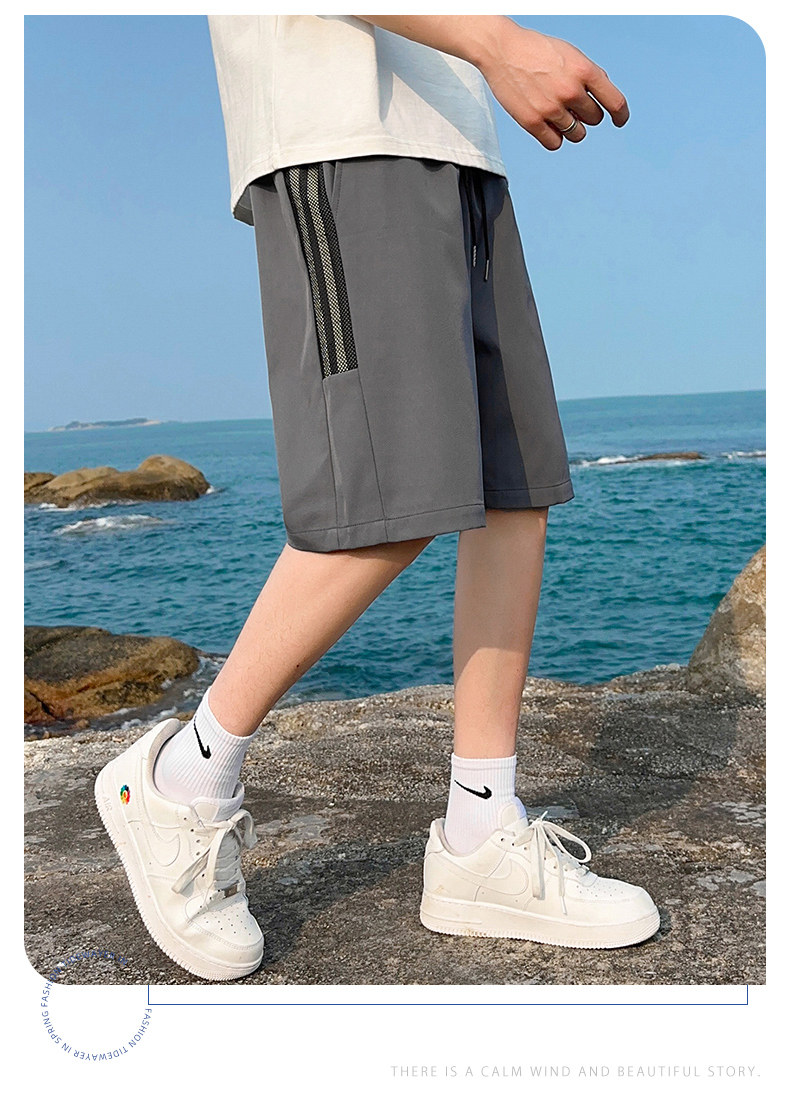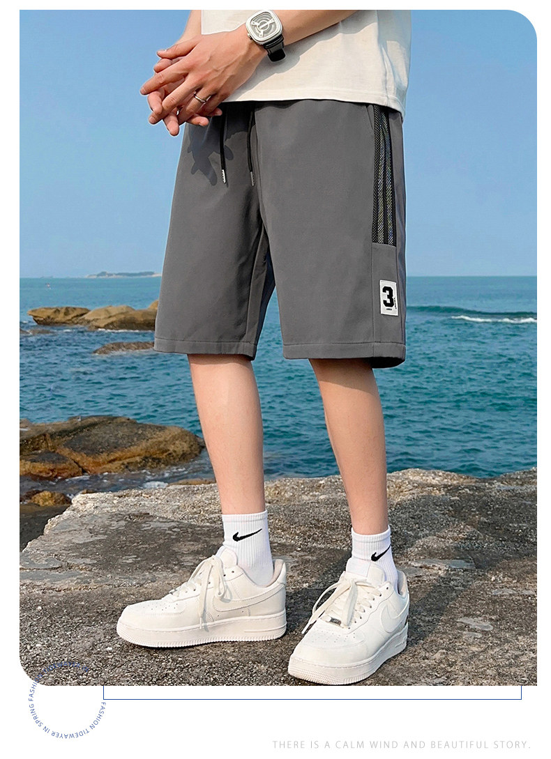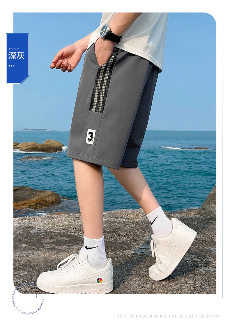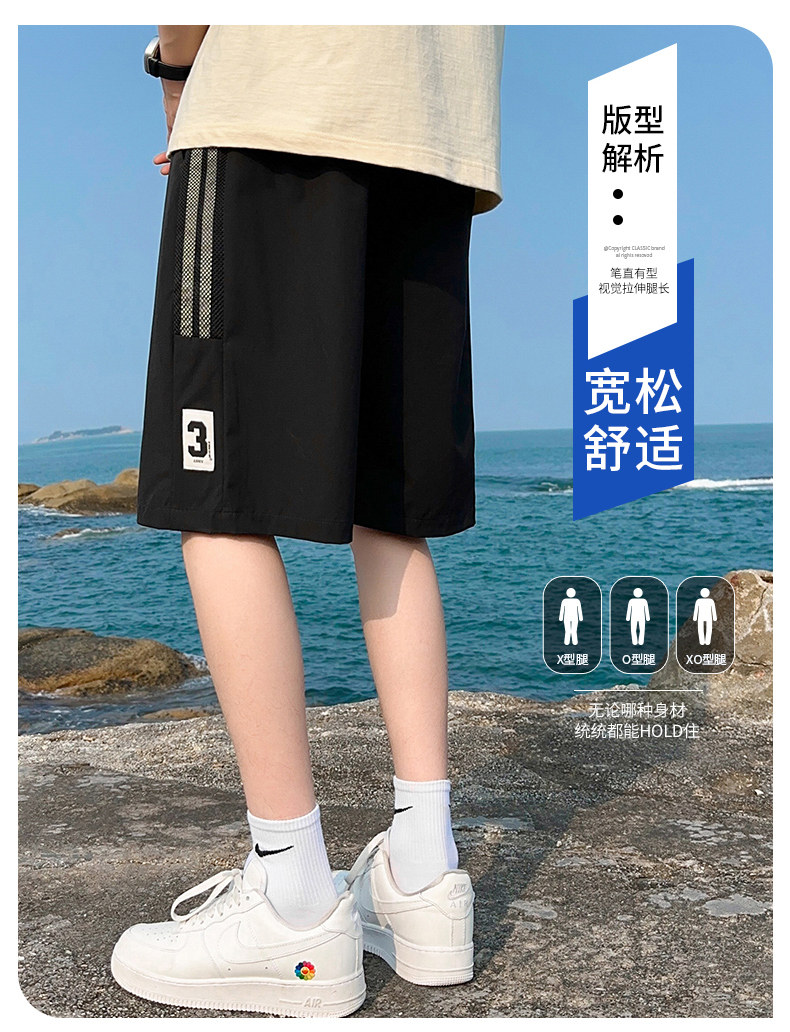 Summer Ice Silk Shorts for Men, Trendy Brand, Casual Five-Point Shorts for Teenagers, Quick-Drying Sports Pants for Middle and High School Students