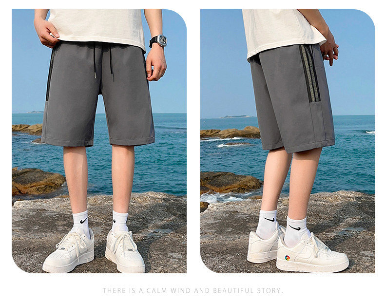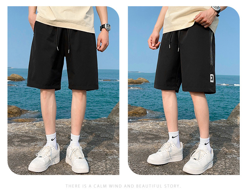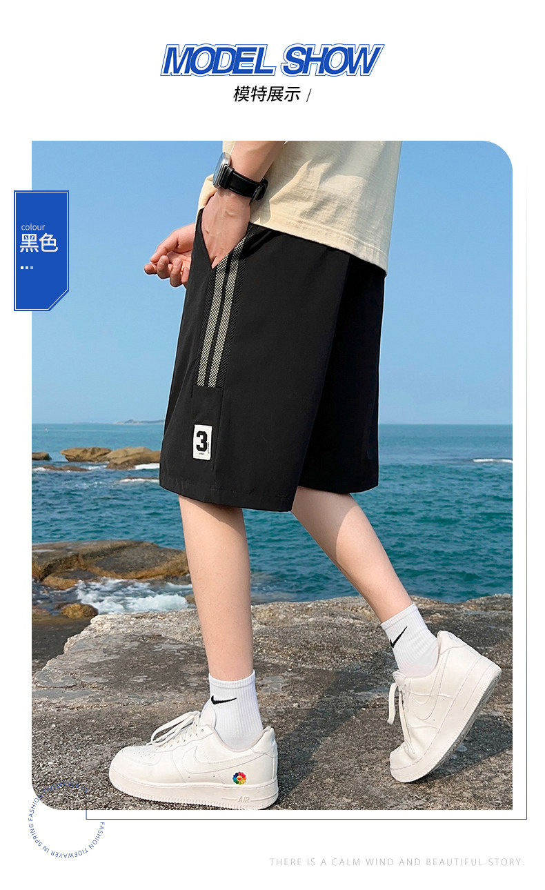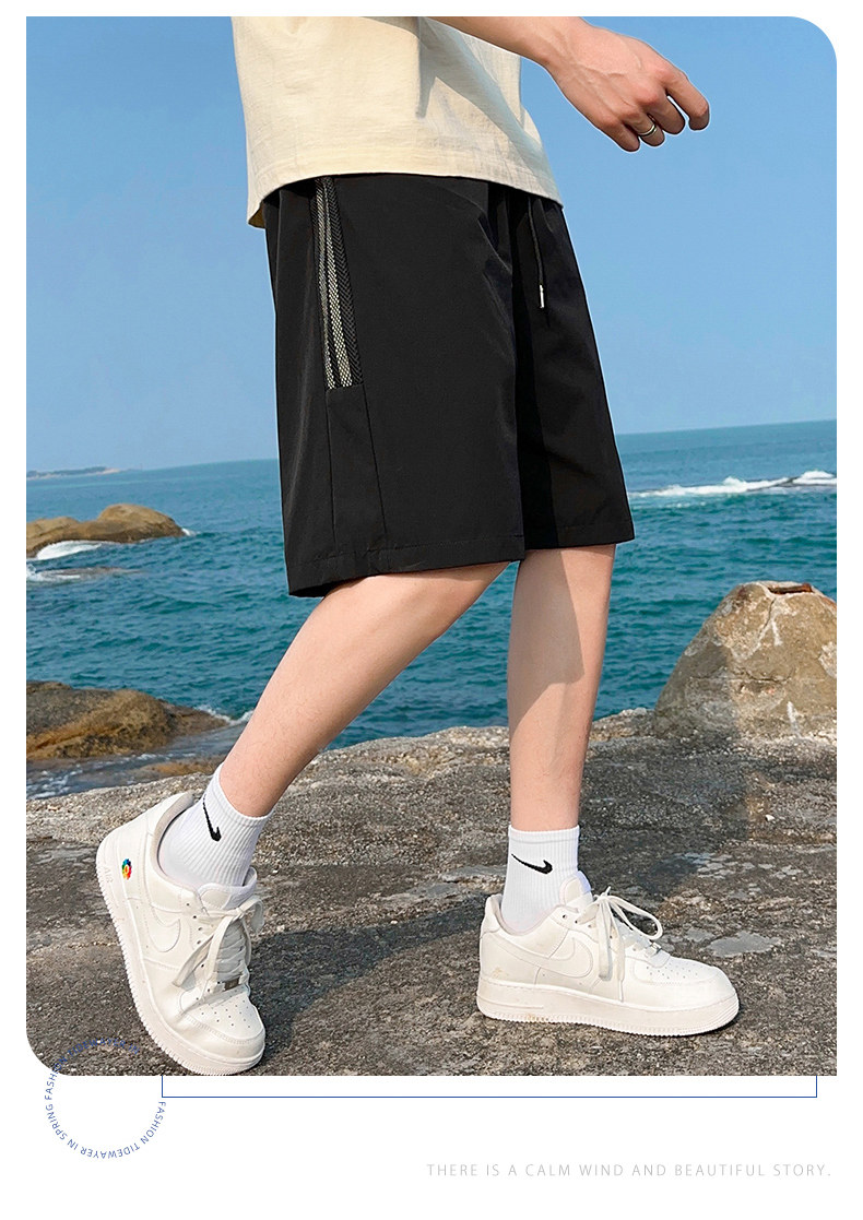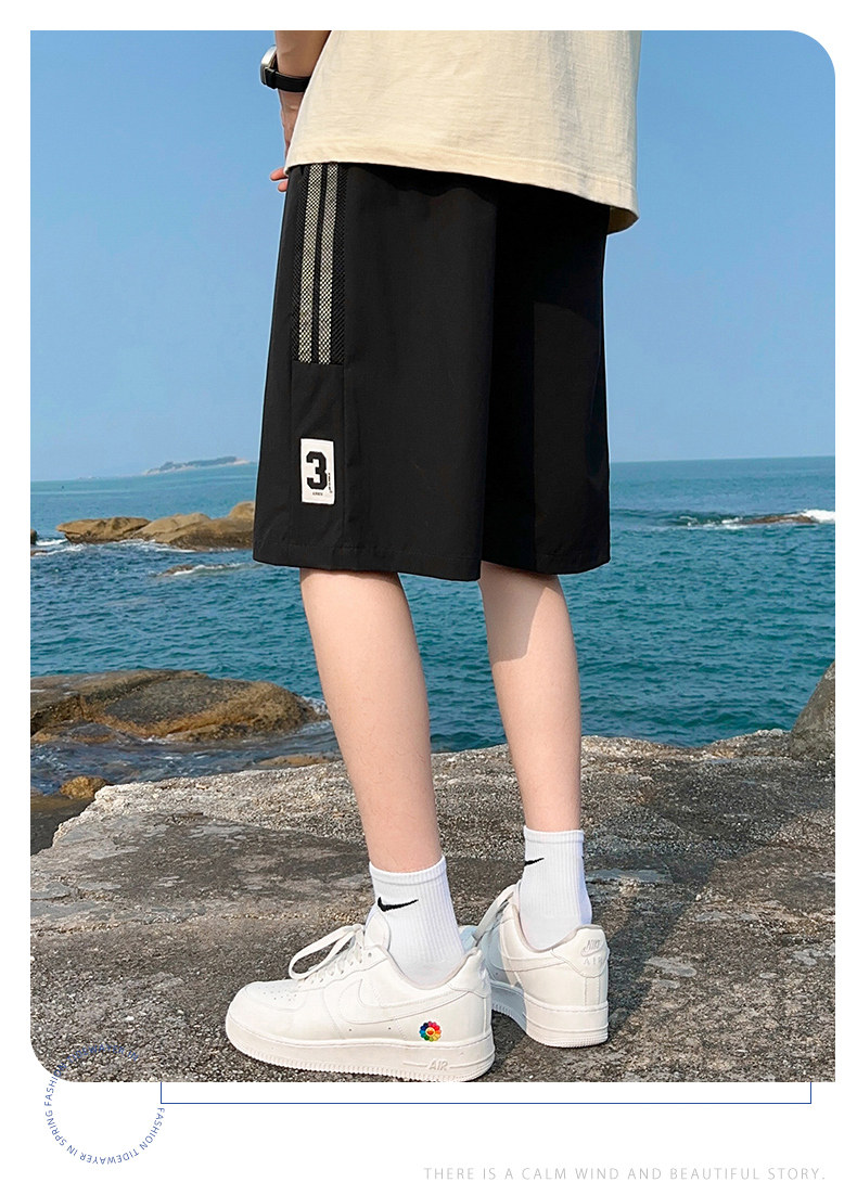 Summer Ice Silk Shorts for Men, Trendy Brand, Casual Five-Point Shorts for Teenagers, Quick-Drying Sports Pants for Middle and High School Students