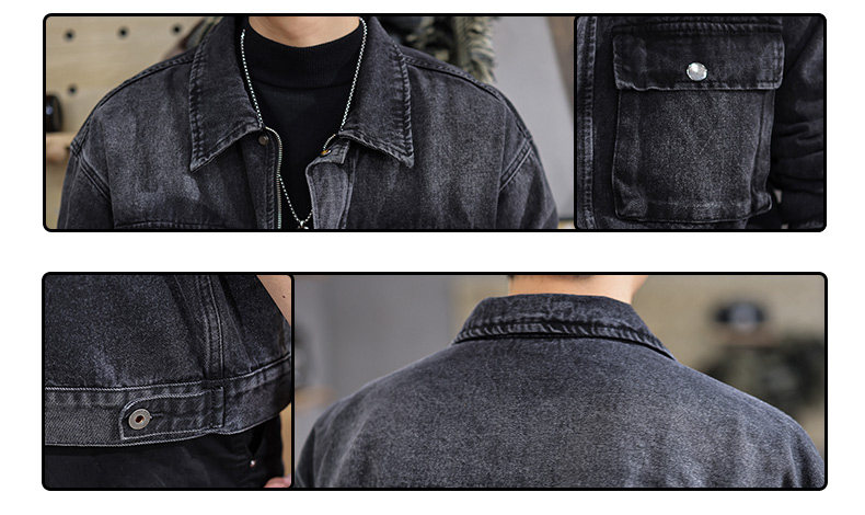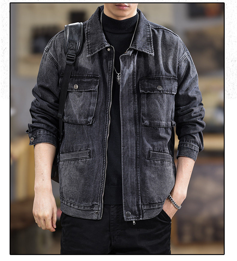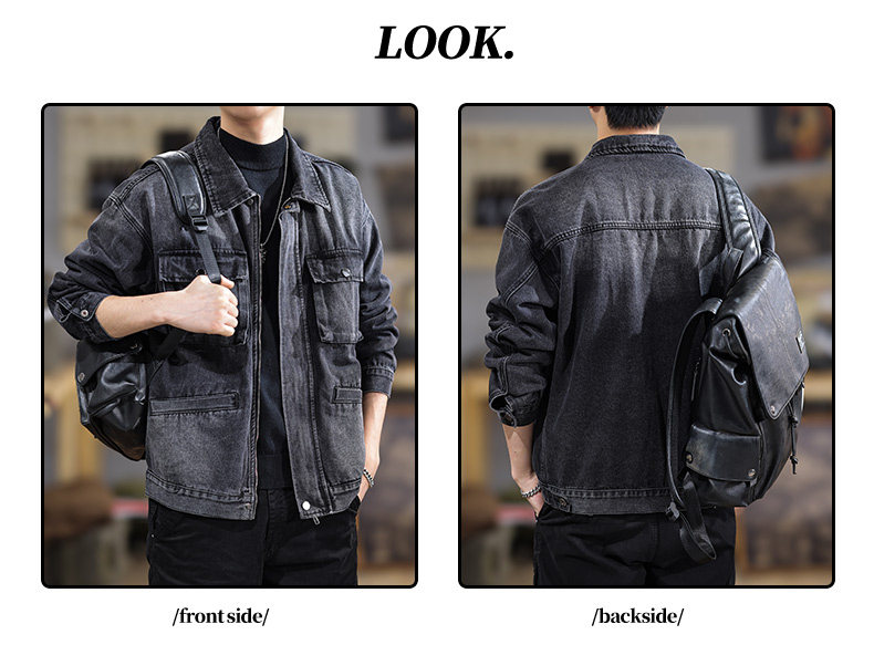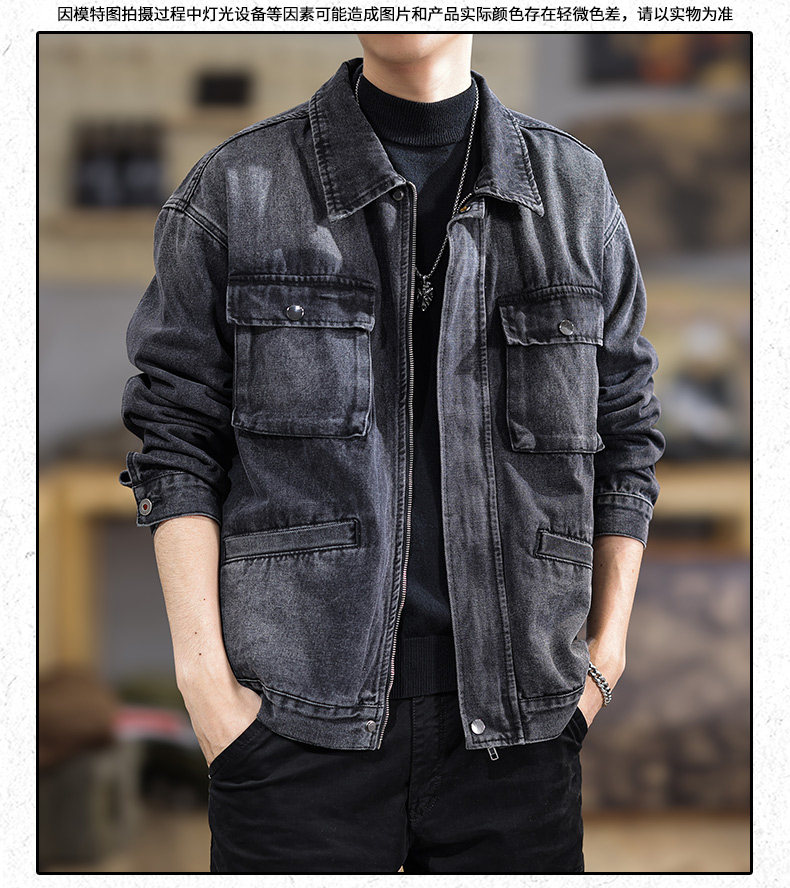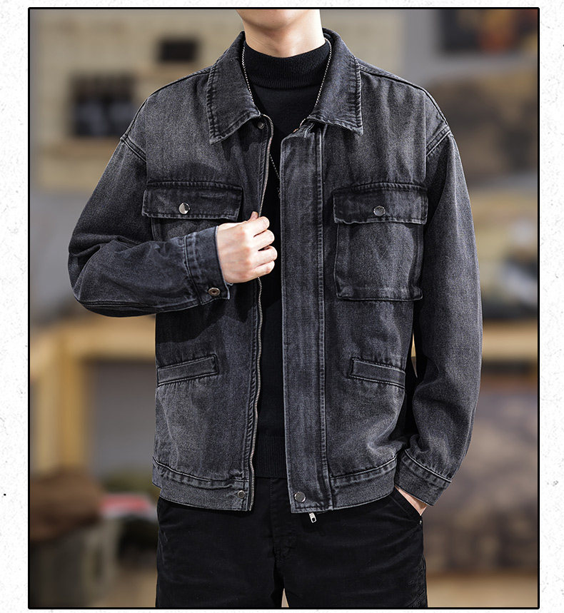 2025 New Autumn High-End Black Denim Jacket for Men, Loose Fit, Large Size, Turn-Down Collar, Trendy Versatile Jacket