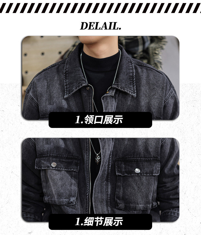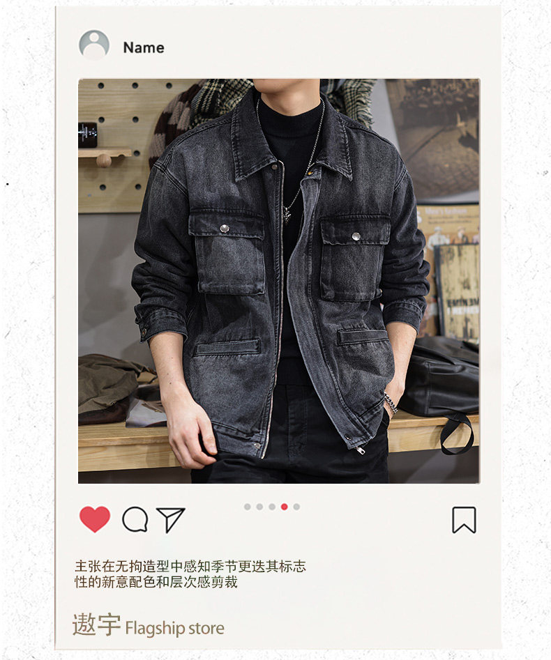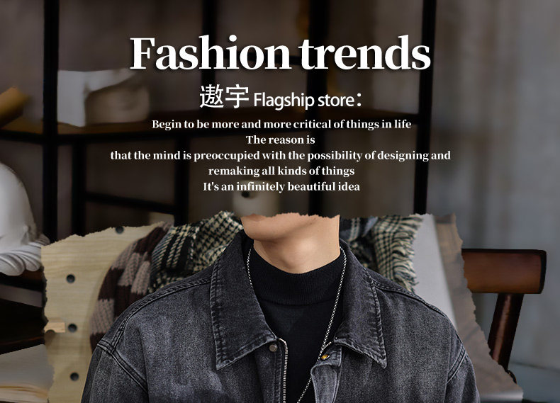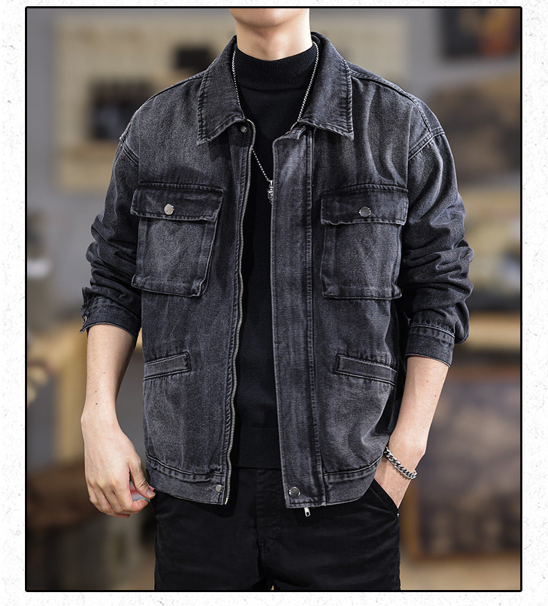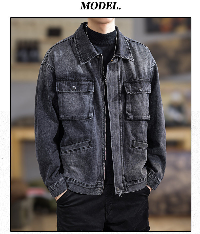 2025 New Autumn High-End Black Denim Jacket for Men, Loose Fit, Large Size, Turn-Down Collar, Trendy Versatile Jacket